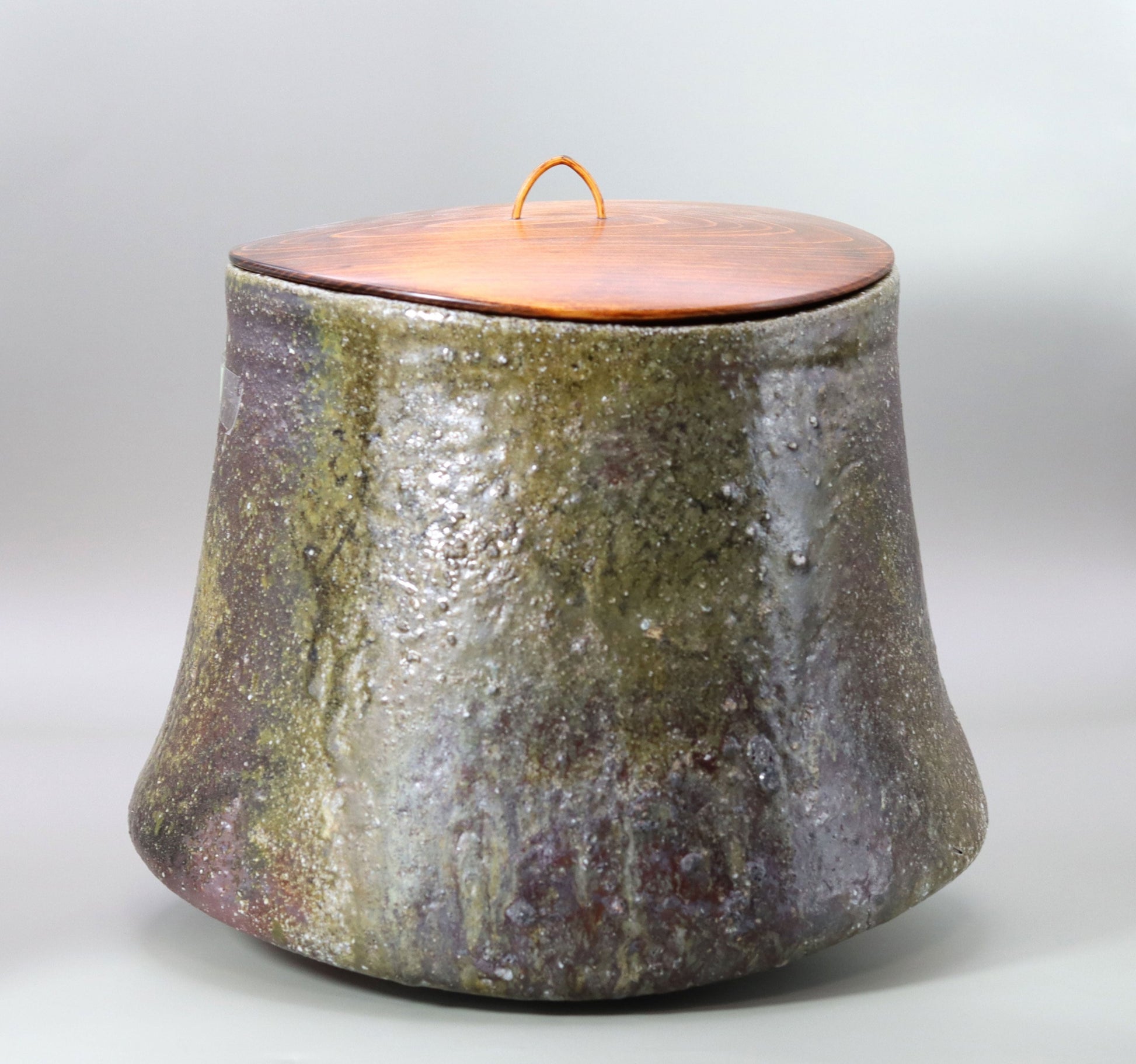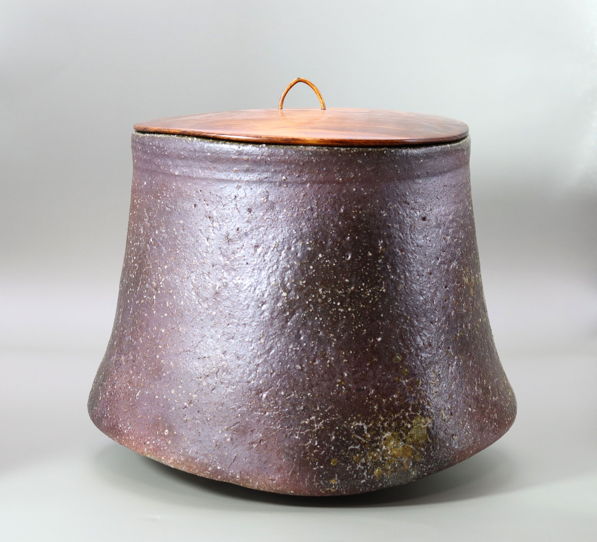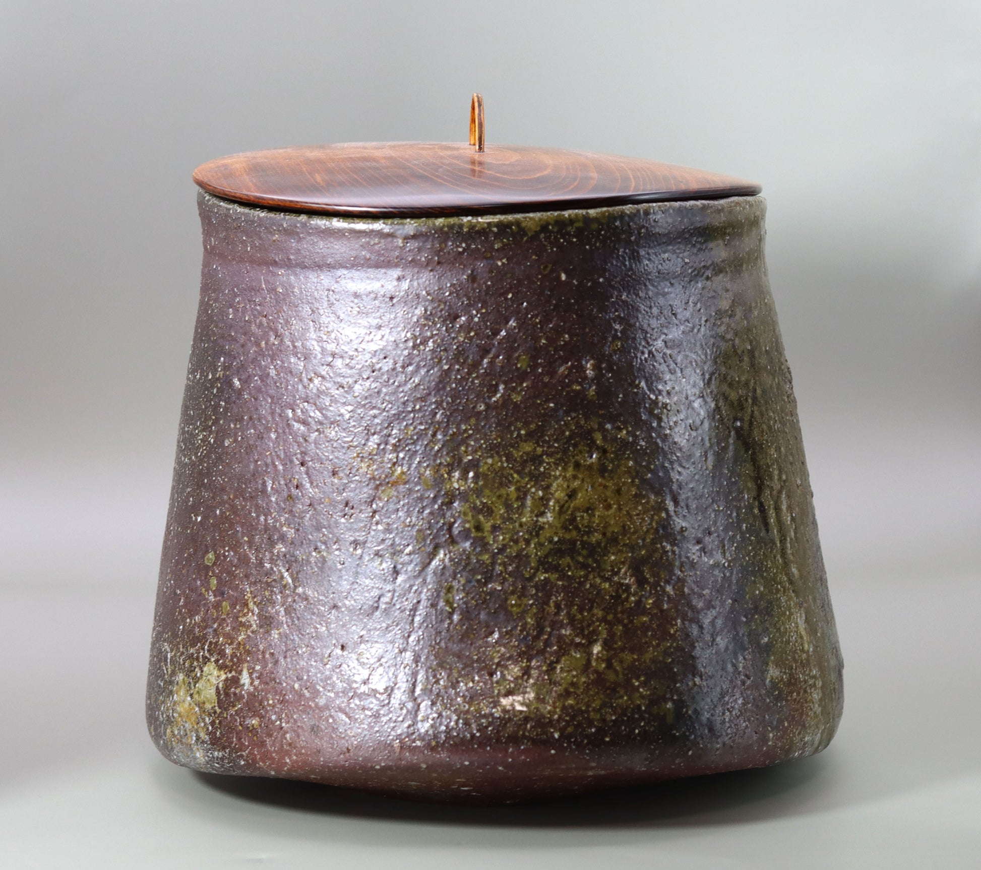 What further enhances this pitcher is the lid, made by Emiko Inoue. Having studied at Kyoto City University of Arts and subsequently received numerous awards, Inoue is one of Japan's leading lacquer artists. Her lid adds elegance and sophistication to the Tamba pitcher, bringing out a wonderful harmony in the overall piece. The presence of the lid, which highlights Inoue's skillful craftsmanship, brings an even more special feeling to the tea ceremony.