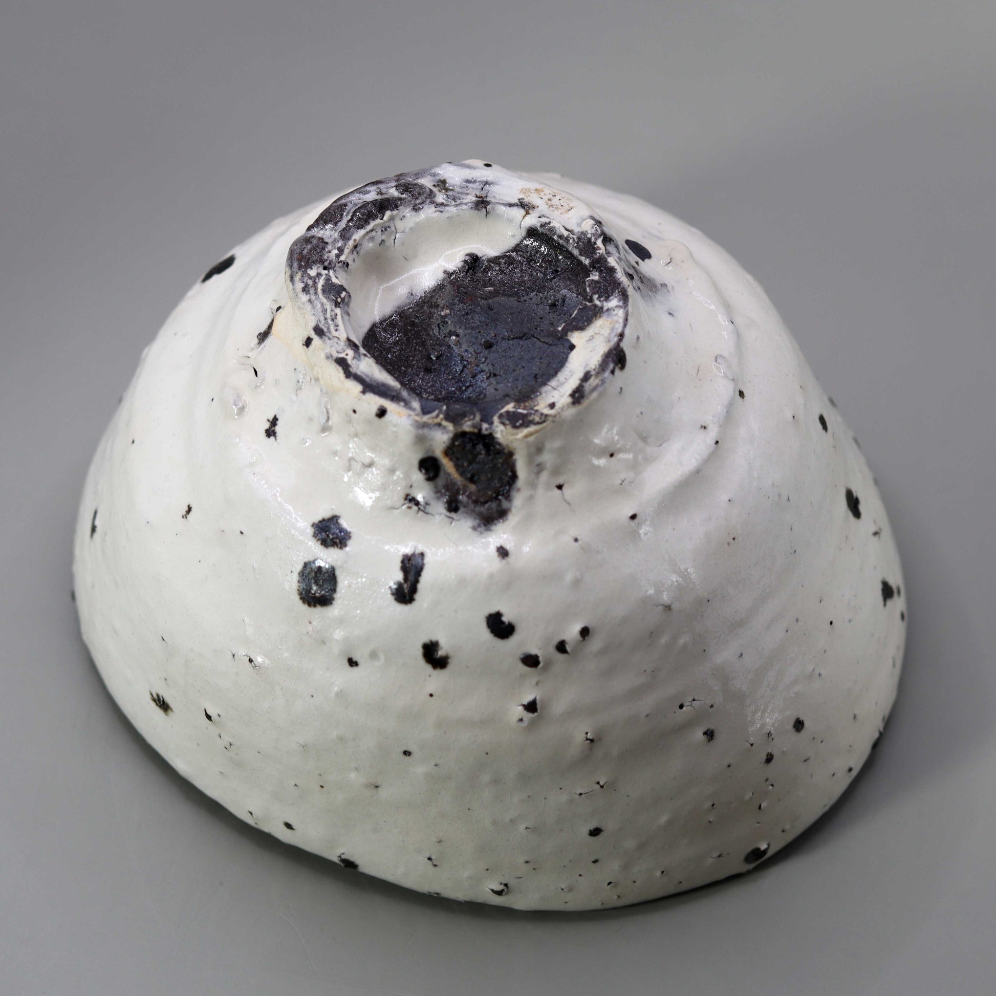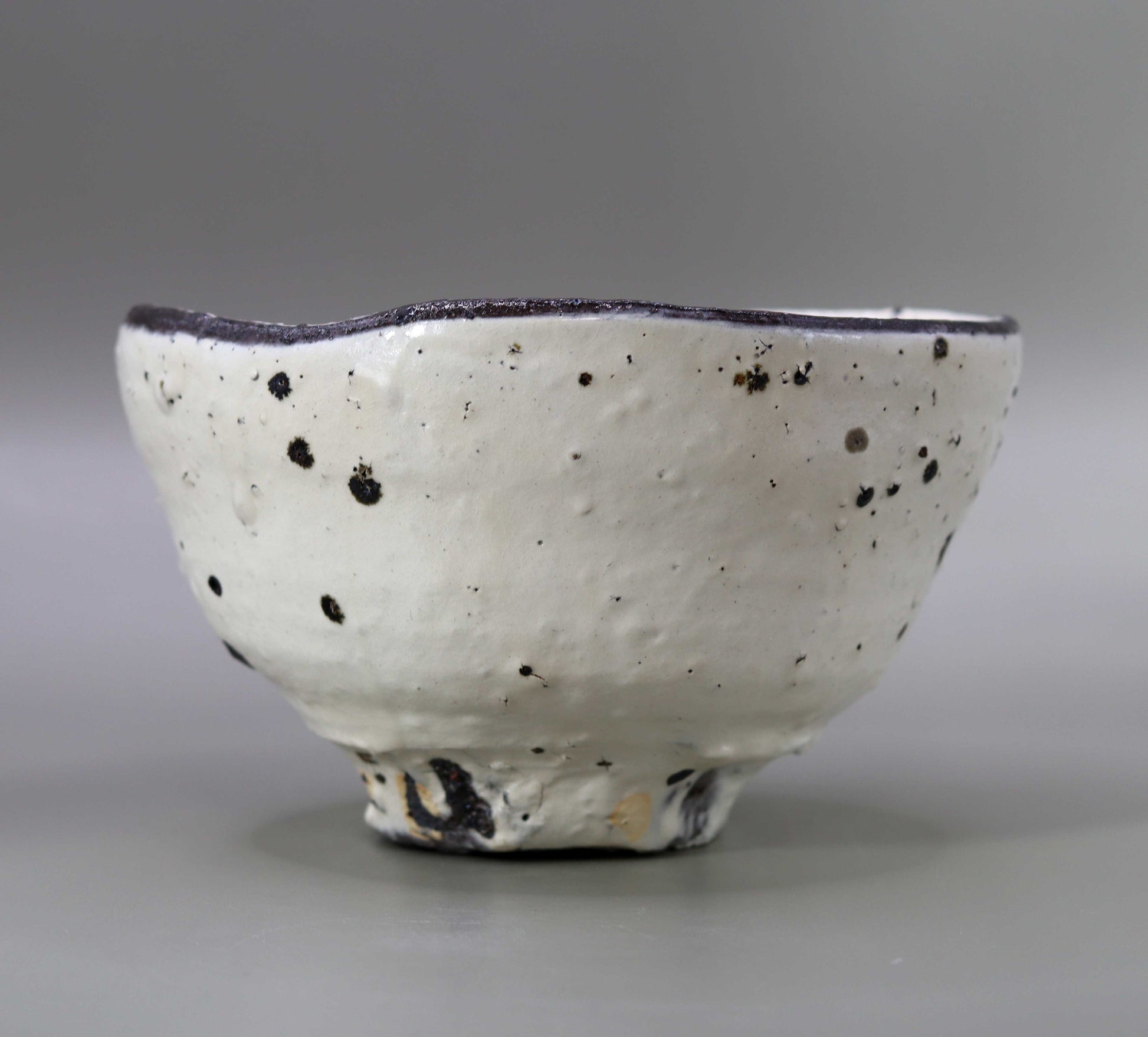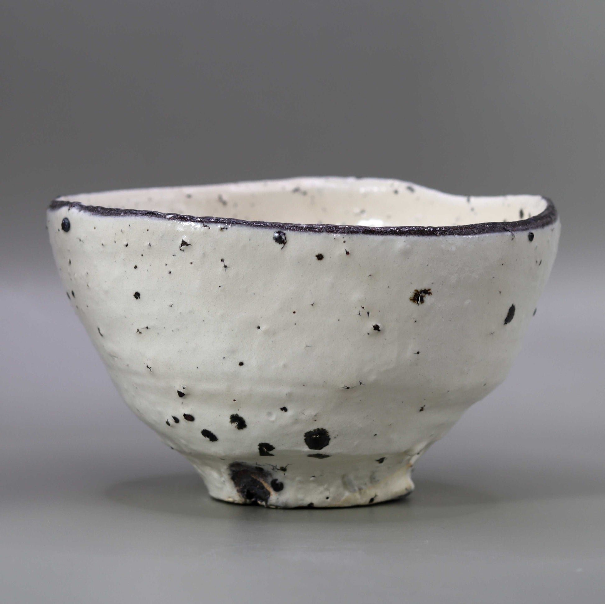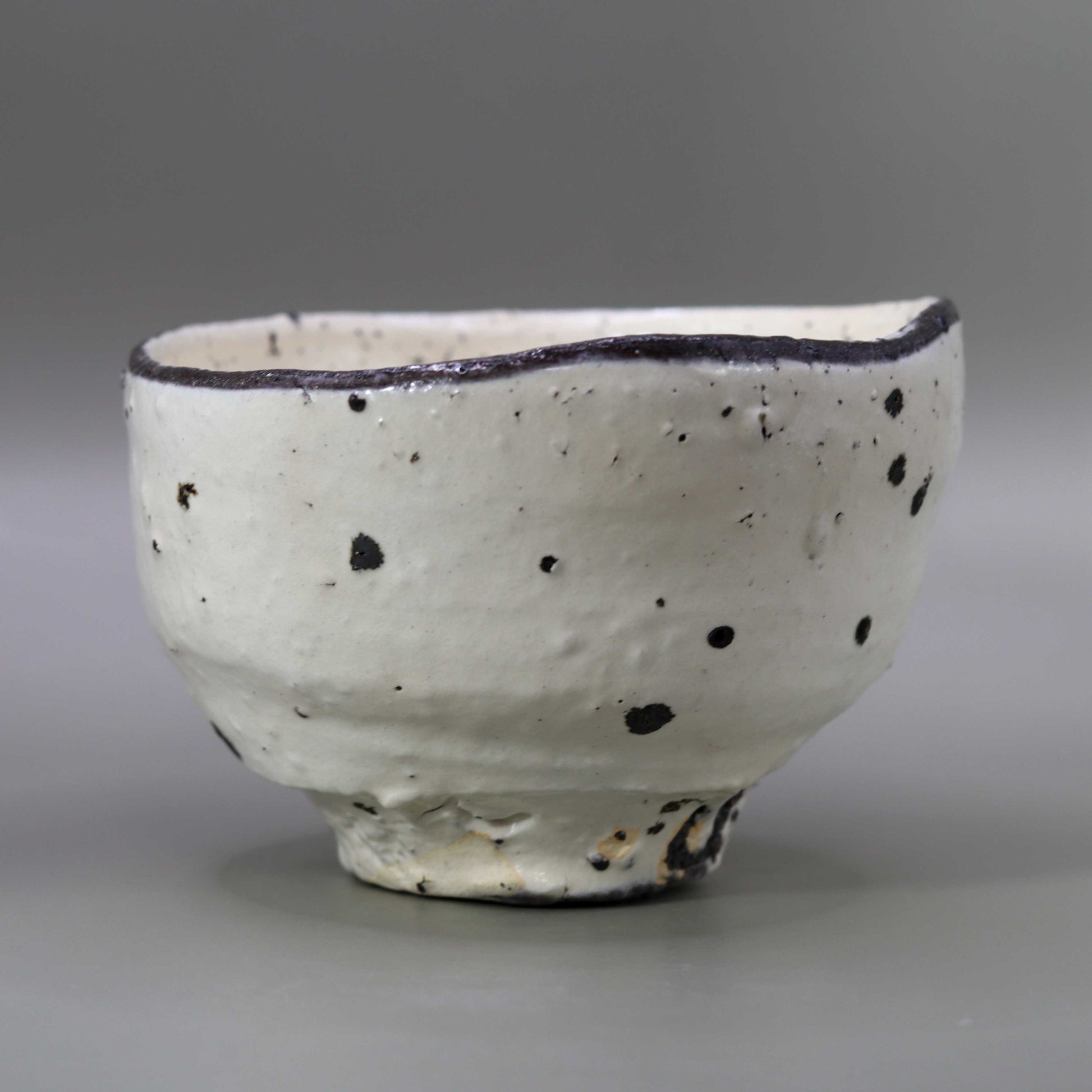Masahiko Ichino's work, "Shiratanba-no-Hachi", is a tea bowl with a simple yet profound beauty, featuring a white base with black dots as accents. When held in the hand, this piece feels strangely familiar, giving the user a sense of comfort and security. Not only that, it is also visually beautiful, and is a concentrated expression of Ichino's technique and sensibility in his pursuit of advanced beauty in the world of tea pottery in particular. Ichino's work displays the utmost in form within the traditional framework of tea pottery, challenging the limits while adhering to the constraints of the tea ceremony, and this attitude is strongly reflected in this tea bowl.