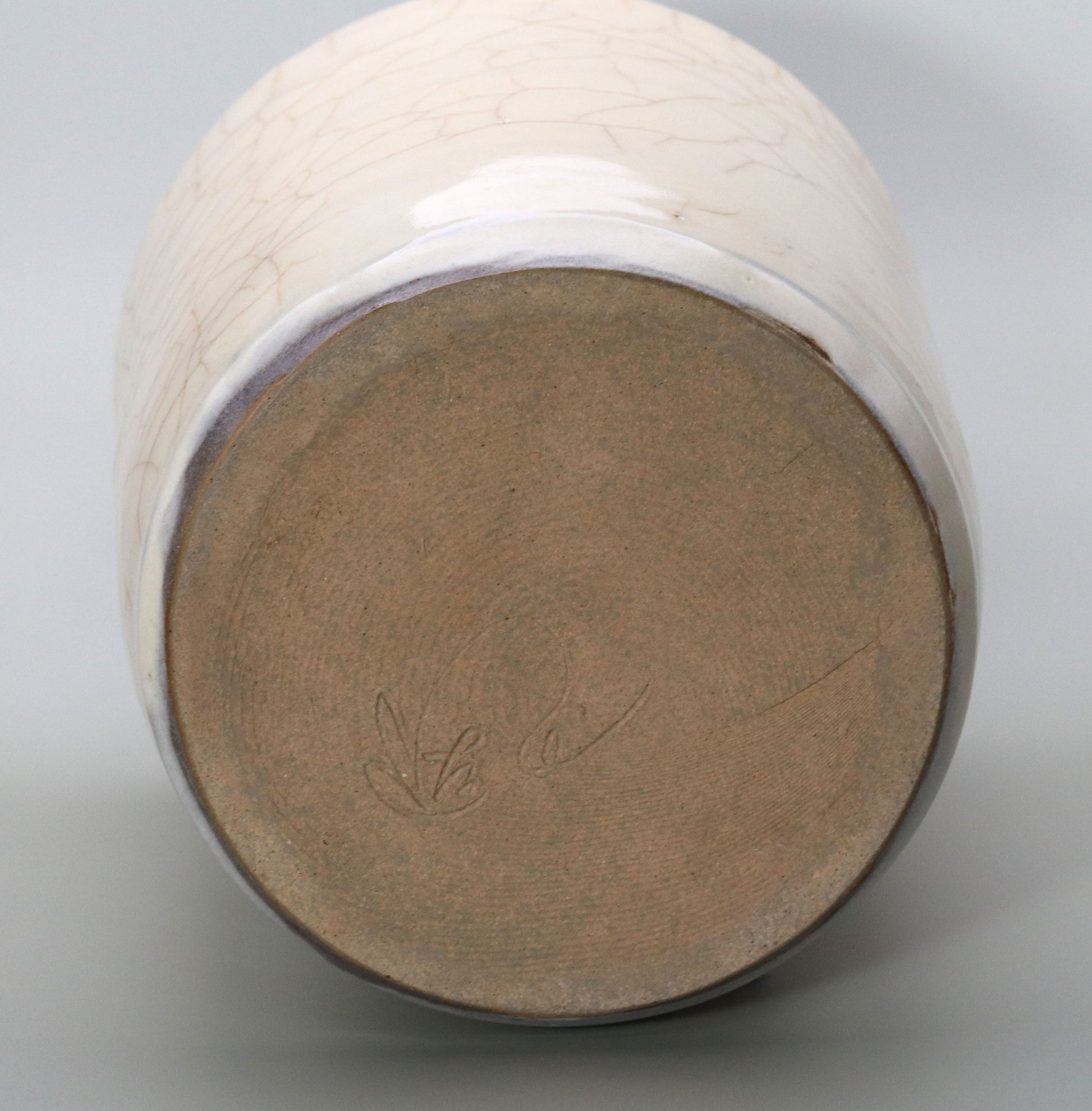 The imposing size of 21 cm in height allows it to hold a sufficient amount of water for both thin and thick tea, providing a relaxed flow to the tea ceremony. The cleanliness of the white glaze also has the effect of easing the tense atmosphere of the first session and relaxing the guests. It harmonizes with any of the floor decorations - the pale pink of cherry blossoms in spring, the cool green of maples in summer, the deep red of maples in autumn, and the snowy scenery in winter - and brings the entire tea room together with elegance.