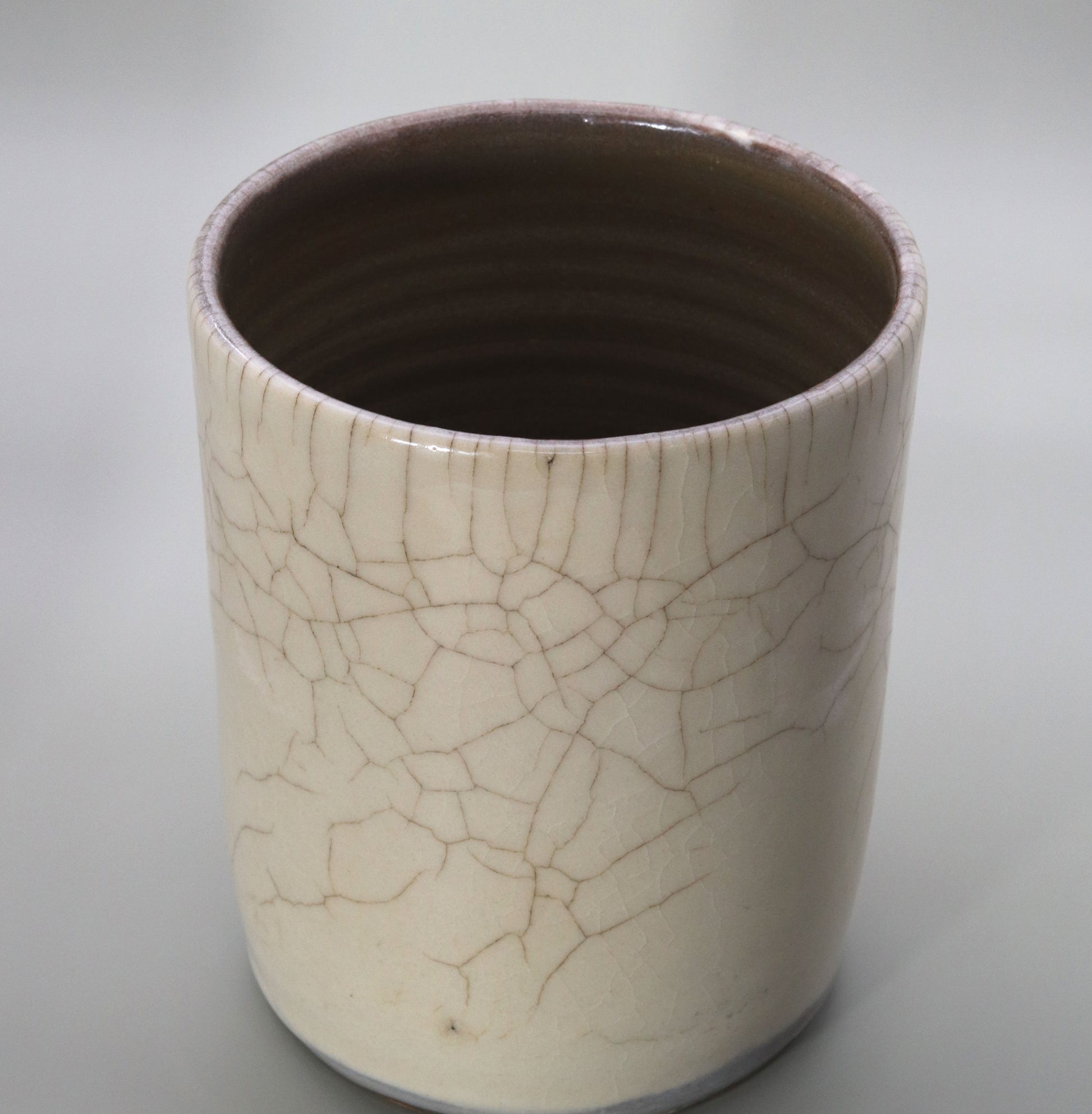 The soft milky white color of the white Tanba glaze has a moist luster that reflects the pale moonlight. The crazing that runs across the entire surface of the vessel is a natural pattern that appears after firing, and the delicate mesh spreads out like a rich landscape. As time passes, the tea stains soak in and create mysterious brushstrokes on the milky white background, which can be said to be the true joy of a vessel that "grows."