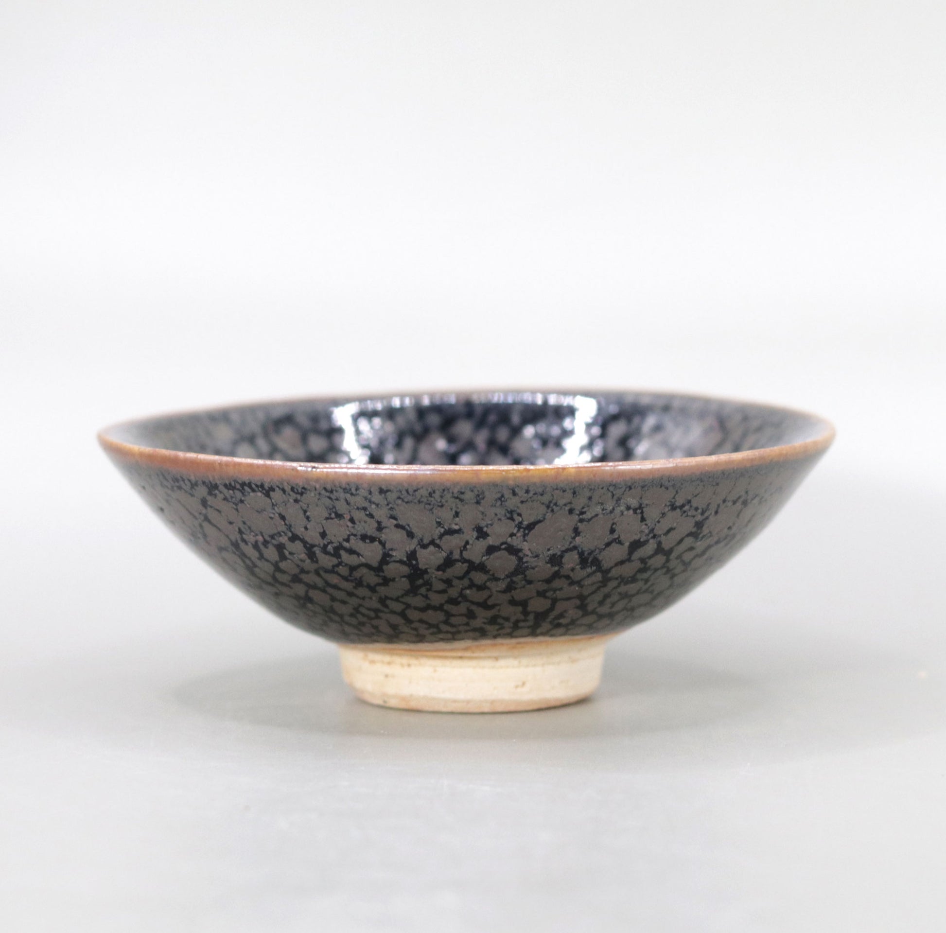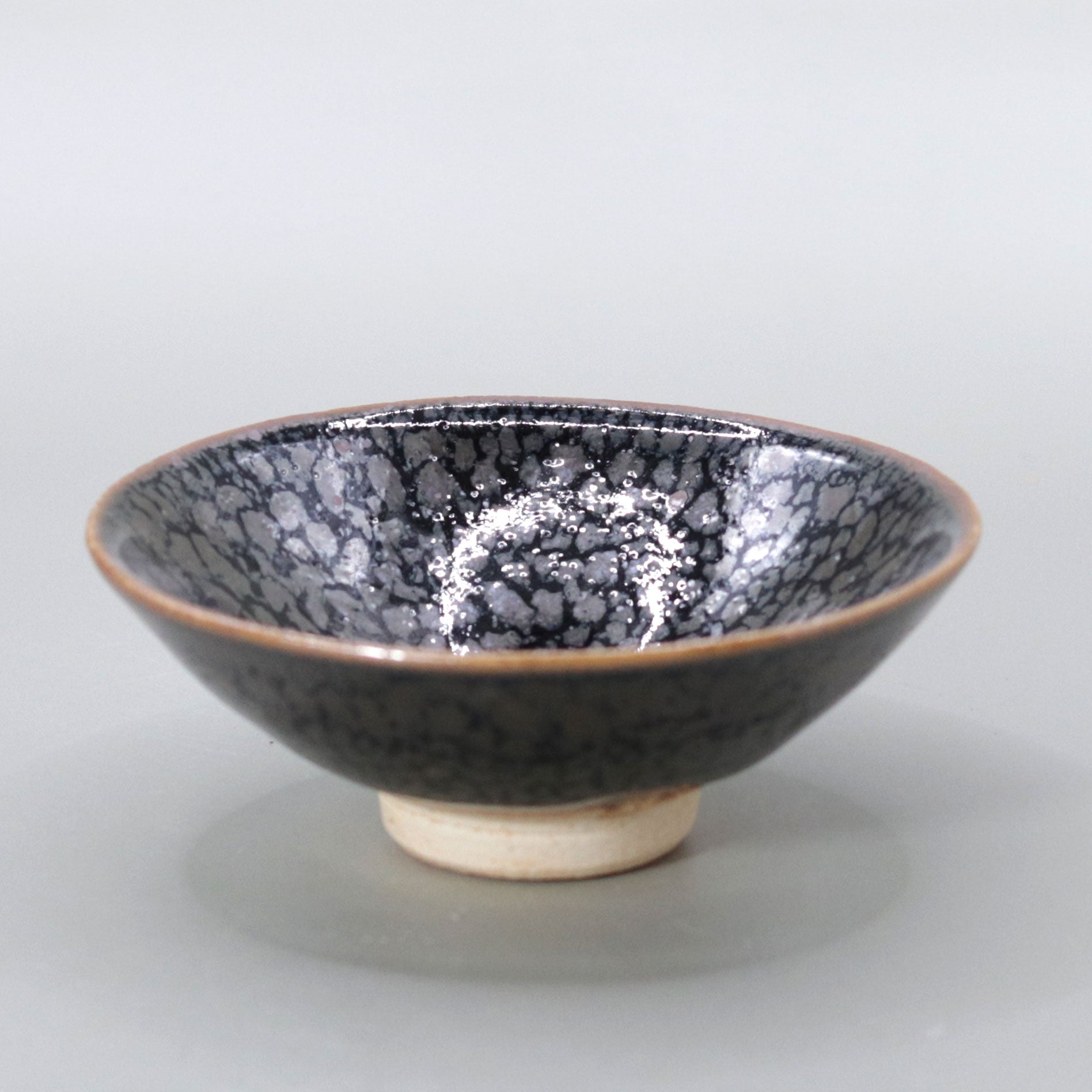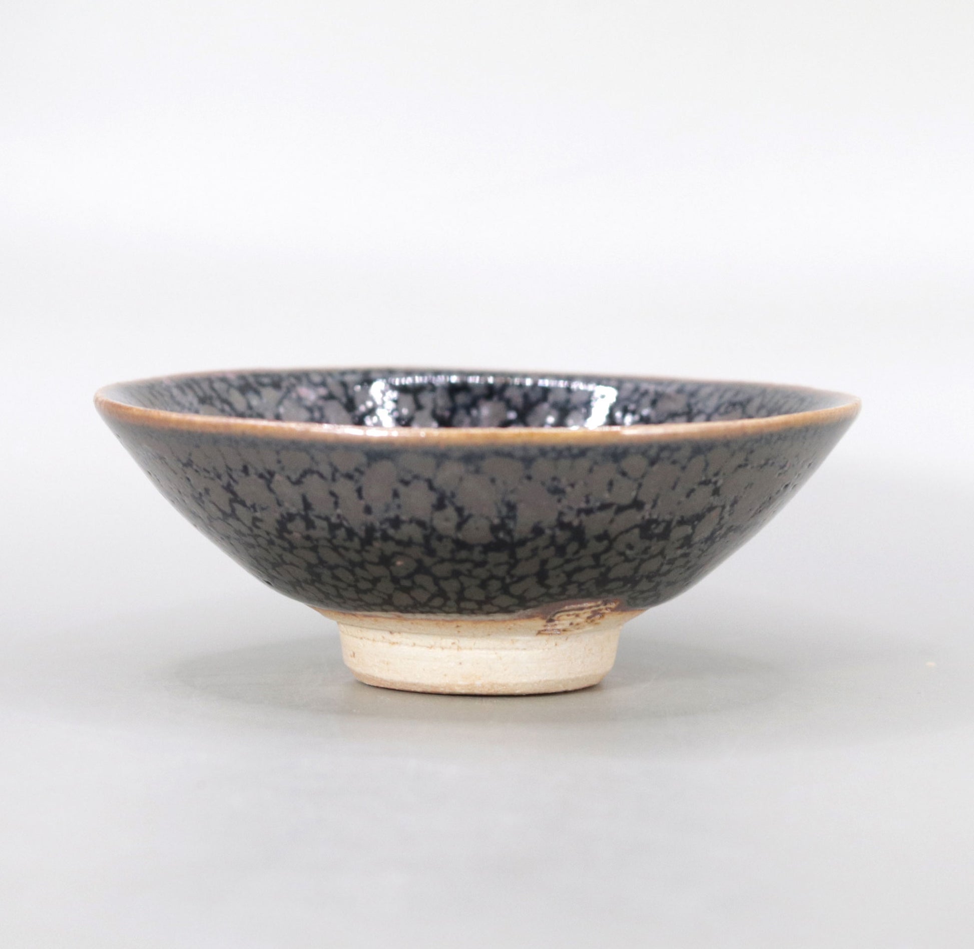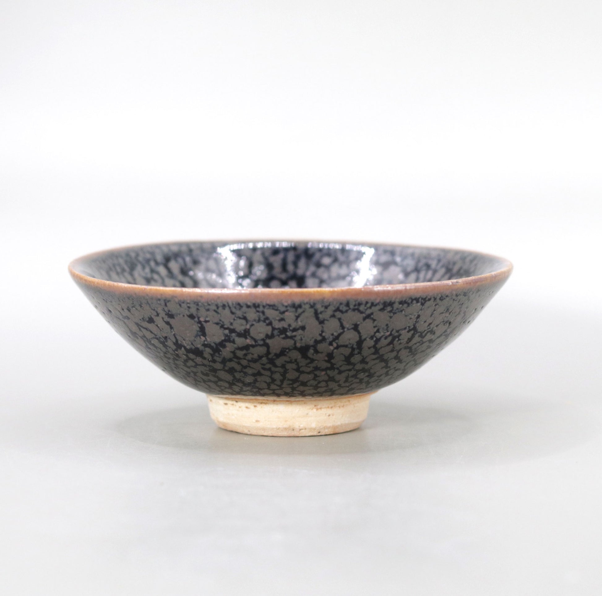 The technique of Yuteki Tenmoku is said to have originated in the Jian kiln in southern China during the Southern Song Dynasty in the 12th to 13th centuries . The markings on the Tenmoku tea bowls fired at the Jian kiln are characterized by iridescent oil droplets, a pattern that formed naturally under the special conditions in the kiln. In China at that time, black-colored bowls were favored for the "tea ceremony," and bowls with beautiful markings were especially highly valued. These Jian kiln Tenmoku tea bowls became popular from the Song dynasty through the Yuan and Ming dynasties, and the iridescent bowls known as "Yohen Tenmoku" were especially prized among aristocrats and emperors, and are renowned as legendary masterpieces, with only a few remaining today.