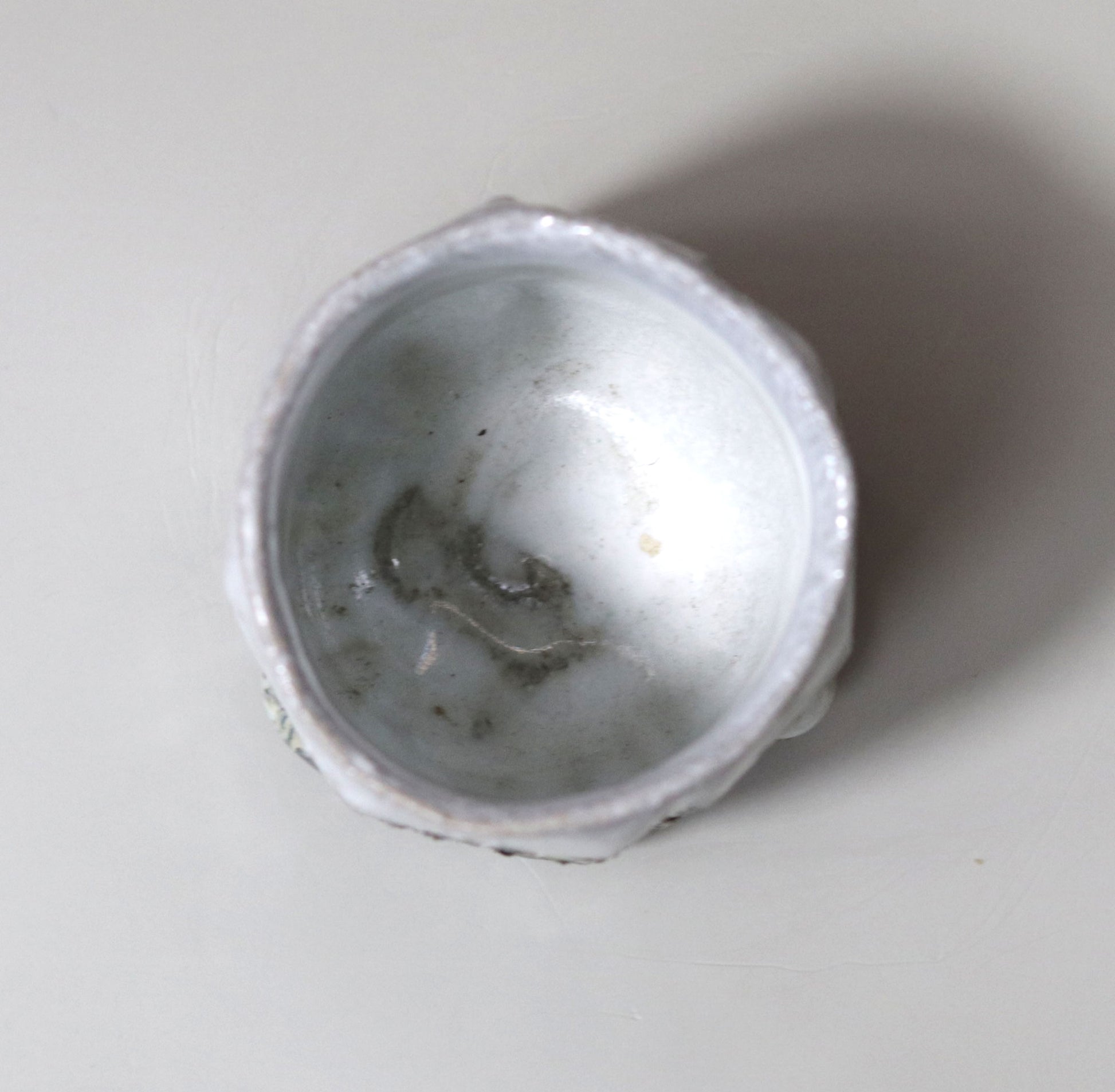 Ash glaze is a glaze made from the ashes of plants and trees, and is broadly divided into three types: tussock ash, earth ash, and straw ash. Bass ash is made from the bark of oak and chestnut trees and produces a pale blue glaze, earth ash is a pale blue-green, and straw ash is a milky white glaze. On this sake cup, each type of ash glaze is beautifully applied in different ways, creating a beautiful color contrast.