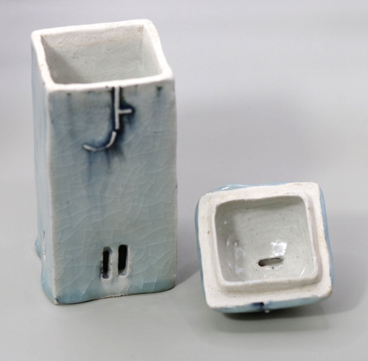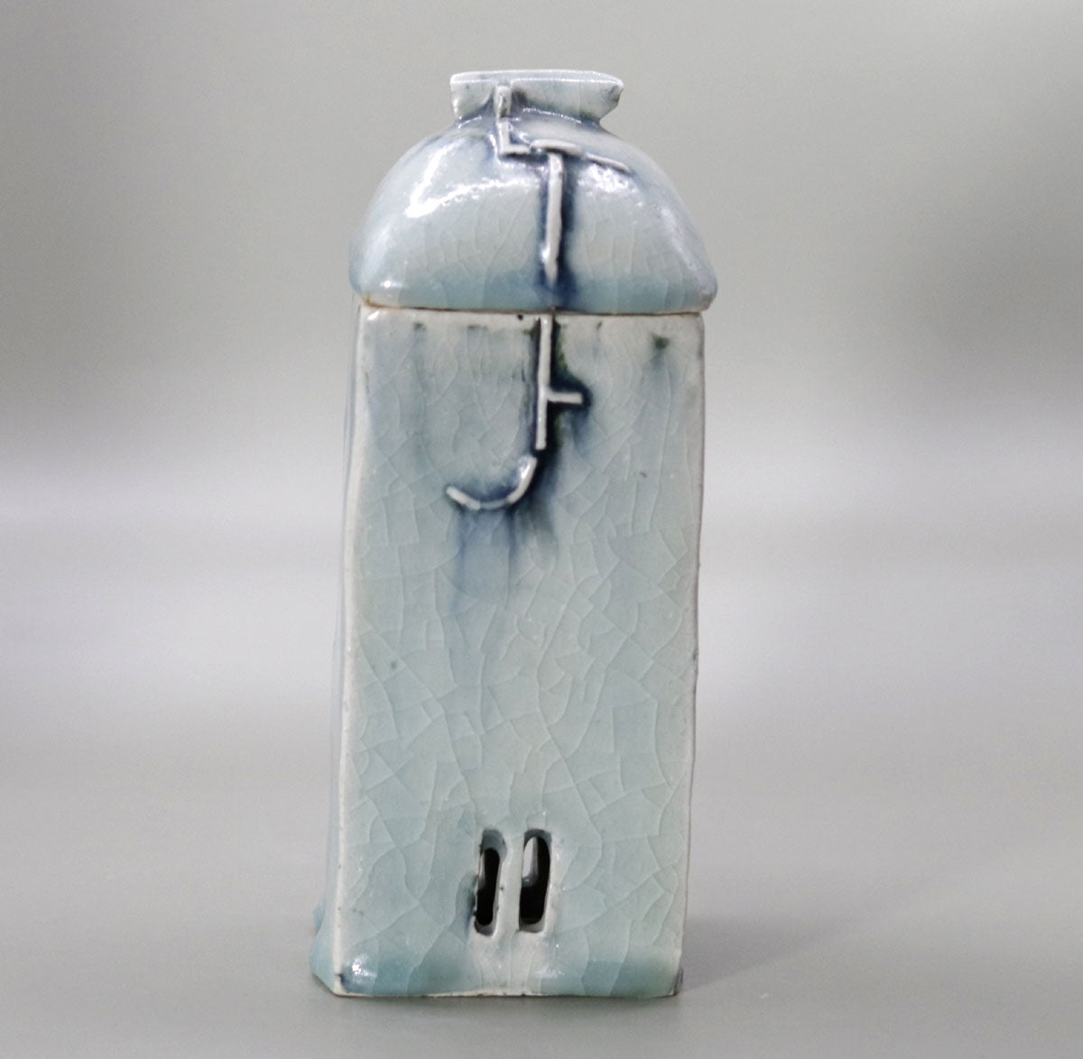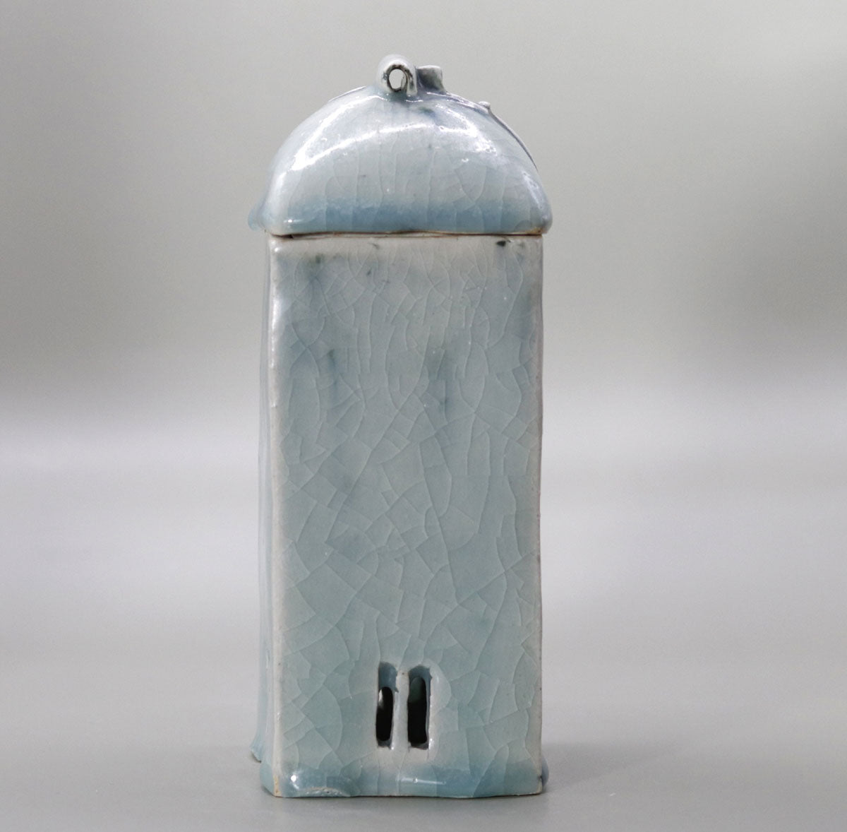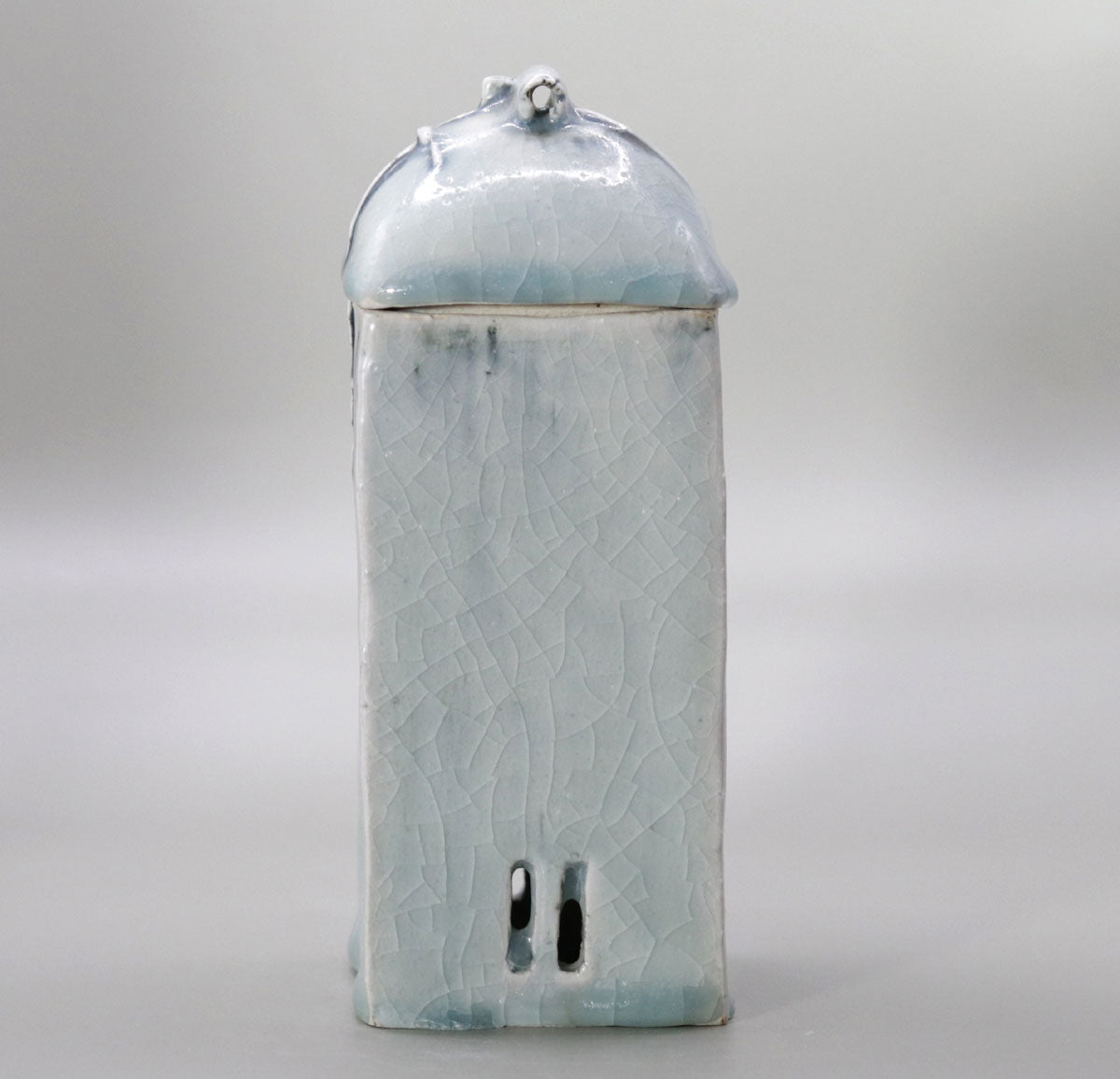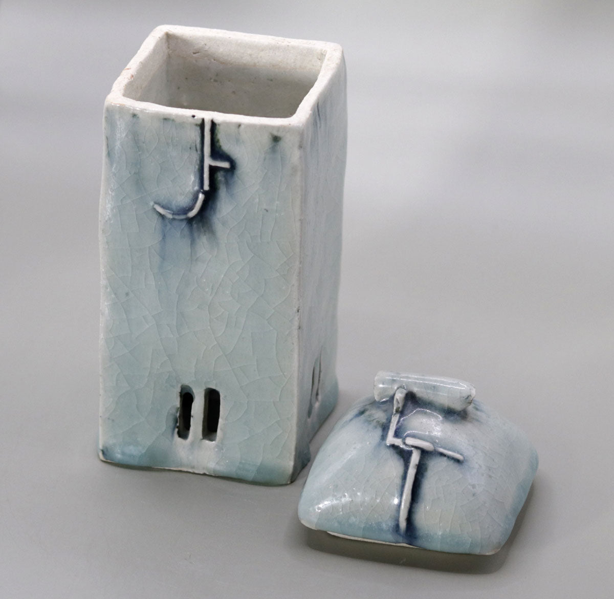 The Gosu Incense Burner is a poetic piece by the ceramicist Shin Fujihira, and its shape is fantastical, like a tower that came out of a picture book. Its rectangular, slender form combines elegance and warmth, creating a design that evokes a certain nostalgia.