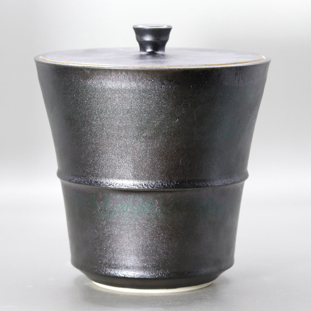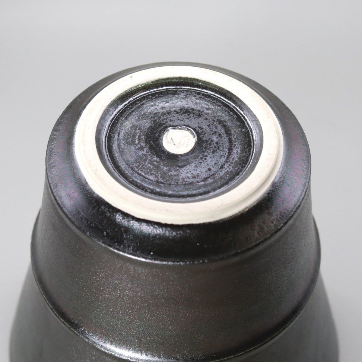 The deep black color tightens the tea ceremony, the fluctuation of the kiln firing creates an lingering feeling of wabi, and the bamboo joint design speaks of the samurai taste for wabi-suki and the praise of nature at the same time. Okada Masaru has reflected in his mind the scenery of the bamboo forest in Sumiyama swaying in the morning mist, and by sinking the emerald color into the depths of the black glaze, he has brought to the vessel the image of "bamboo before dawn."