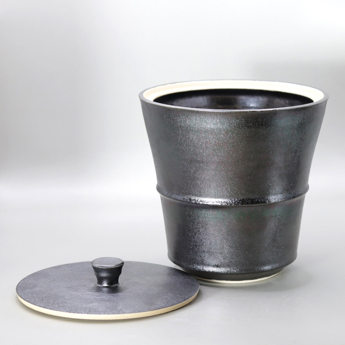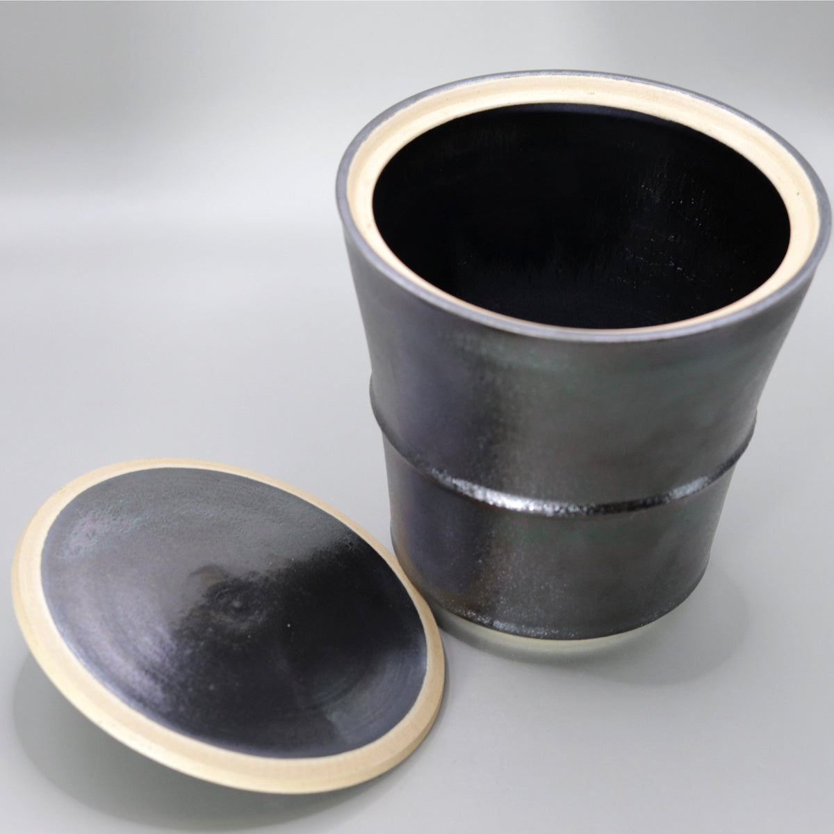 Mizujars are used to pour water into the tea kettle during the tea ceremony and to store water to rinse the tea bowls and tea whisks - they are the essential tools that control the moisture and tranquility of the tea ceremony. Those with a shared lid like this one, with the body and lid in the same design, can be used as the core of the tea ceremony tools regardless of the season. In particular, a pure black mizujar brings out the mysterious beauty of the kettle and tea bowls, bringing tension and tranquility to the entire tea ceremony.