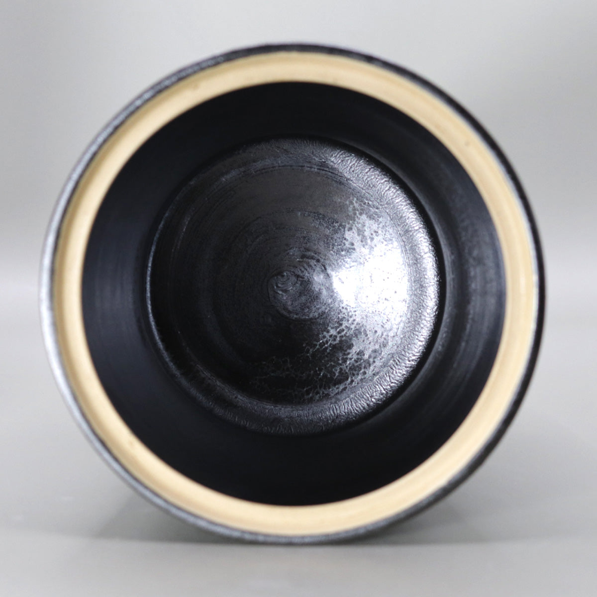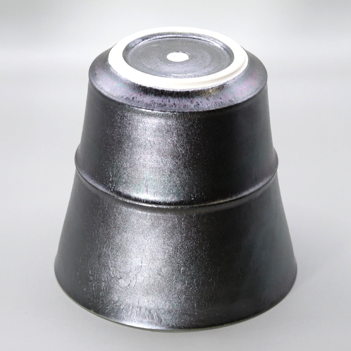 Glazes that contain a lot of iron produce a deep black color when fired at high temperatures, but also show slight hints of green, purple, or brown depending on the flame fluctuation and the degree of reduction. Okada Masaru adds a moment of oxidizing flame at the end of the reduction process, creating a mottled look of jade in the depths of the black base, creating a tranquil yet expressive texture.