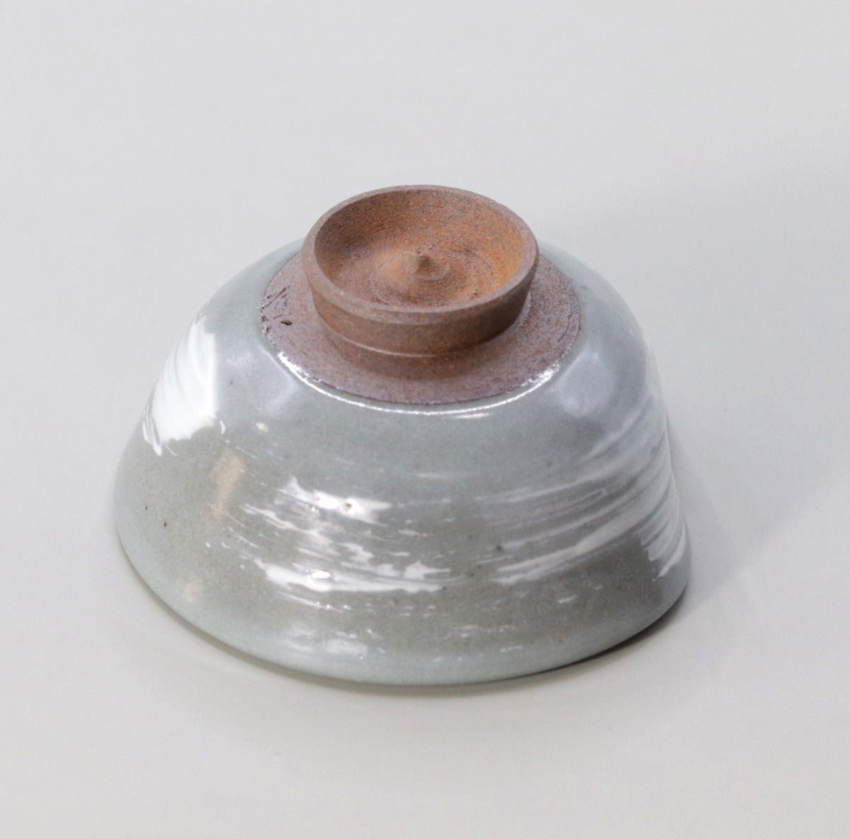 First, the potter's wheel is used to shape the pottery thinly, then white clay is brushed on before bisque firing, and after drying, the pottery is dipped in a transparent ash glaze in a two-step process. During firing, the thickness of the glaze in the brushed areas becomes thinner, so the unevenness of the white clay rises up slightly, leaving a pleasant texture on the fingertips. The brushed areas that are submerged under the glaze and the unglazed foot - these two contrasting expressions are beautifully harmonised in one cup, showcasing the skill of Takahashi Michihachi, the potter's hand.