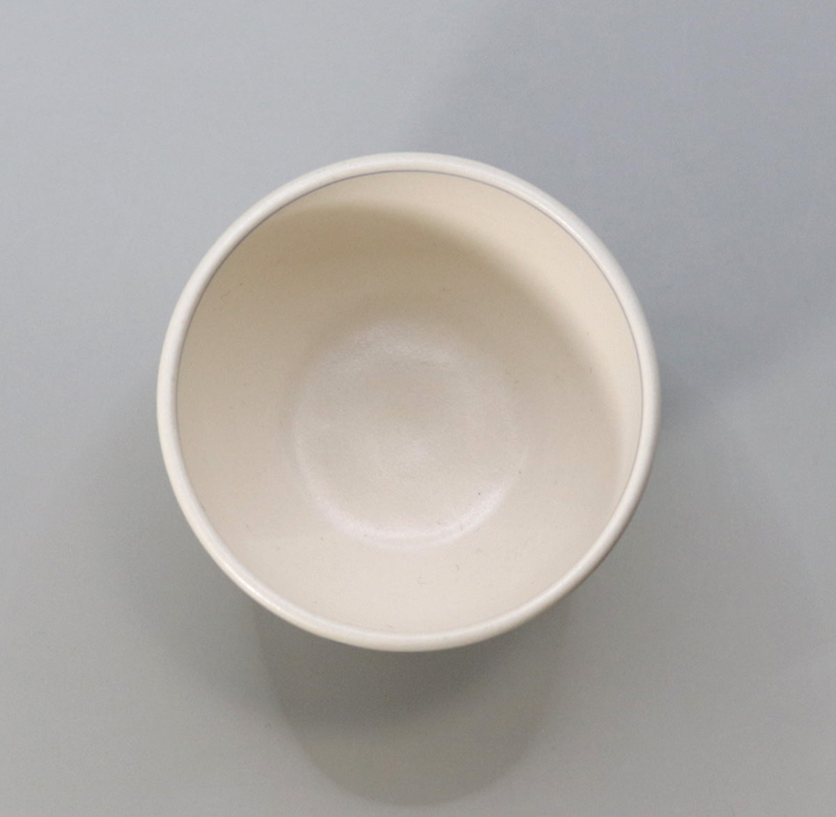 The body is slightly narrower than the diameter, and the proportions are neatly shaped like a trumpet toward the base. The soft impression of the cream-colored clay and the stability of the high base combine to make it easy to grip and turn with one hand. The rim is slightly curved outward, allowing the sake to flow smoothly to the center of the tongue.