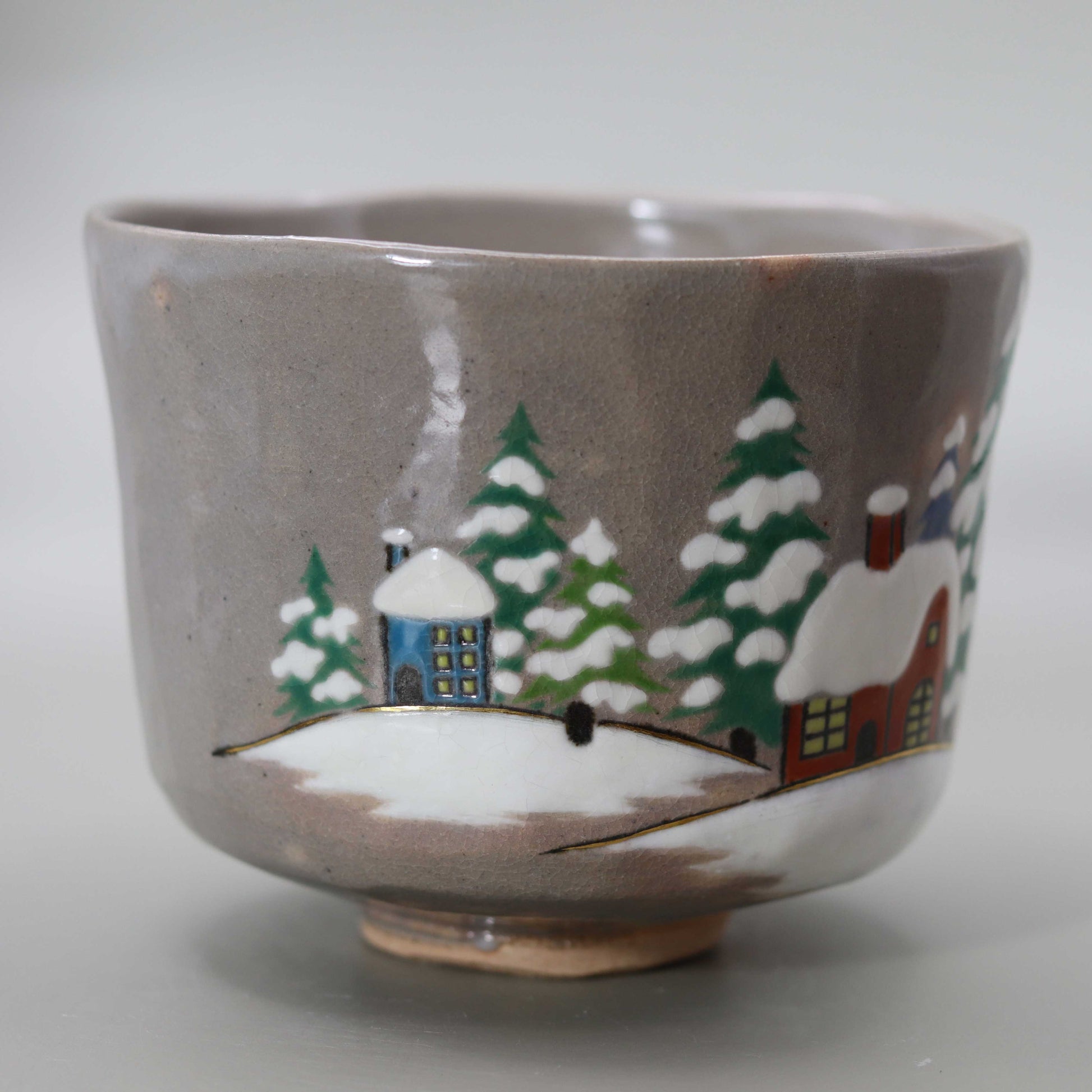 Makuzu ware is known for its diverse range of techniques. It incorporates a wide range of traditional Kyoto ware techniques, such as blue and white, iron painting, Kochi, and gold lining, to add depth to its pieces. This "Christmas Painted Tea Bowl" is also a concentrated example of Makuzu ware techniques, characterized by the beauty of the overglaze painting and the rich colors. The craftsmanship can be seen everywhere, and the moment you hold the tea bowl in your hands, you will be impressed by its delicate construction.
