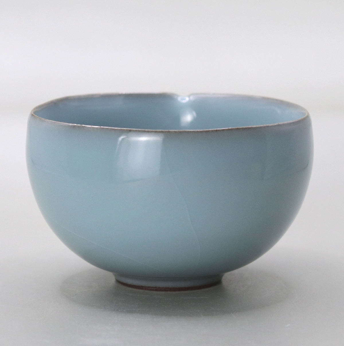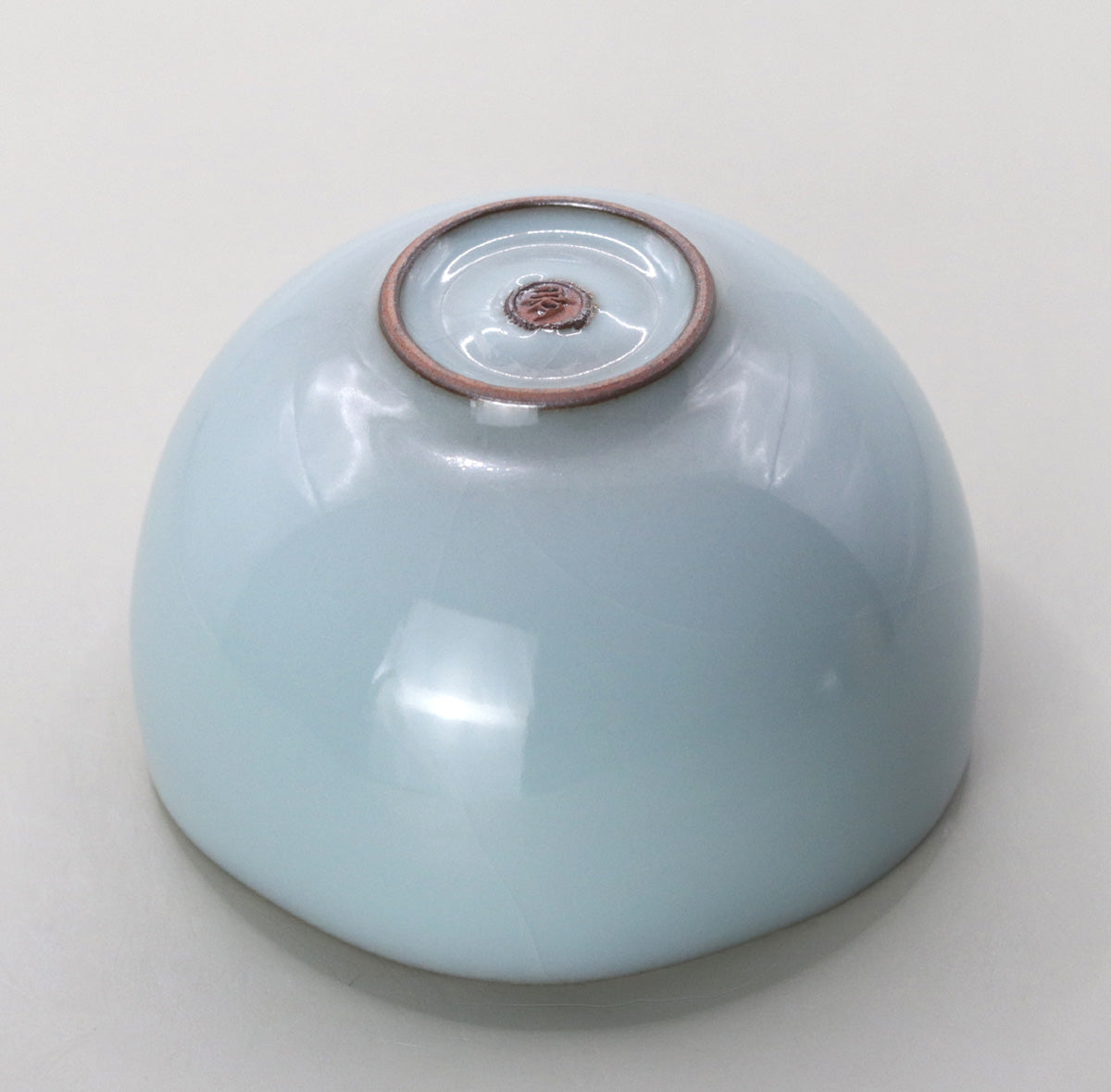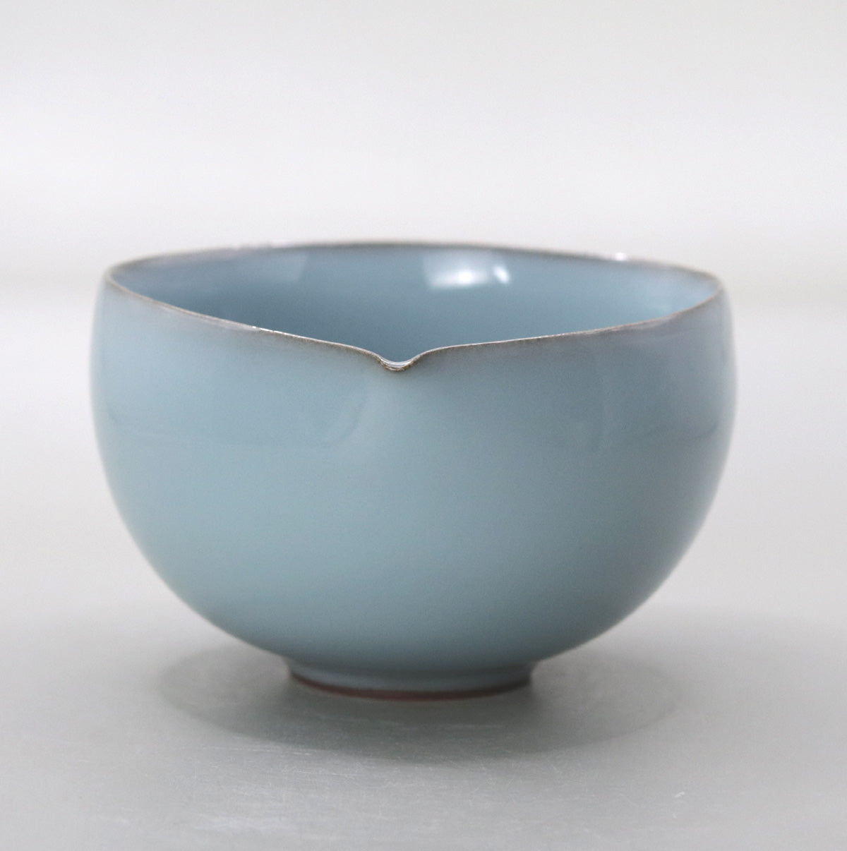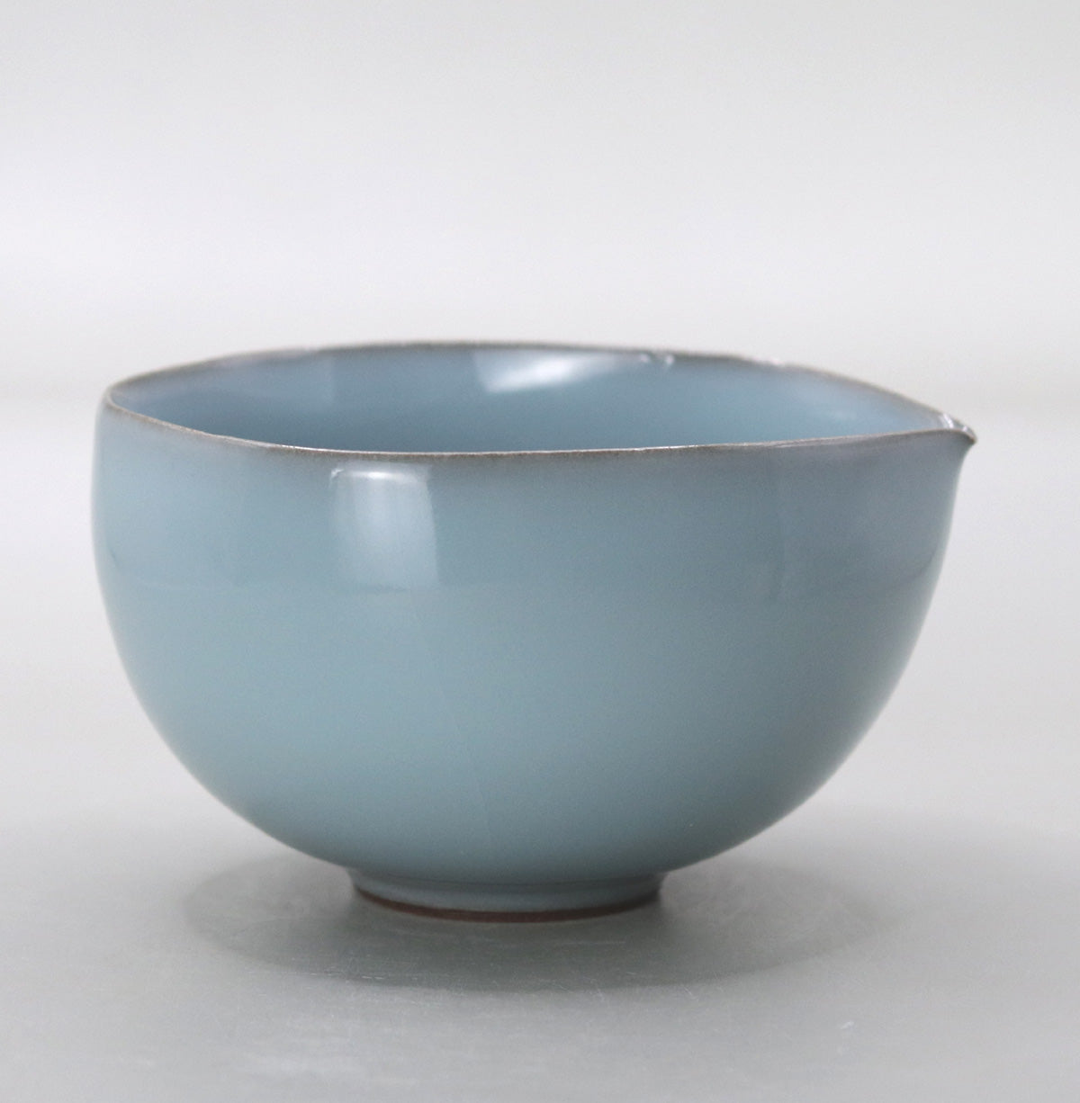Celadon began in the Yuezhou kilns of the Six Dynasties and reached its peak at the Ru kilns of the Northern Song and Longquan kilns of the Southern Song. It was brought to Japan by Zen monks after the Kamakura period and has been treasured not only as tea utensils but also as sake utensils. The clear color of celadon in particular beautifully brings out the pale golden color of sake, which retains the flavor of rice, and it is said that tea masters of the Momoyama period also favored it at drinking ceremonies. This work respects that tradition but is reconstructed into a minimalist form that stands out on the modern dining table and in the bar scene.