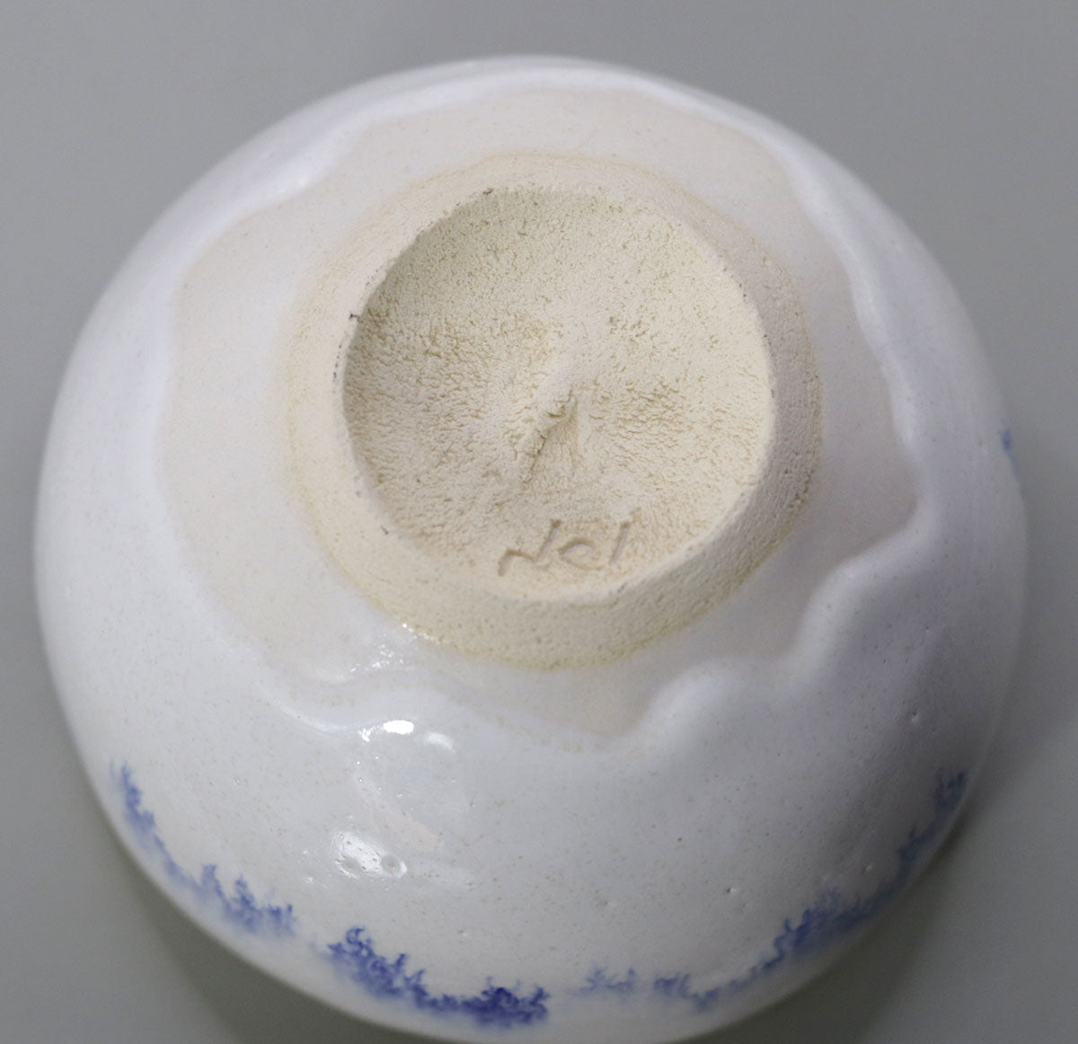 The white of the glaze is pure, yet the contrast with the blue gives it depth, and the beauty of the color, which combines tranquility and gentleness, envelops the entire work. This color expression is the result of Nei Fujihira's outstanding technique and sensibility, and it highlights a uniqueness not seen in other works.