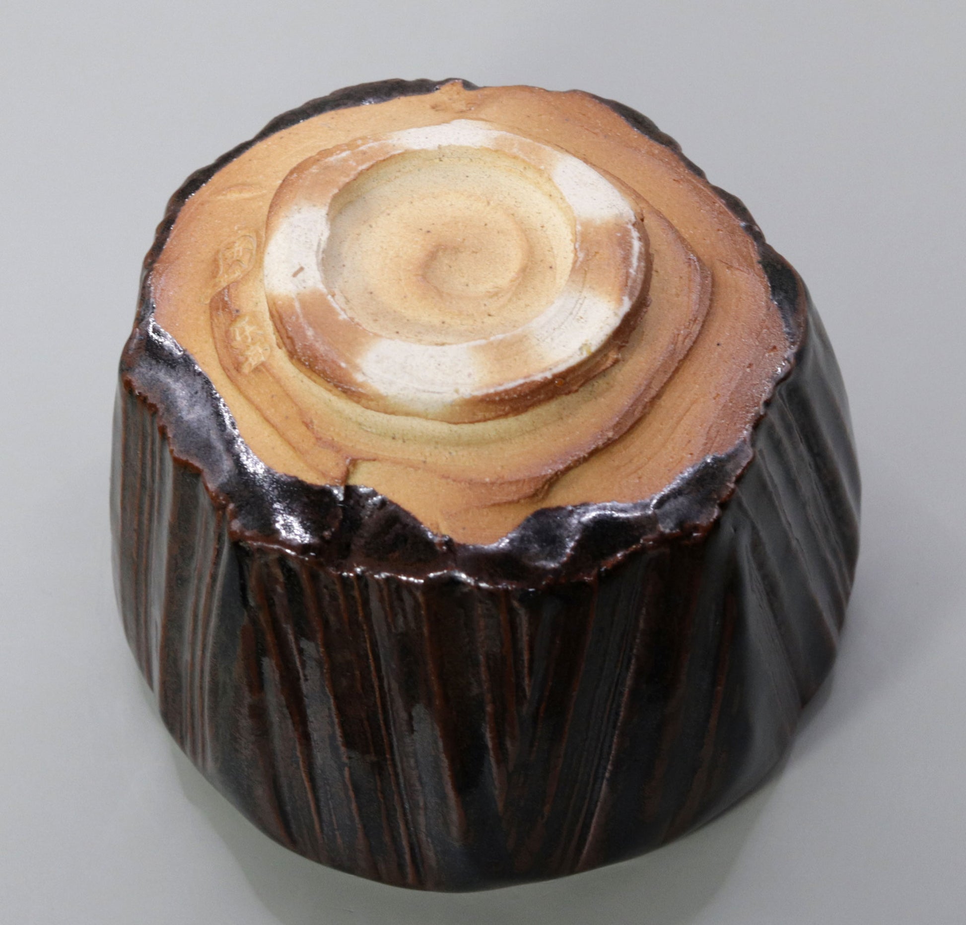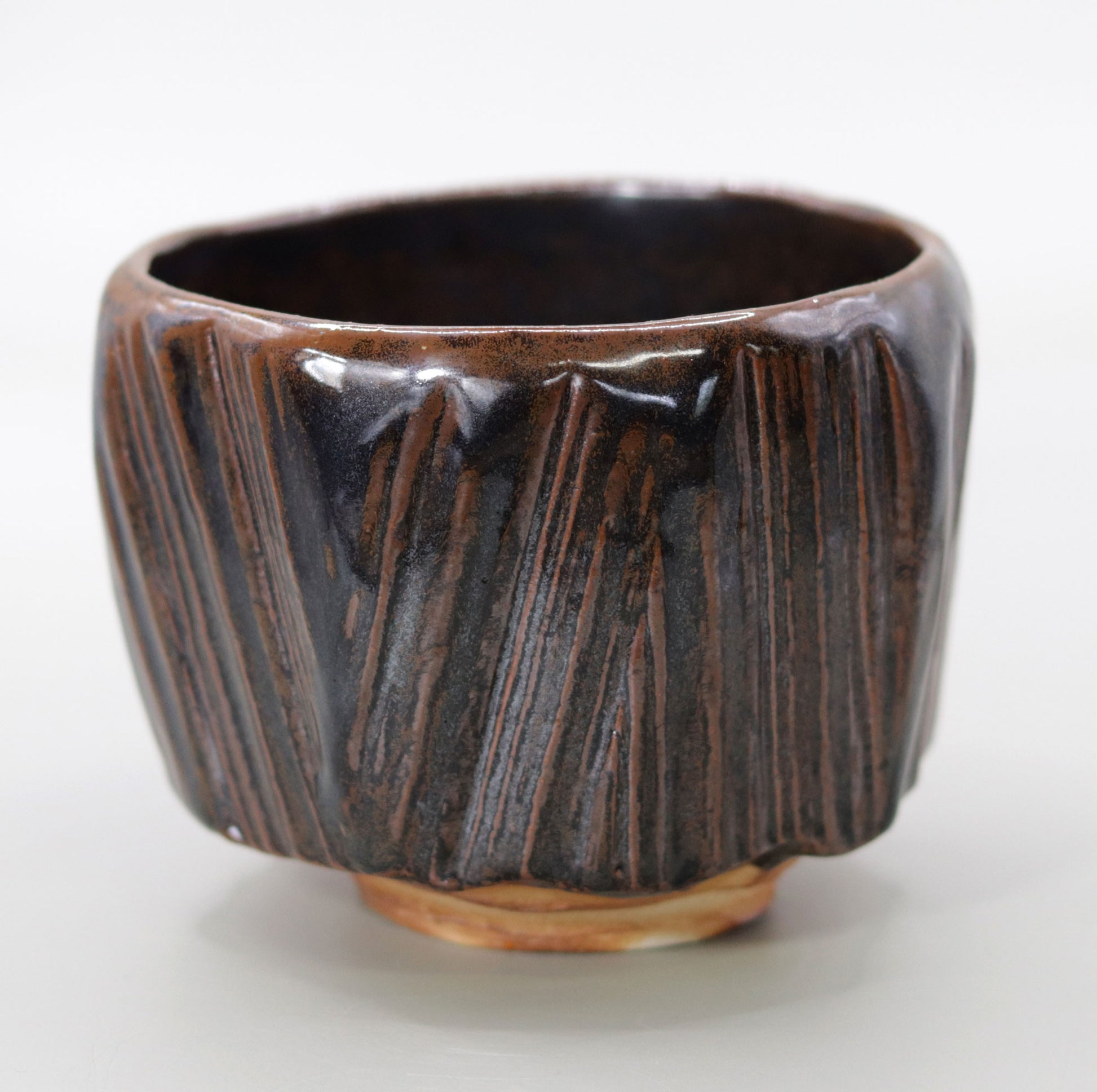 Iron glaze is a glaze that shows various expressions depending on the application and firing process. The changes are skillfully controlled to give the tea bowl a deep flavor. The inside of the tea bowl is iron glazed, and its smooth and shiny surface gives the whole bowl a sense of weightiness. Meanwhile, the outside is characterized by a simple and powerful texture, and when you pick up the tea bowl, you can feel its unique texture.