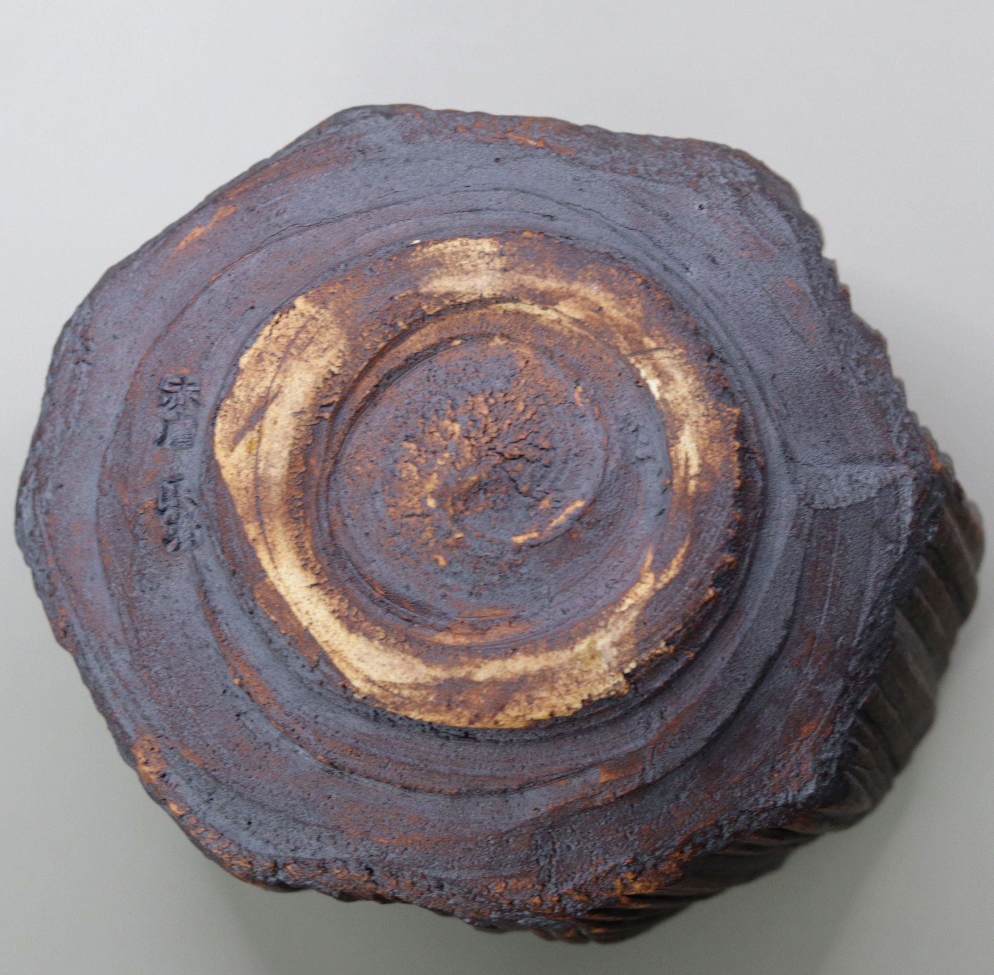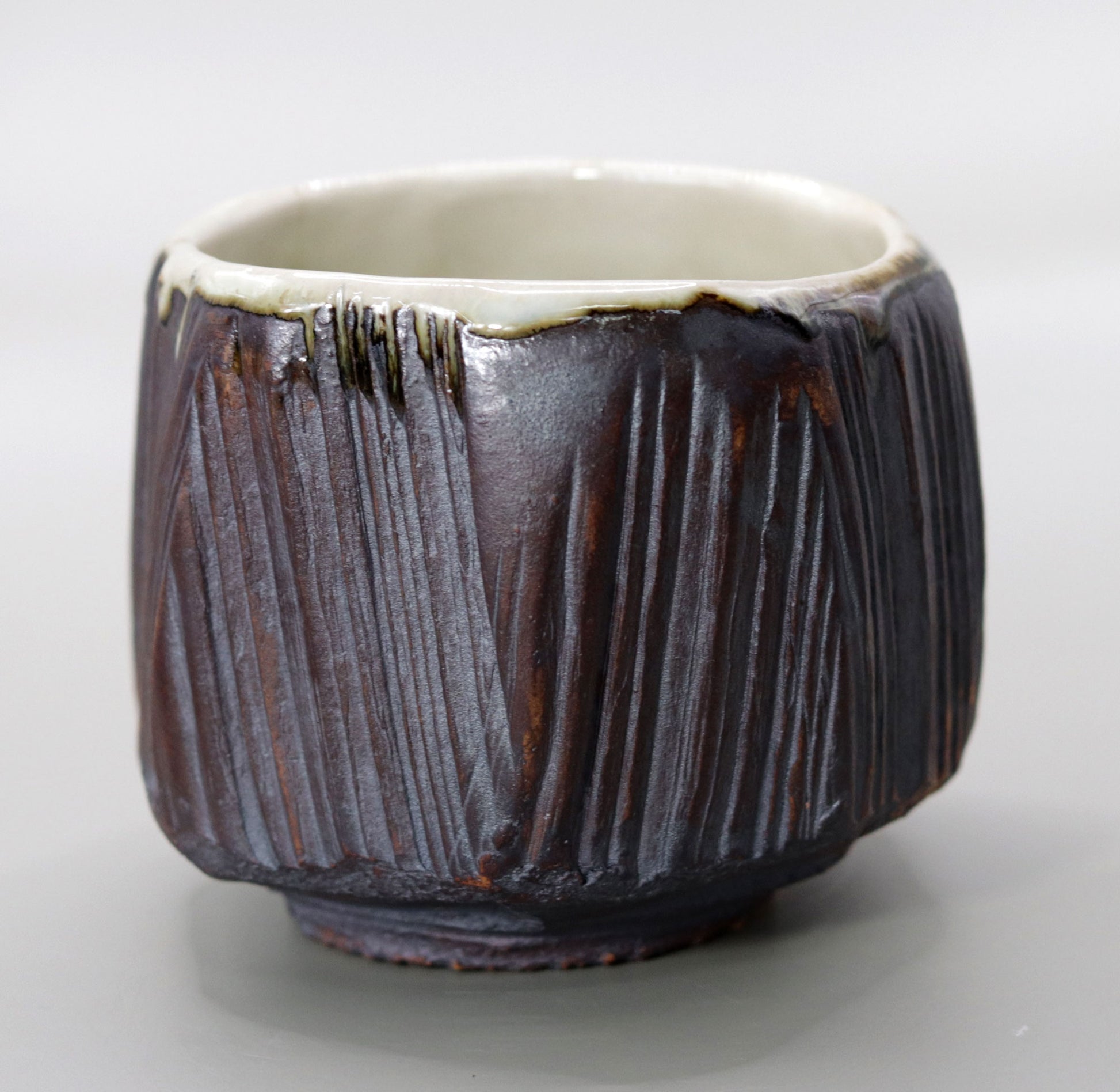 The surface of the tea bowl features strong lines created by hammering the split wood, and the pattern symbolizes the vitality of nature. This strength is combined with the beauty of the delicate glaze to give the tea bowl a special presence. The coexistence of strength and delicacy in the tea bowl truly speaks to the high level of skill.