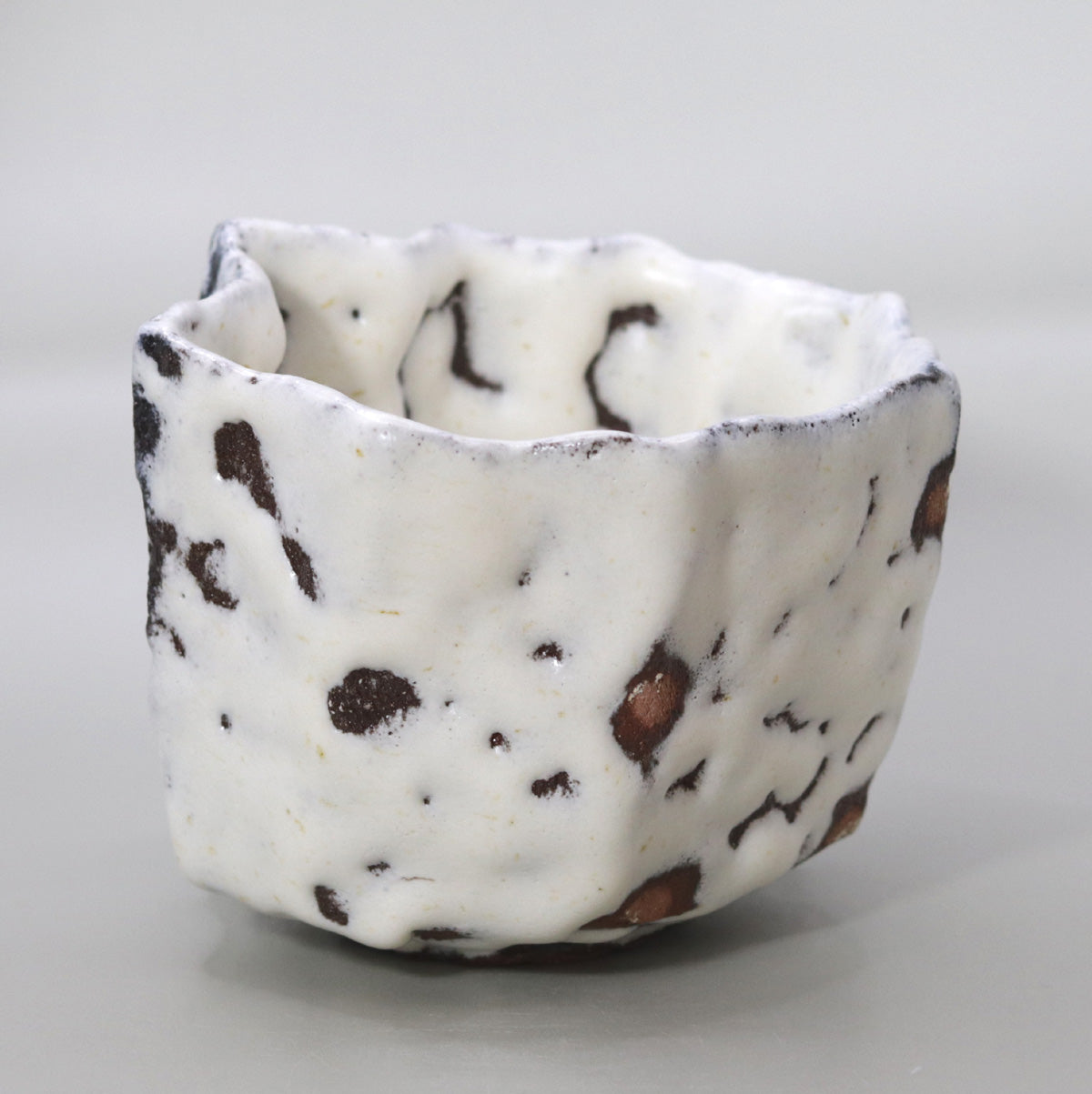 The straw white glaze covering this piece has a pure white texture that seems to capture the clear snowy scenery, while also bearing mottled patterns here and there caused by the iron contained in the straw ash. The contrast between black and white is tranquil, yet gives the surface a subtle shadow and a sense of warmth, drawing the viewer's attention. The fine crazing hidden in the glaze will deepen the expression of the piece as tea soaks into it over time.