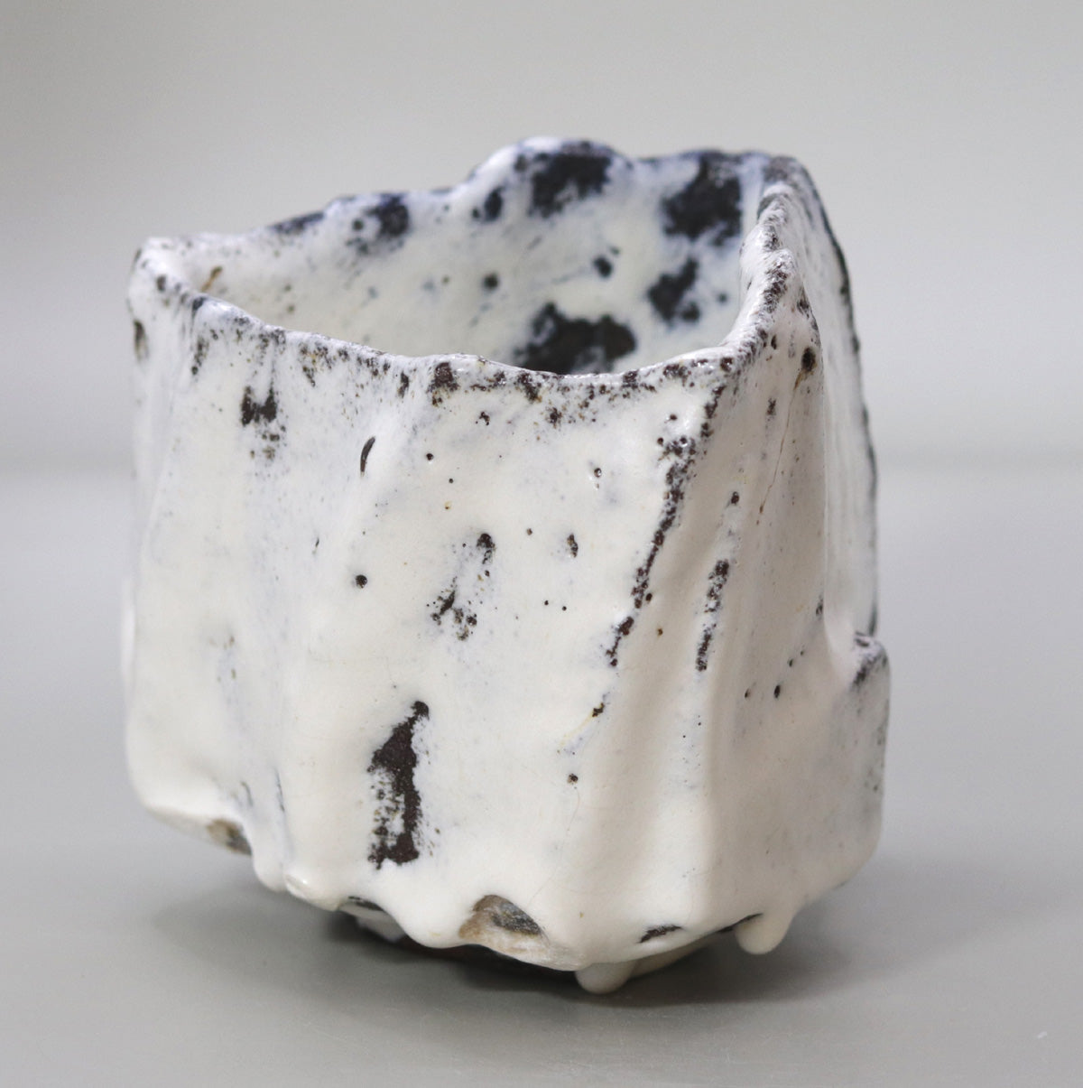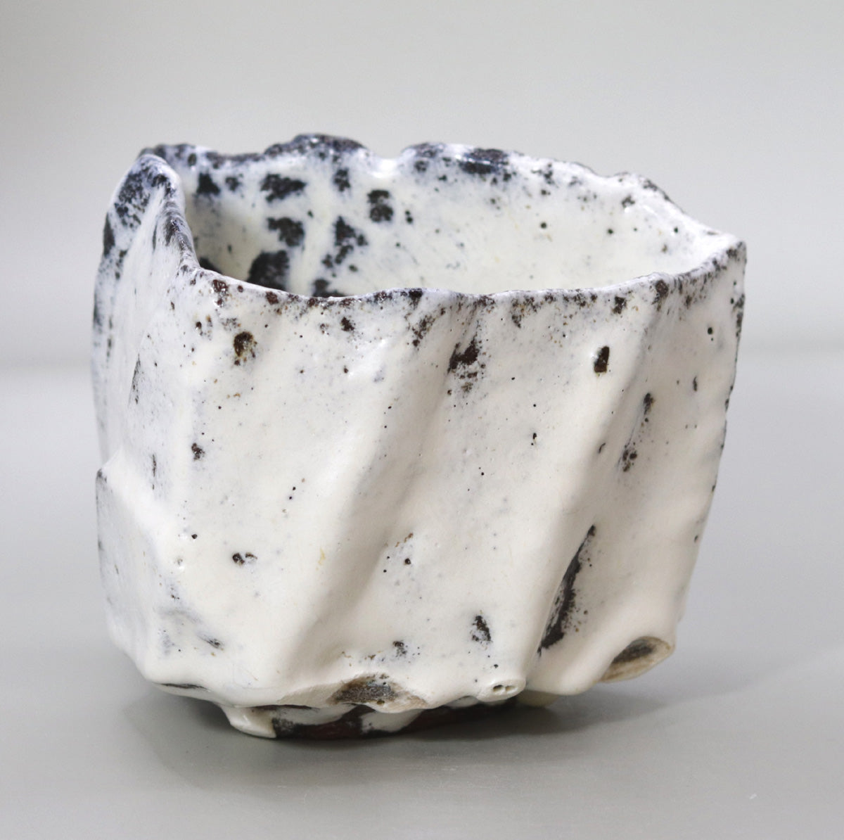 Based on the classic material of straw white glaze, the bold inclined folds in the form go beyond the traditions of Tamba ware and propose a new form of aesthetic beauty. The rich shadows hidden in the minimal color of white, and the natural patterns spun by the earth and fire - these elements resonate with each other in a layered way, elevating the tea bowl from a simple practical vessel to a sculptural work of art.