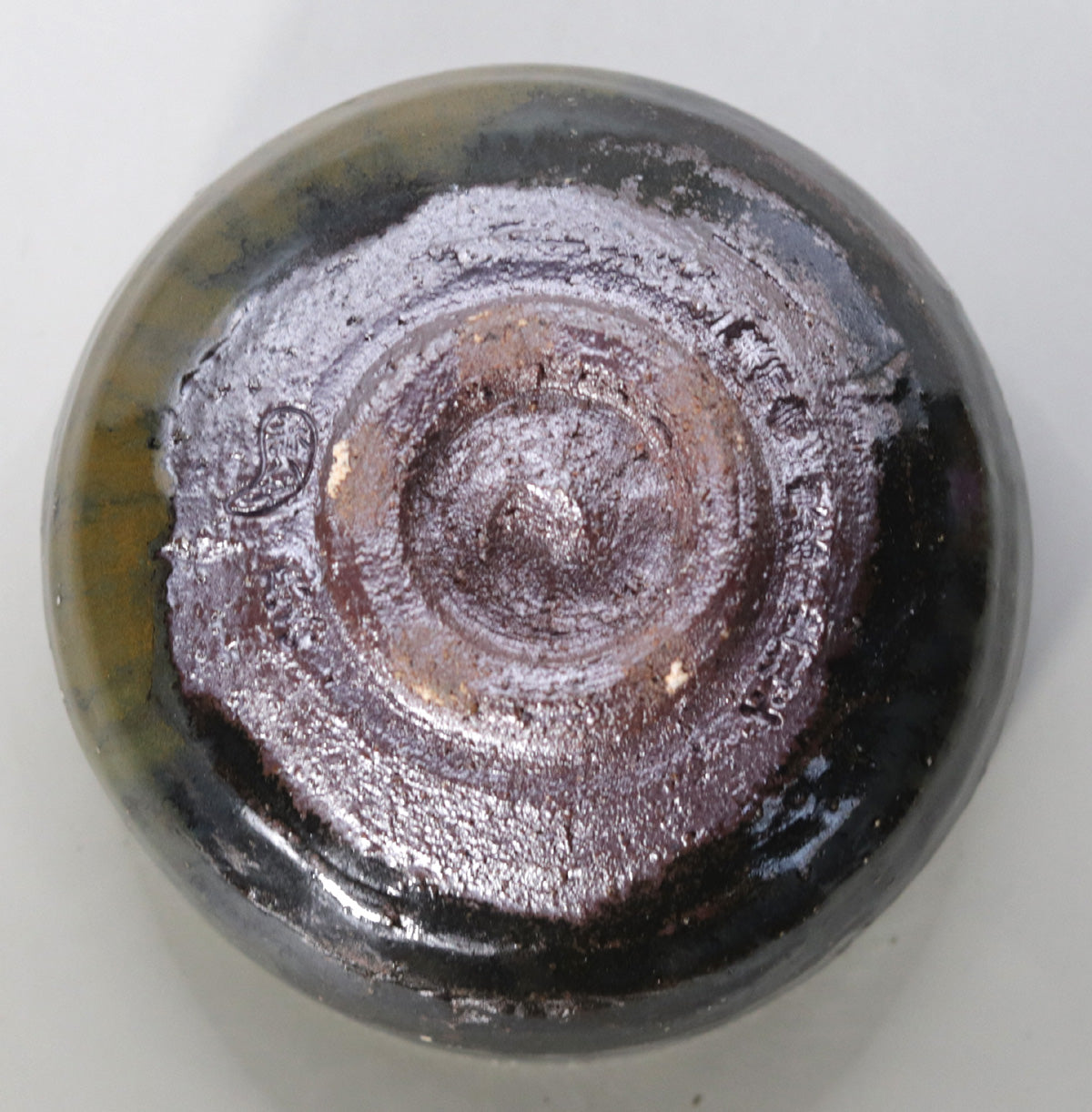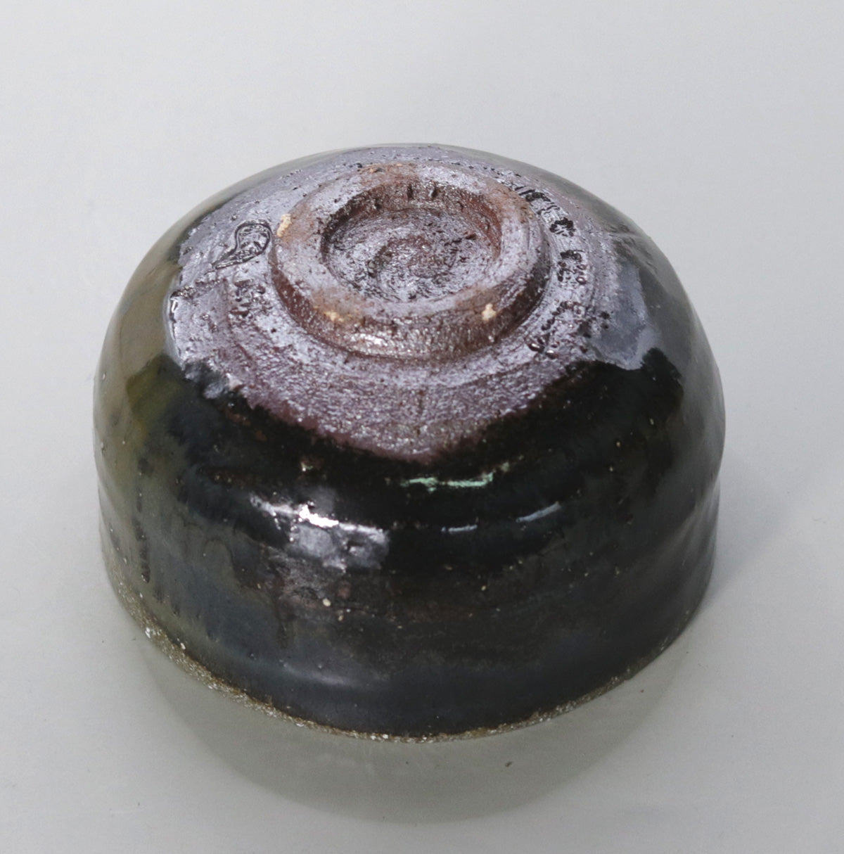 Iron-glazed tea bowl made from the base of the East Pagoda of Yakushiji Temple by Rakusai Bisai