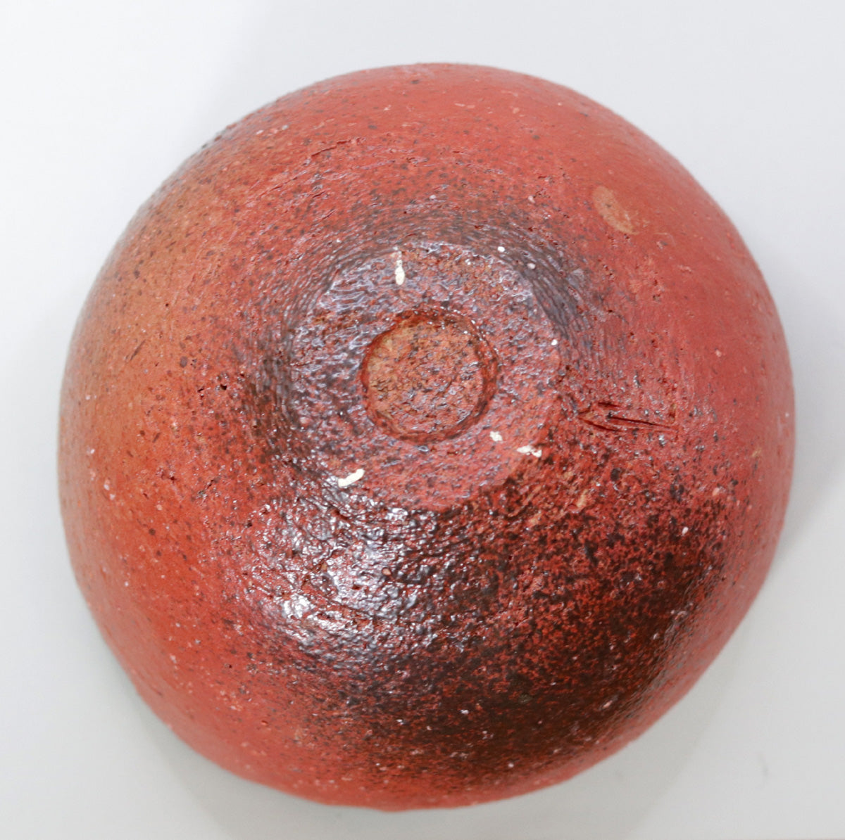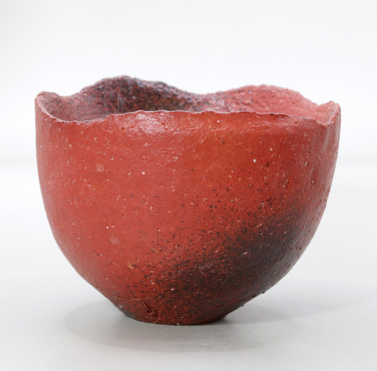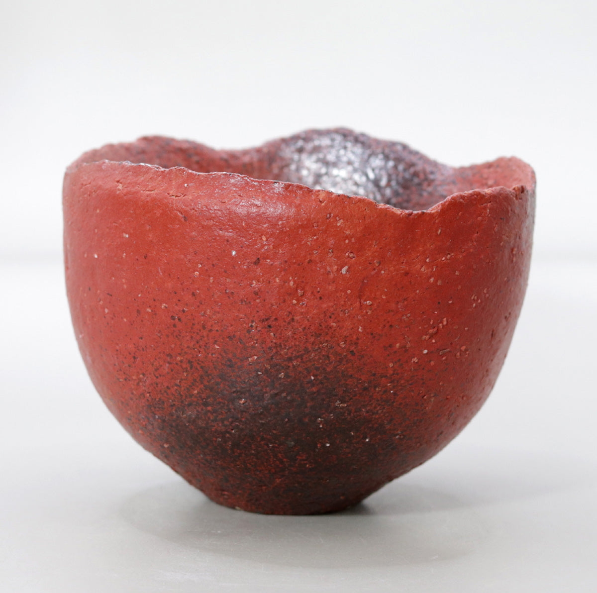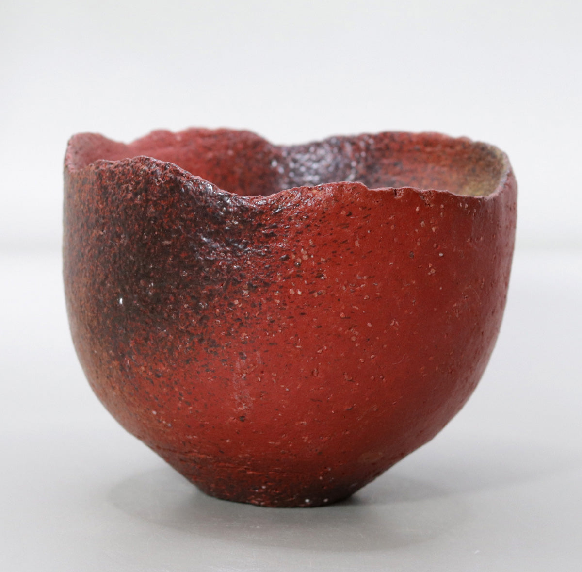 The matte scarlet exterior absorbs the oils from your hands over the years of use, gradually acquiring a moist luster. The remaining ink black from reduction turns softer and browner, and the semi-gloss of the interior mixes with tea stains and changes to a dull metallic shine. Because it has no crazing, the passage of time is slower, but its great charm is that it will quietly mature in harmony with the owner's lifestyle, growing into a one-of-a-kind landscape.