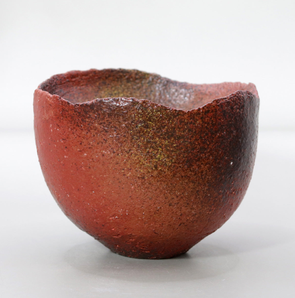 Tanba rough clay contains many feldspar particles and fine iron ore particles, and these particles are clearly visible even after firing. Fine iron specks and white quartz grains sparkle like stardust on the scarlet surface, and the shadows flicker depending on how the light hits it, creating a deep, three-dimensional effect despite the single color. When you pick it up, it has a rough texture, giving you the tangible feeling of touching "clay" with your fingertips.
