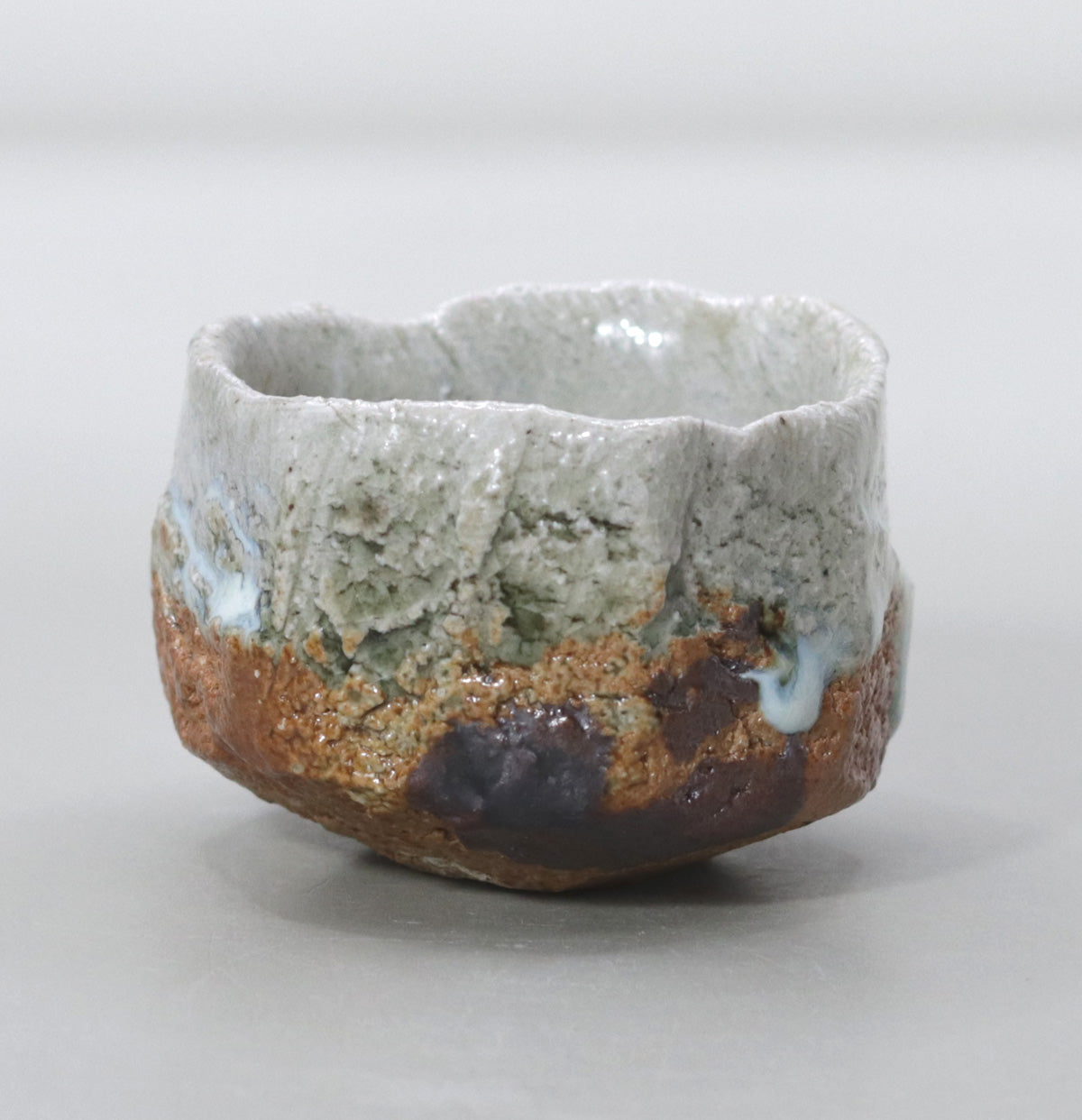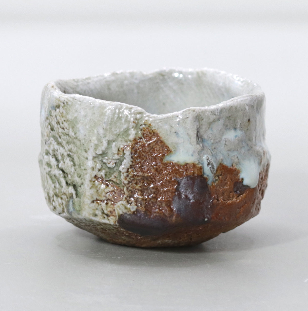 This sake cup was carefully fired by Nishibata in a wood-fired kiln, and the glaze scenery was born from a series of coincidences, such as the movement of the flames, the accumulation of ash, and the placement of the vessel. The greatest appeal of this vessel is the "controlled coincidence" that was derived from a certain sculptural ability and aesthetic sense, while restraining the deliberateness and entrusting to nature.