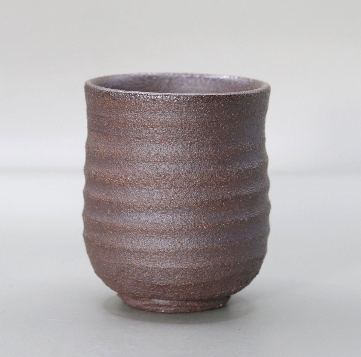 The roughness of the outer skin feels pleasant on the fingertips, the clay gently stores heat when hot green tea or roasted green tea is poured into it, and the iron surface gently maintains the temperature of the sake when cold sake is poured into it. The thinly sharpened rim feels light on the lips, delivering the aroma and flavor in a clean manner.