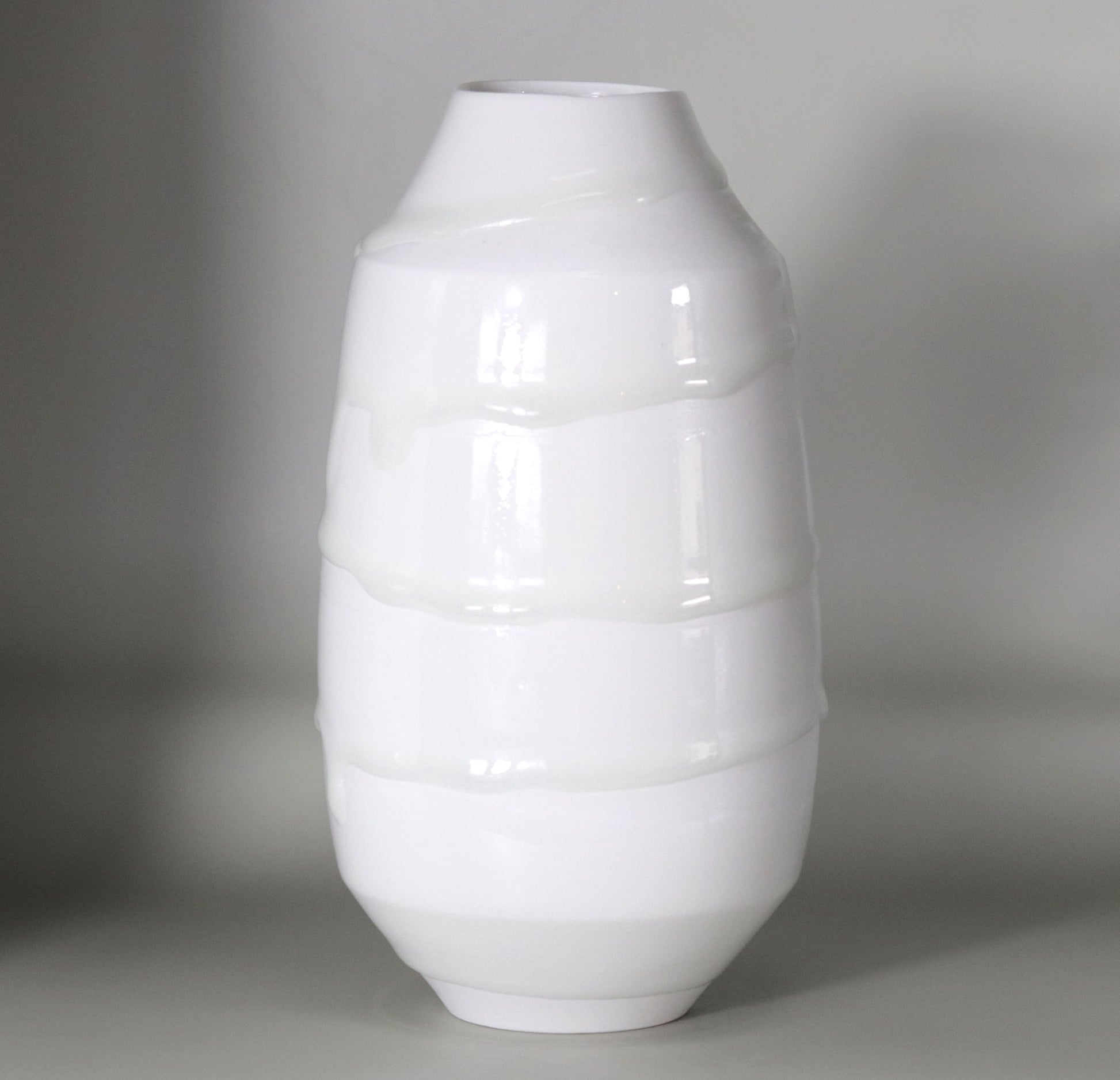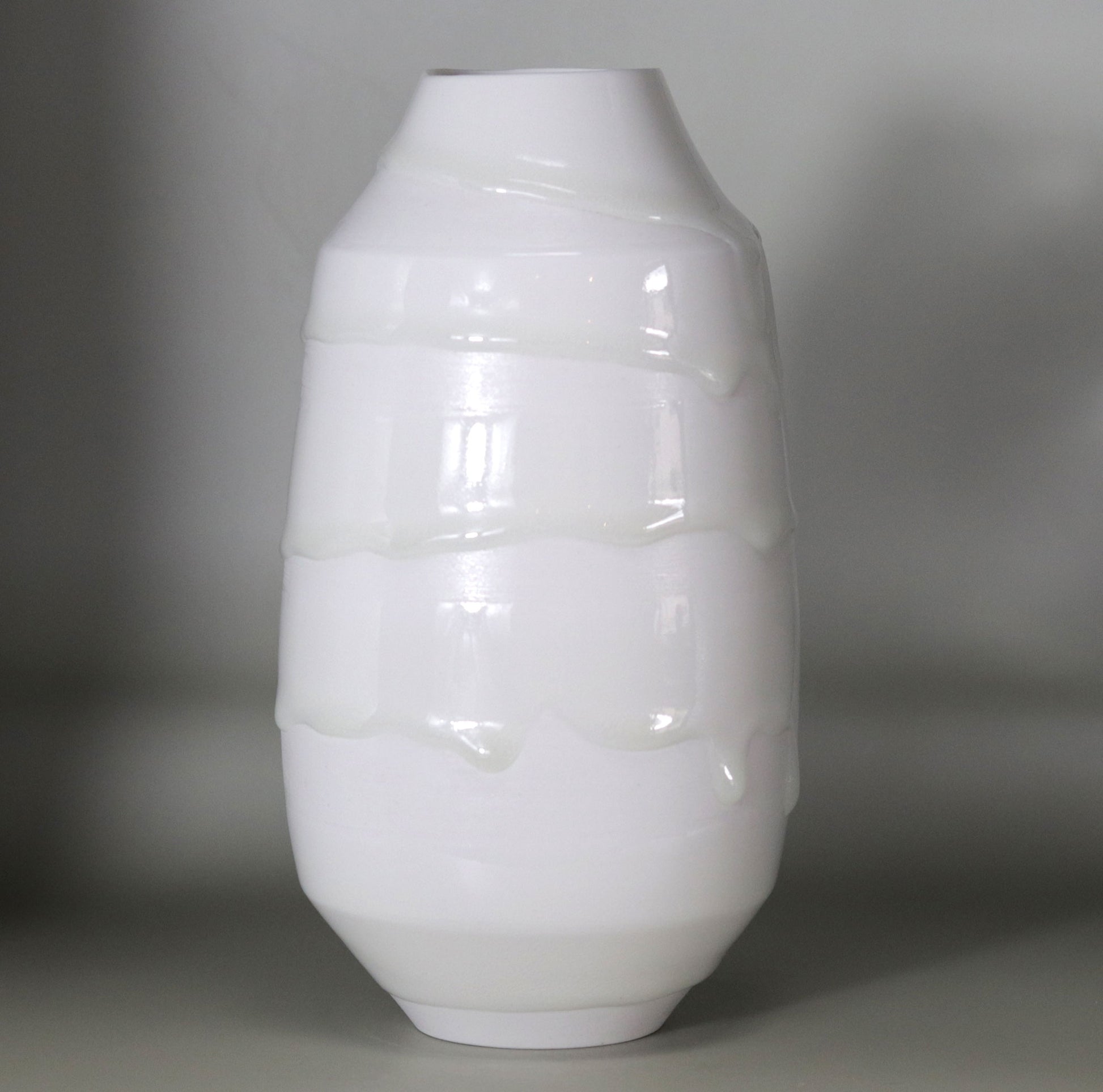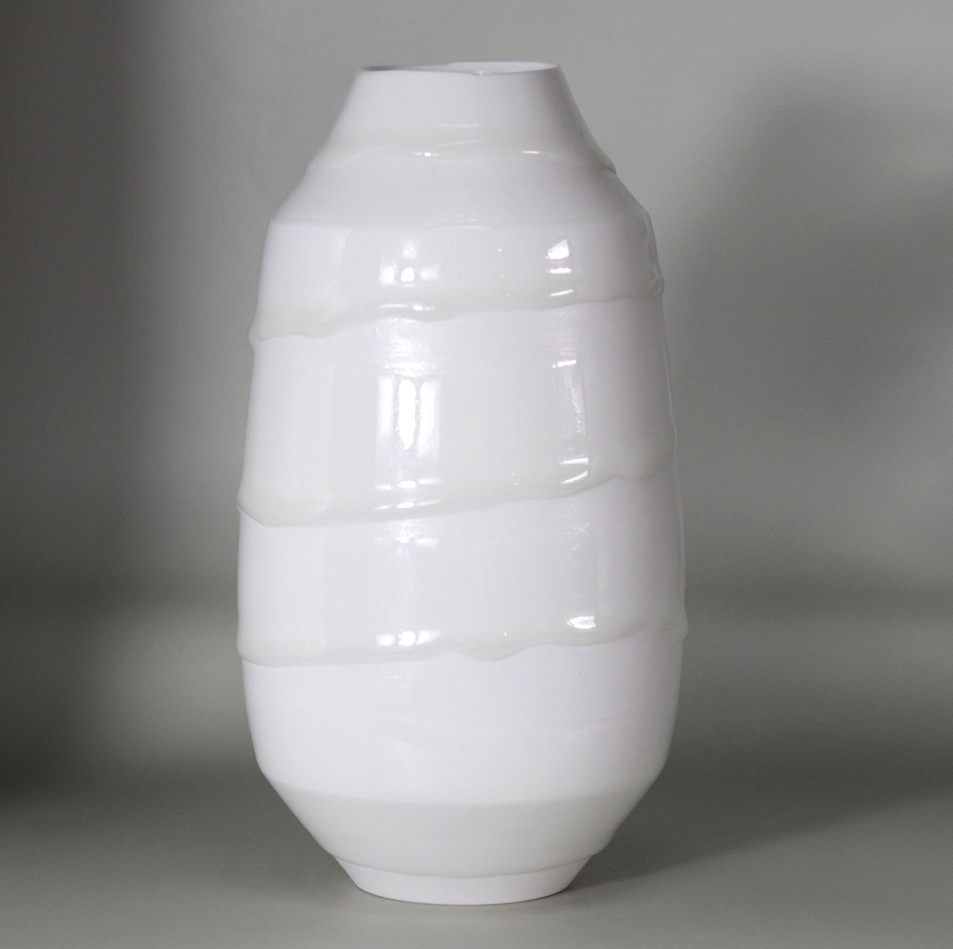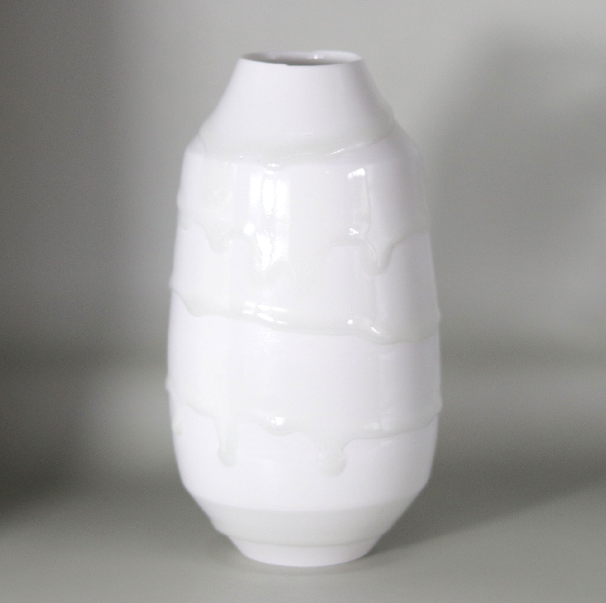 White porcelain vase with hanging ornaments by Kotaro Ikura