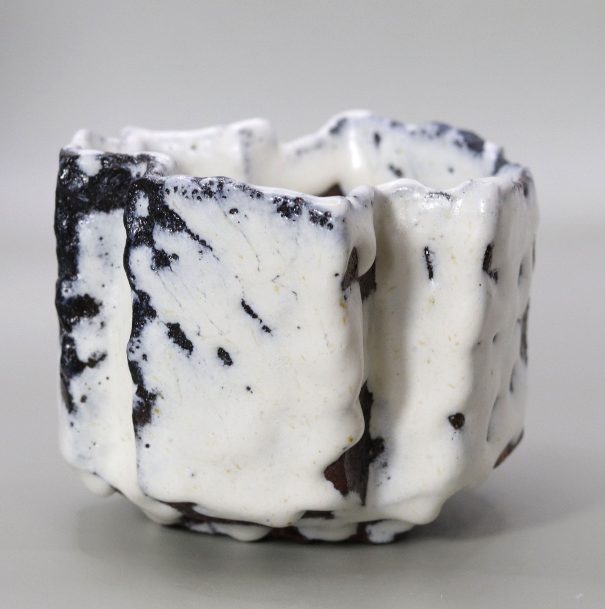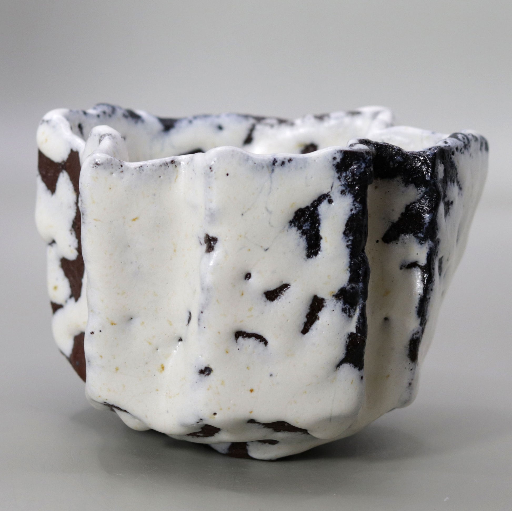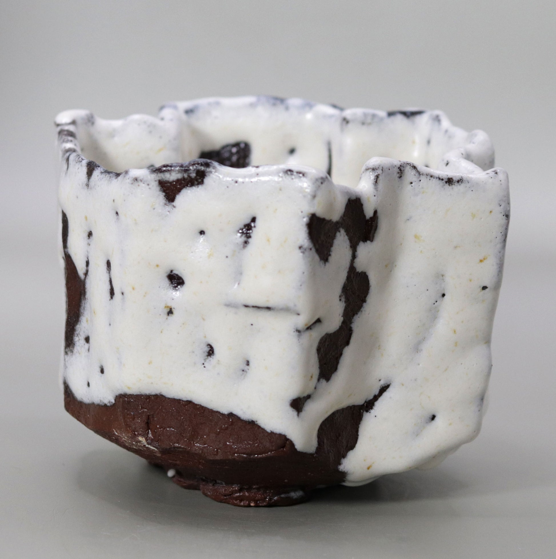 This tea bowl is a product of both Nishibata Tadashi's traditional techniques and innovative spirit. While faithfully adhering to the techniques that have been refined over the long history of Tamba ware, this piece also embodies his pursuit of new shapes and beauty that have never been seen before. In particular, the use of pure white glaze and the complex chamfered shapes could not have been achieved without ideas that are unconstrained by conventional frameworks and high technical ability, and in that respect, it presents new possibilities for Tamba ware.