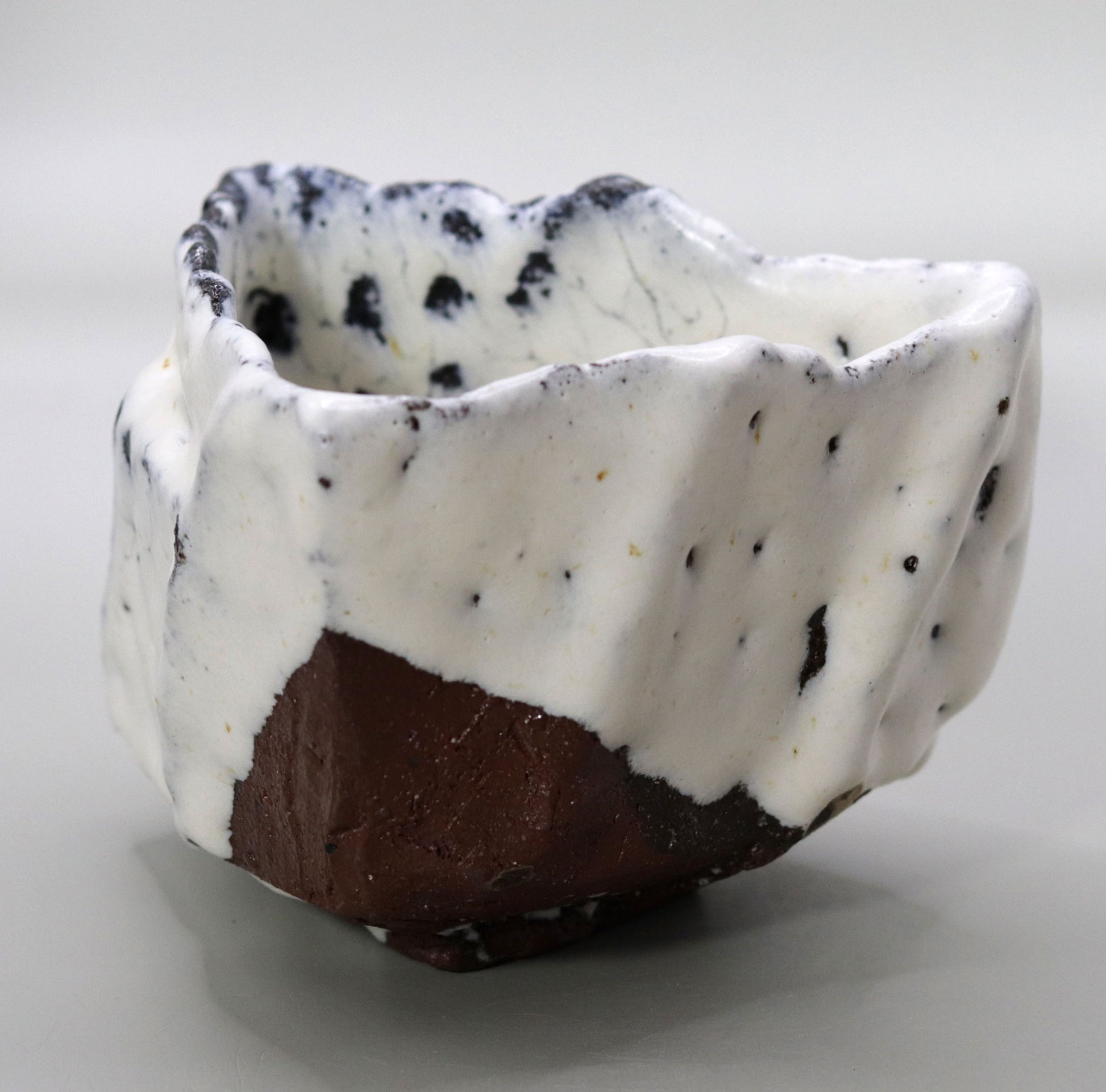 The triangular tea bowl is a work that embodies both Nishibata Tadashi's traditional techniques and innovative spirit. While faithfully adhering to the techniques that have been refined over the long history of Tamba ware, this piece also embodies his pursuit of new shapes and beauty that have never been seen before. In particular, the use of pure white glaze and the complex chamfered shape could only be achieved with ideas that are unconstrained by conventional frameworks and high technical ability, and in that respect it presents new possibilities for Tamba ware.