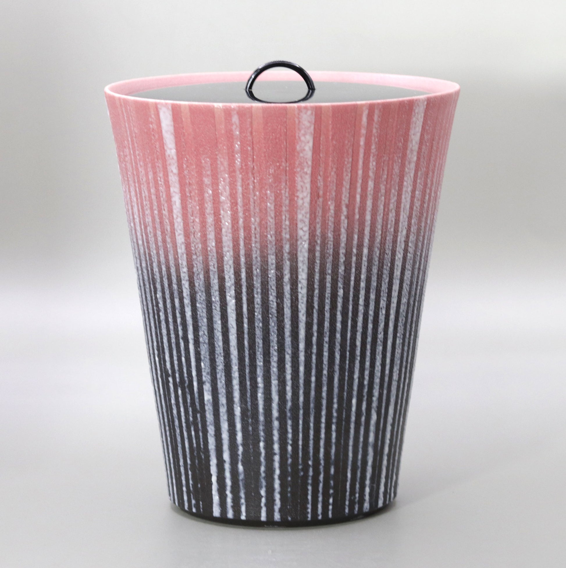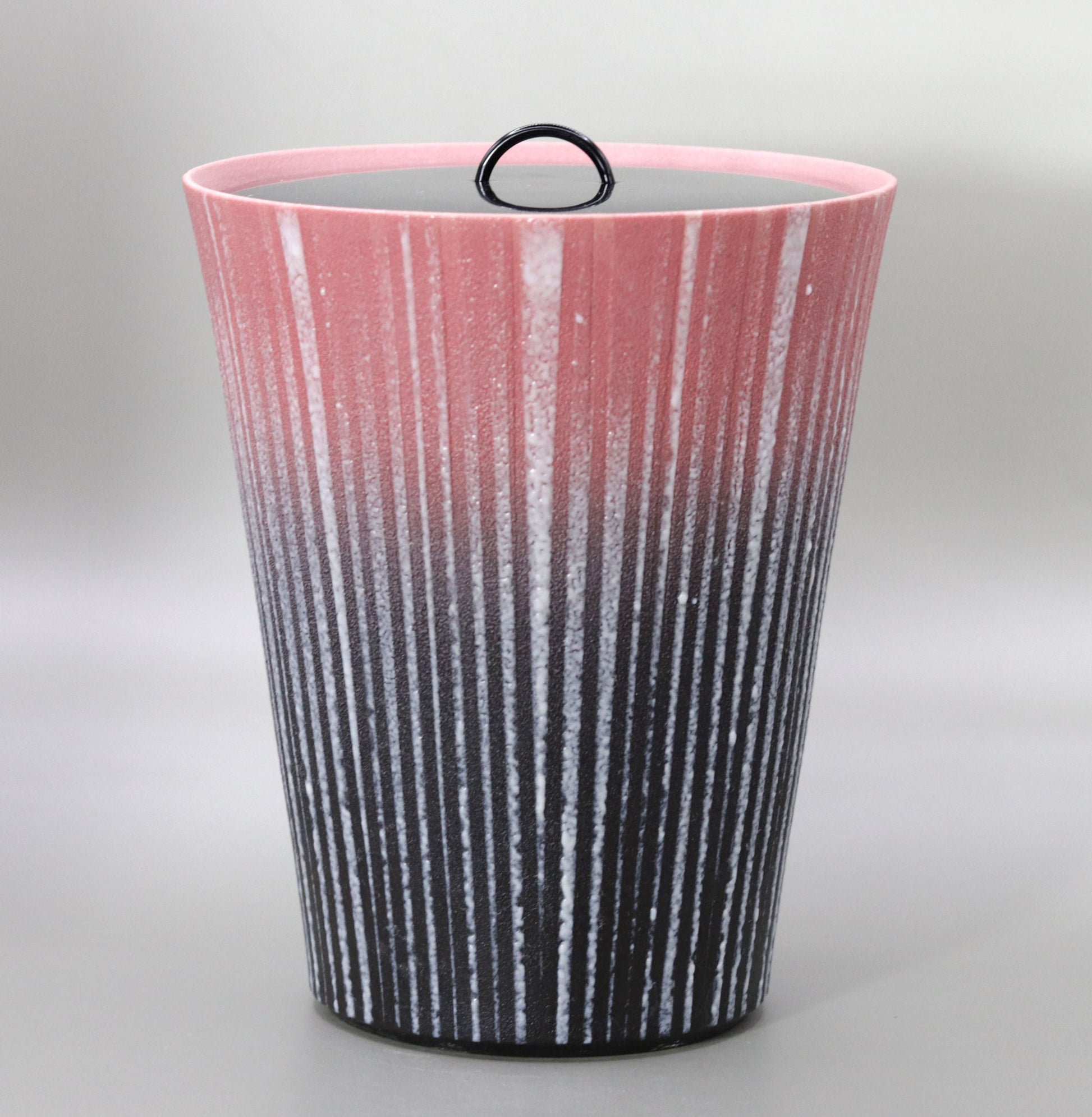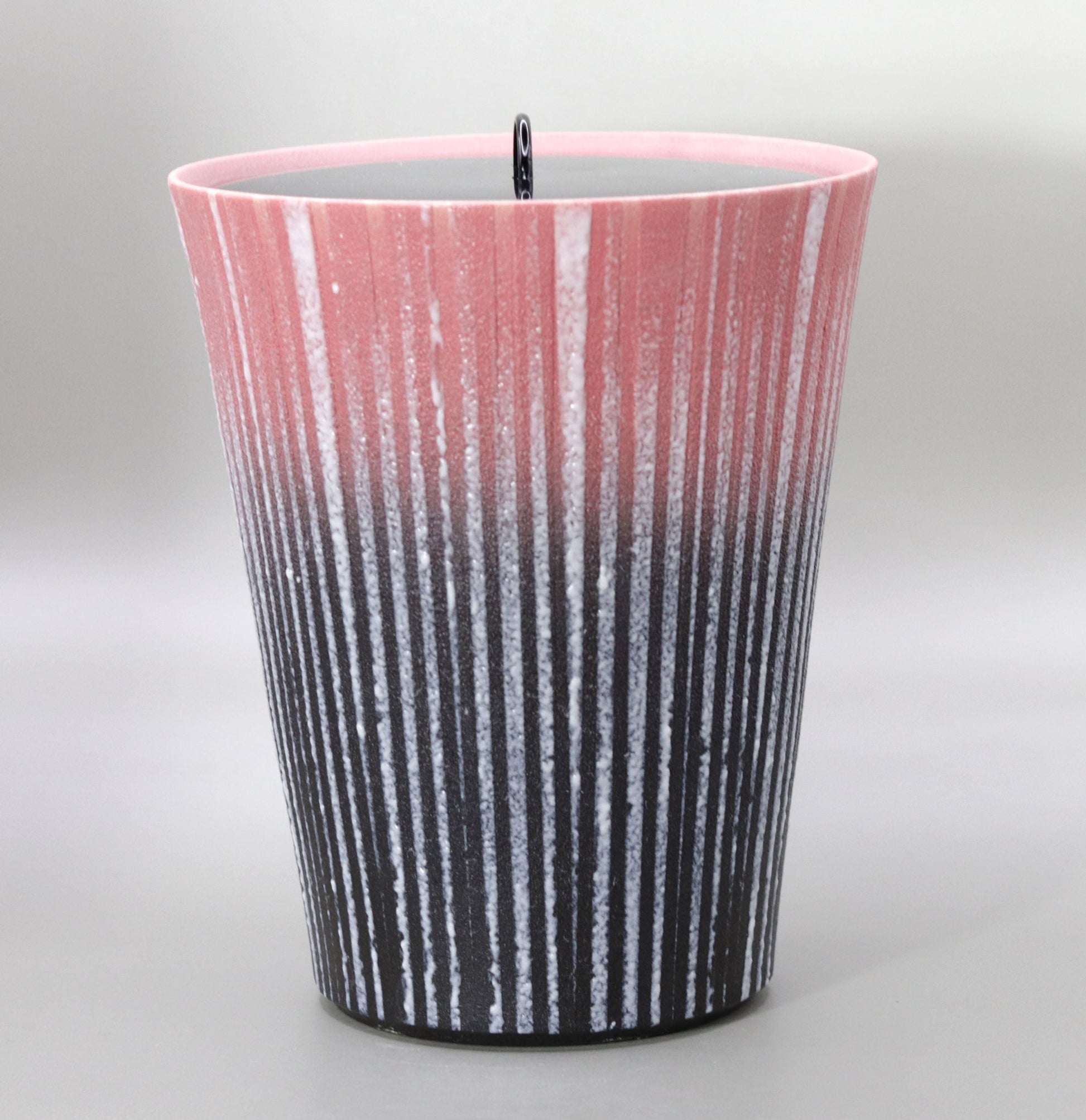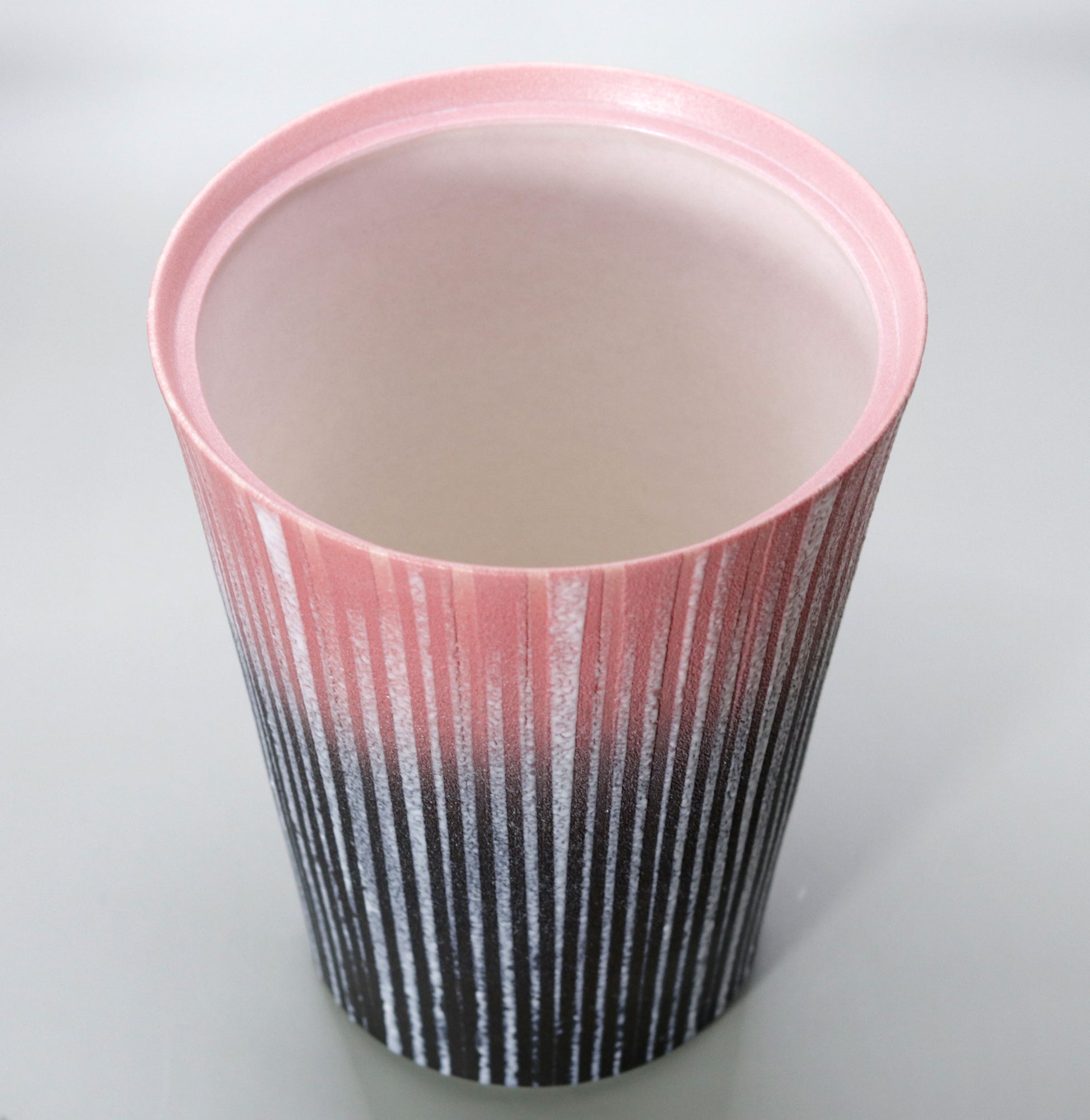 The Glazed Deisai series is a unique collection of works by Takemura Yotaro, who respects the traditions of Kiyomizu ware while incorporating a modern sensibility. In this series, the gradations that change from red to black are particularly striking, creating delicate color changes on the surface of the pottery. To achieve this, Takemura Yotaro uses a technique of spraying the glaze with an air spray . The subtle overlapping of the sprayed glaze leaves a vivid impression on the viewer, and the bold use of colors reminiscent of pop art or graffiti gives a sense of freshness.