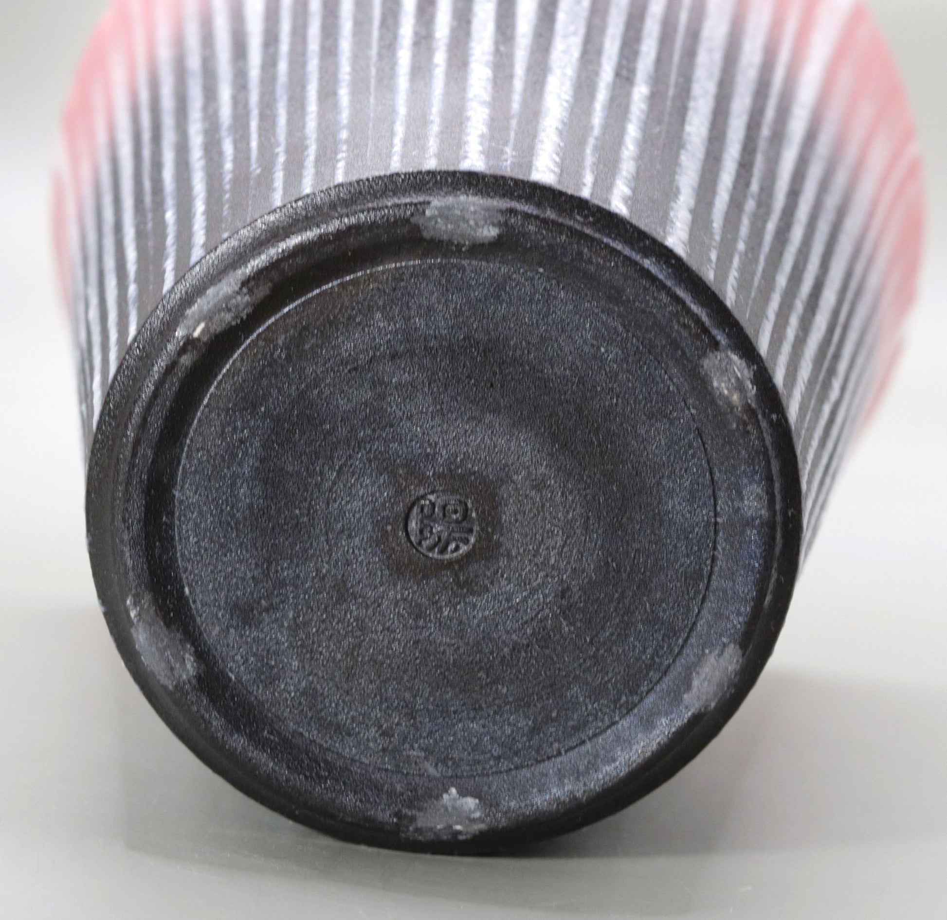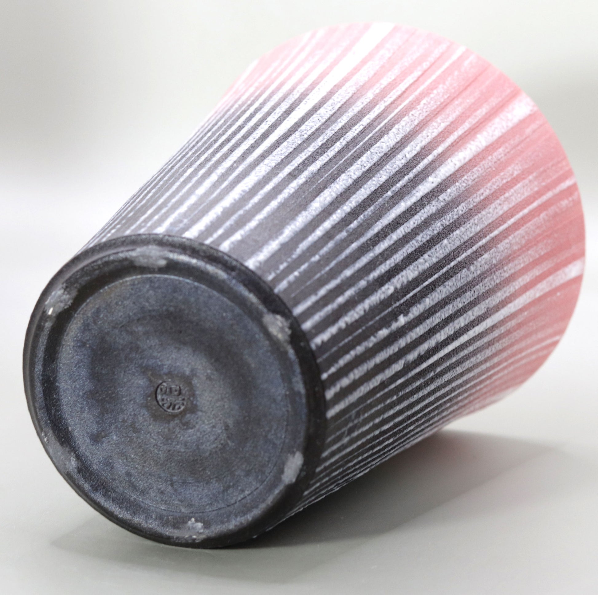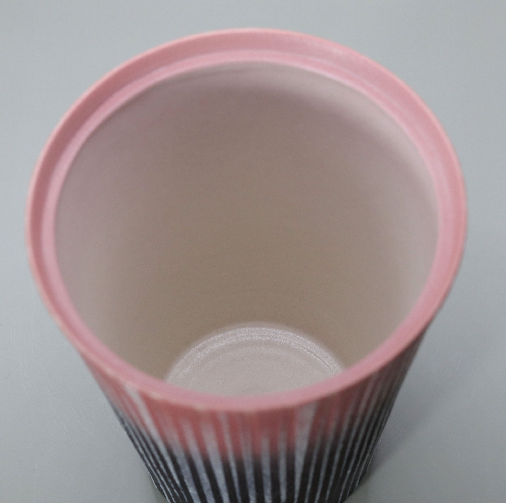 He makes his own tools to match the shape of the vessel, and does not compromise on his work. The glazes he uses are also his own mixture, and his work is characterized by his unique expression using glazes made from compounds rather than plant ash . In particular, the Glazed Muddy Color series uses bold colors such as vivid coral red, black, and cerulean blue, and the striped patterns and rough texture are created by spraying the glaze.