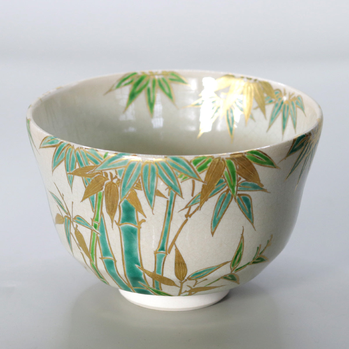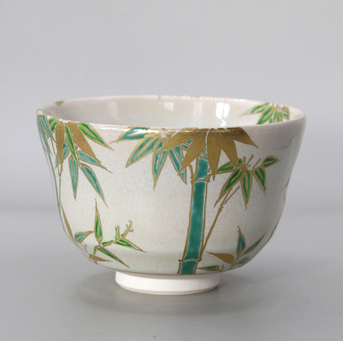 Looks great with matcha <br data-start="857" data-end="860">Young bamboo is subtly painted on the inside as well, with the bamboo leaves casting shadows on the matcha surface. The greens blend together, giving your cup of tea the feeling of being imbued with the breath of the forest.
