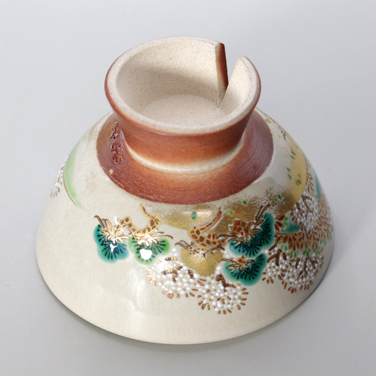 Three-sided split foot reminiscent of Goki style <br data-start="248" data-end="251">The foot is cut on three sides in a "sakeashi" style, giving a modern refinement to the Goki style originating from Korean rice bowls. It has a good grip and creates a sense of stability when handling it during the tea ceremony.