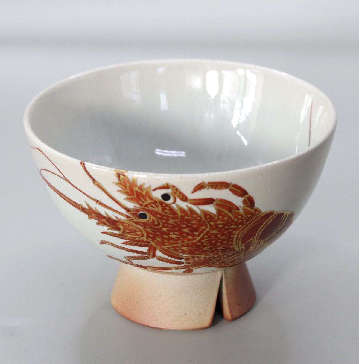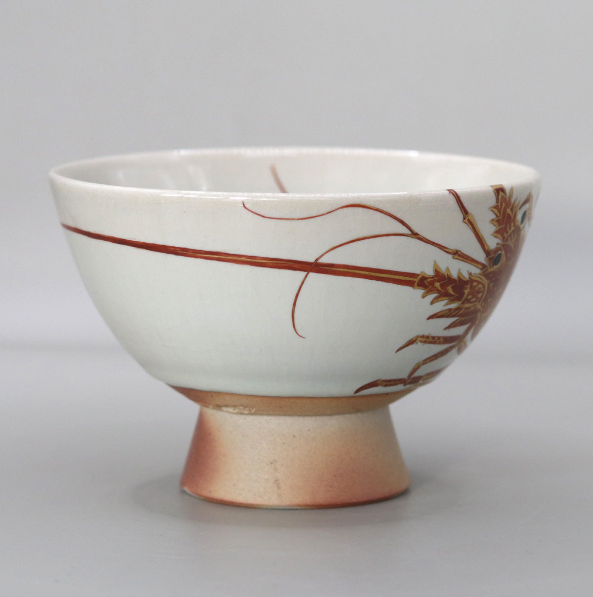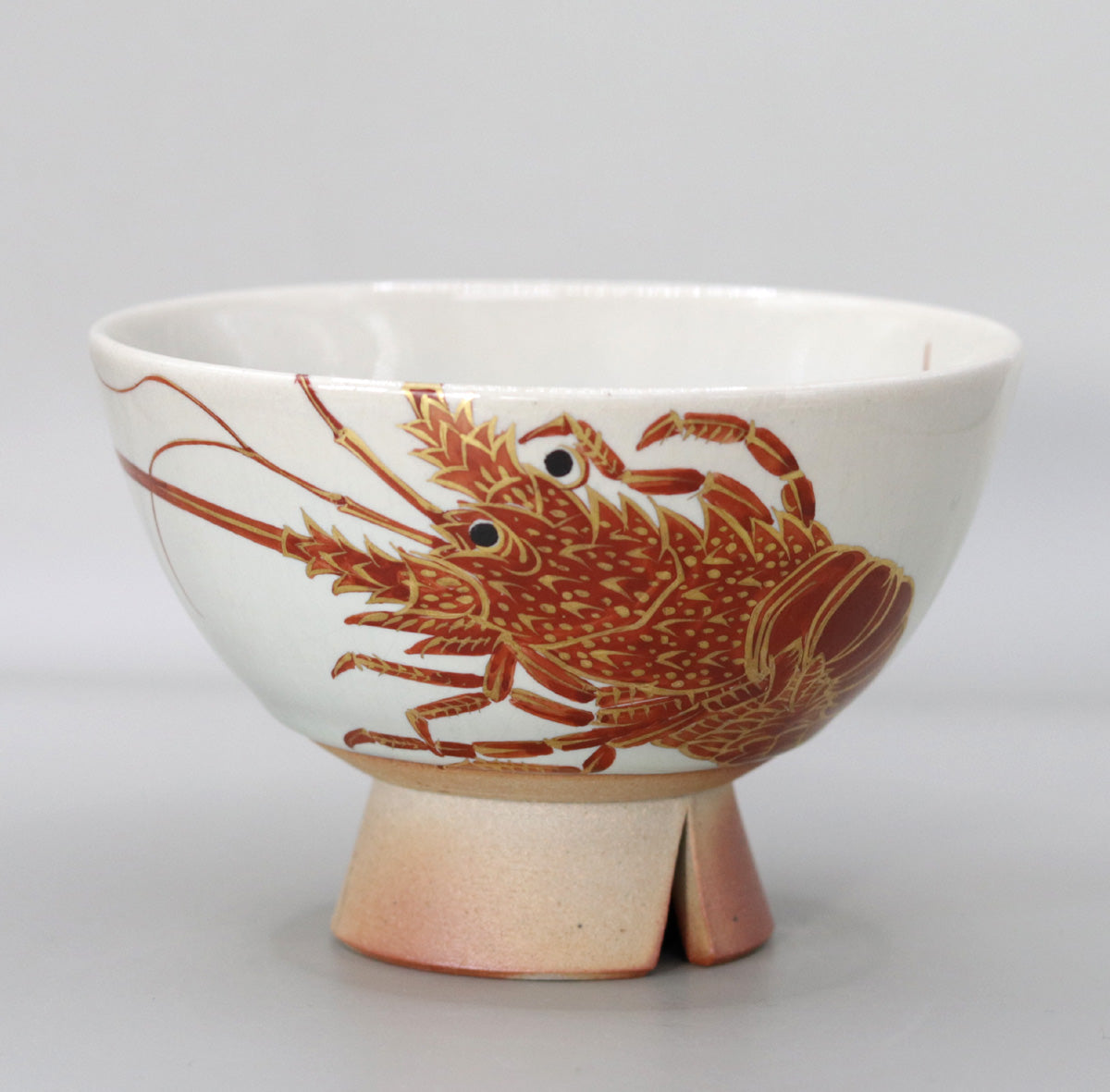 A spiny lobster swimming vigorously in the pure white ocean - its gorgeous red and gold color succinctly expresses the celebratory spirit of wishing for longevity and prosperity. When placed at a tea ceremony, the pulse of celebration will resonate within the bowl, and conversations with guests will naturally become filled with joy and celebration. Onishi Rakusai's lobster tea bowl is an exceptional piece suitable for special occasions, combining auspiciousness and dynamism, the "beauty of utility" and the "beauty of storytelling."