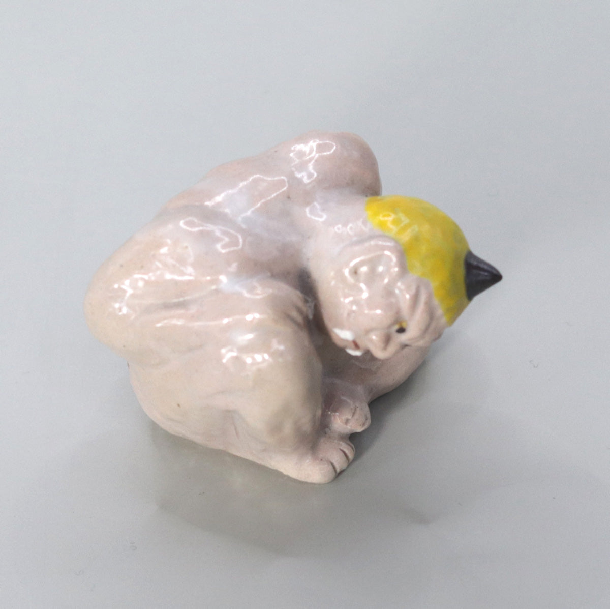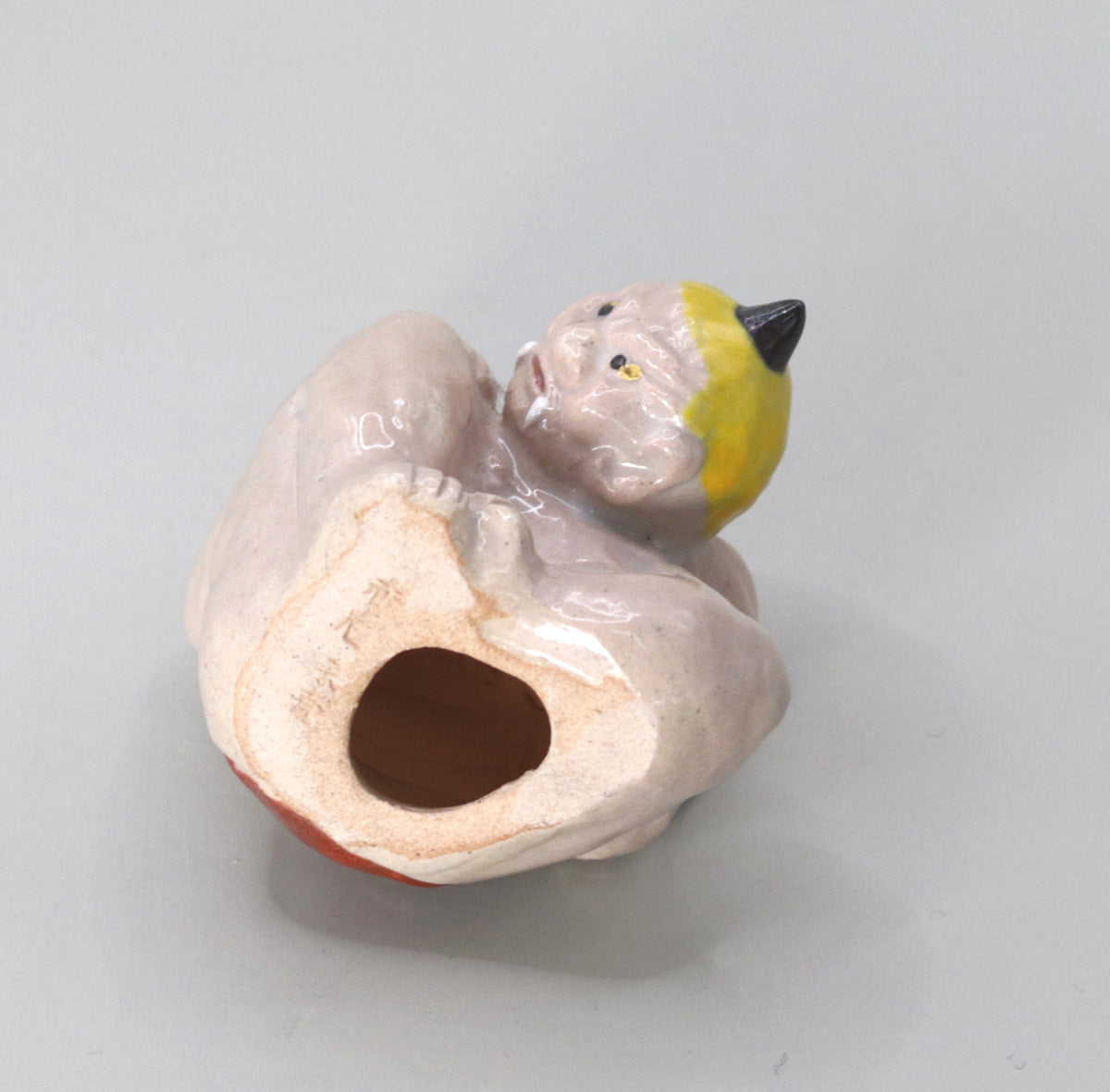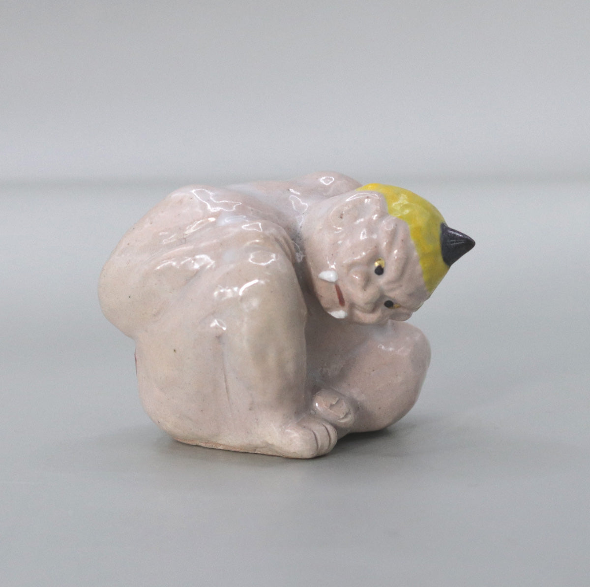 Pale peach glaze and lustrous overglaze <br data-end="464" data-start="461">The pale peach glaze that covers the entire piece takes on a soft luster after reduction firing, and faintly suggests the texture of a demon's skin.