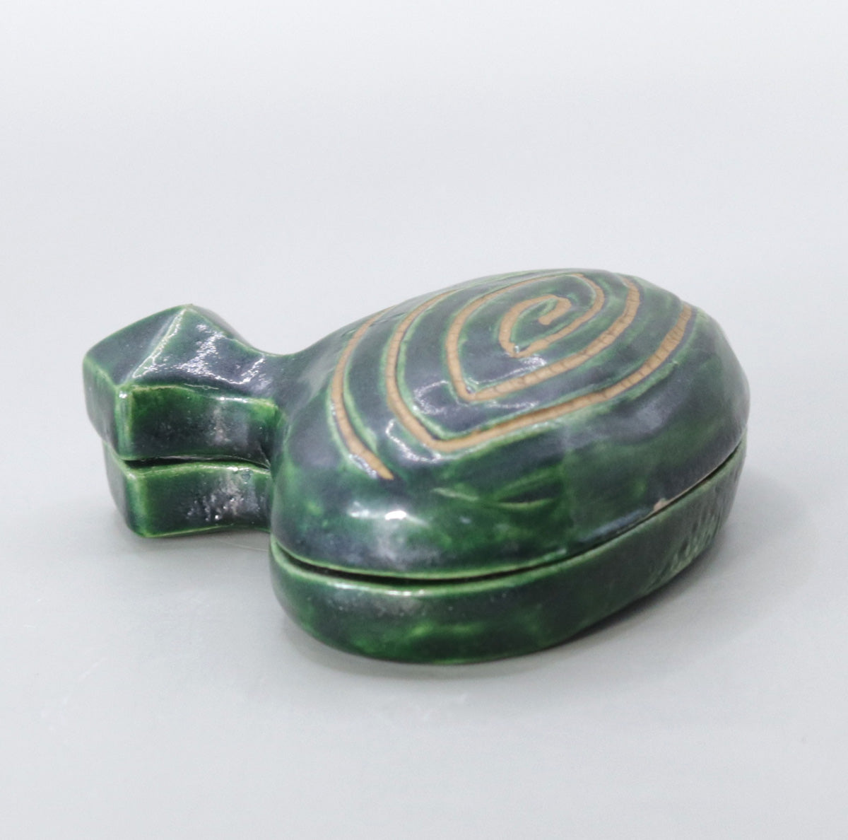 First, the disk -shaped body is stretched on a potter's wheel, and when it is half-dry, it is hand-twisted to carve the spiral pattern. The lid body is made malleable and then separated, and the mating surfaces are ground together to ensure precision that it can be opened and closed effortlessly.