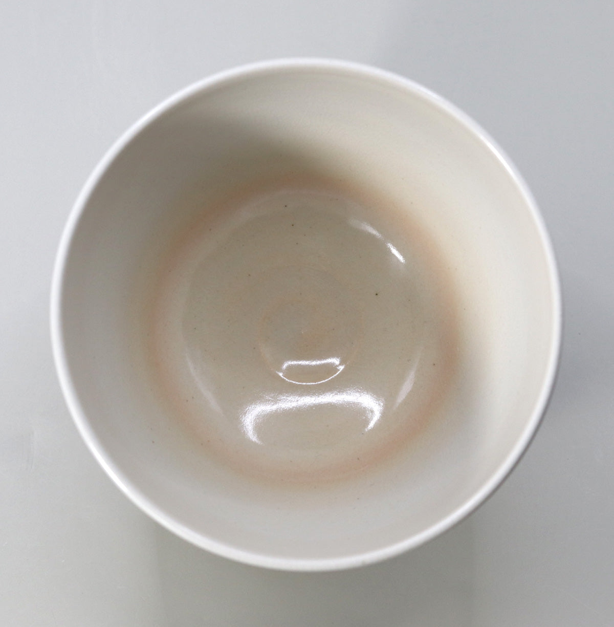 The ash glaze applied to the clay body has a soft milky white color with fine crazing, and depending on the angle of the light, it has delicate shadows. You can fully enjoy the pleasure of this piece as a "growing vessel" as the tea seeps into it and its appearance deepens over the years of use. The glaze is applied thinly from the edge of the base to the bottom, and the faint beige gradation created by the fire change during firing adds warmth.