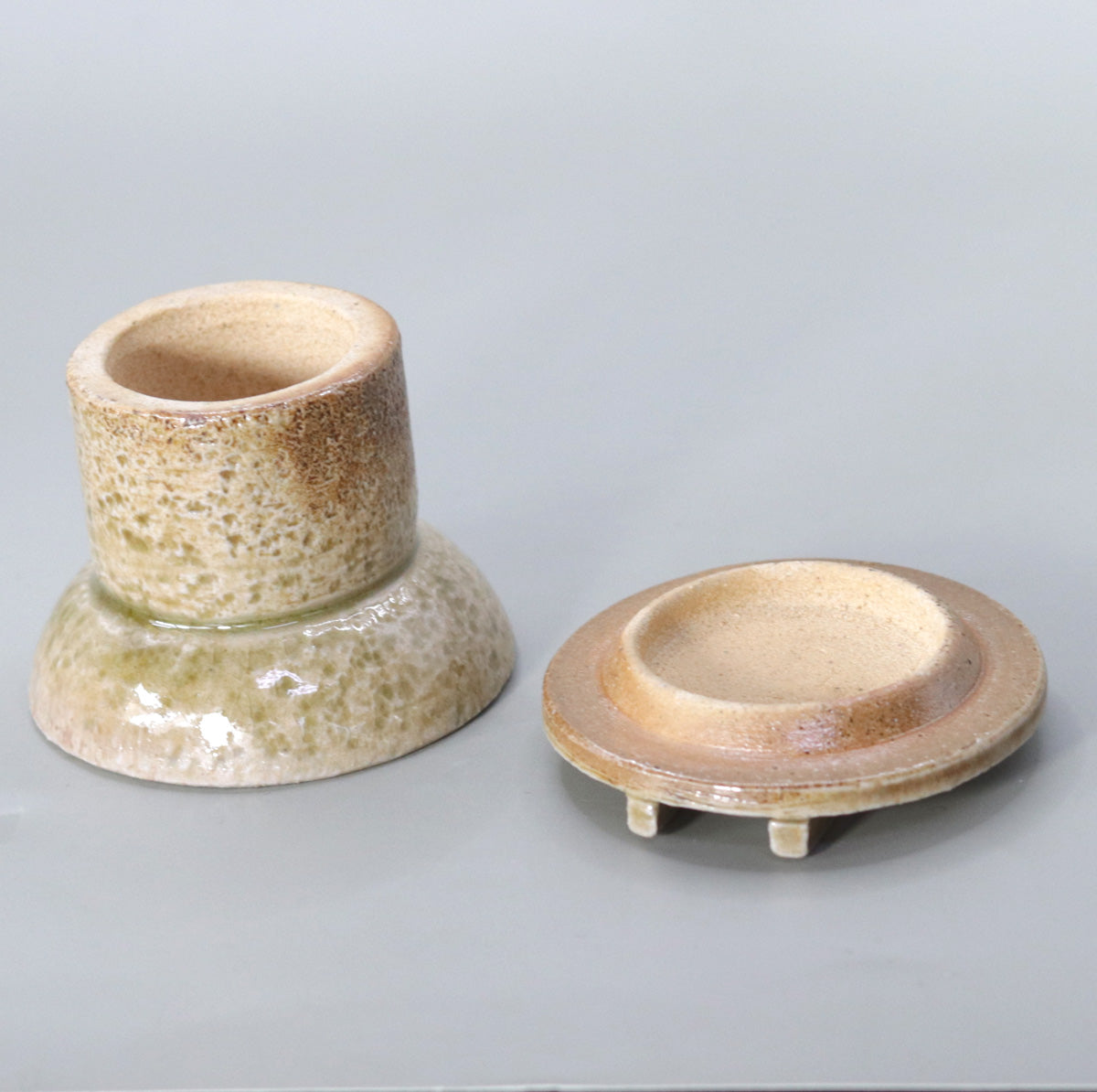 The iron contained in the clay gives the glaze a faint reddish hue, and combined with the rough texture of the stone powder, it expresses the wabi-sabi charm of a well-used mill.
