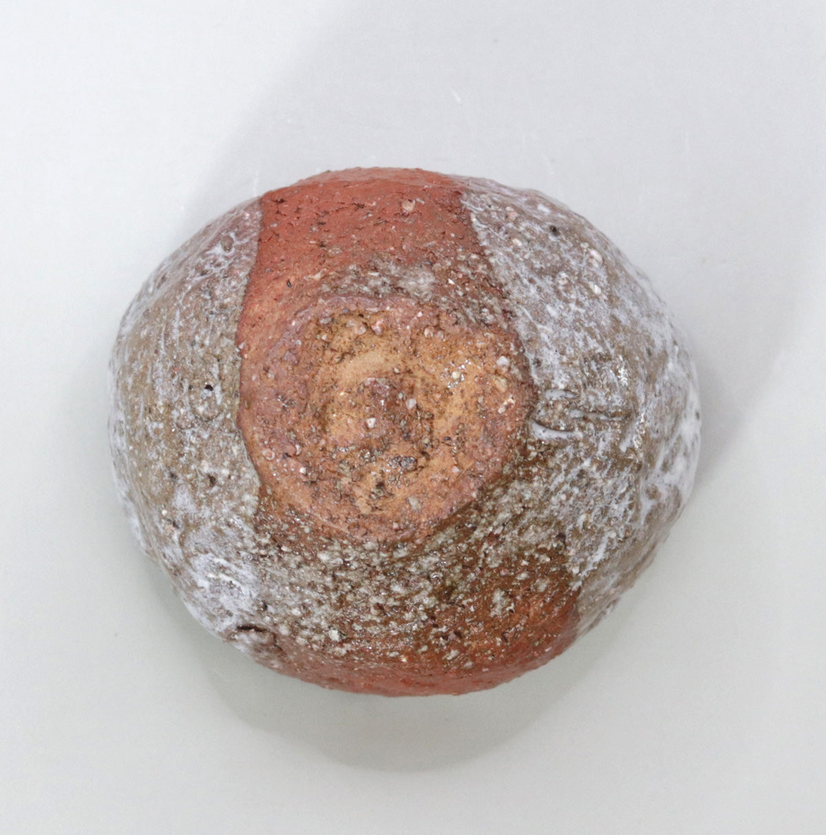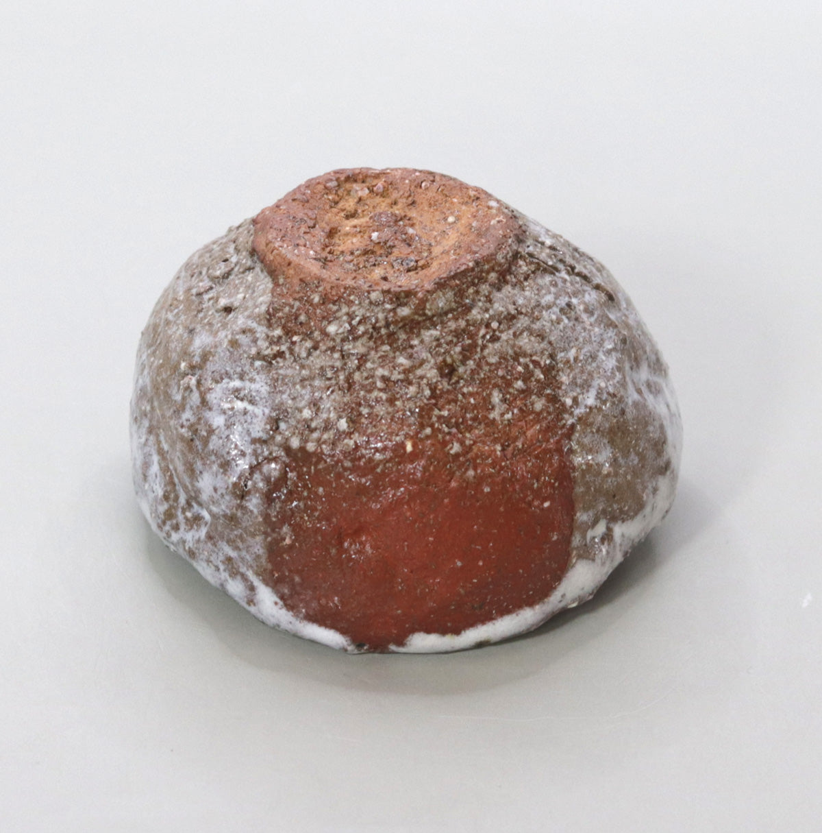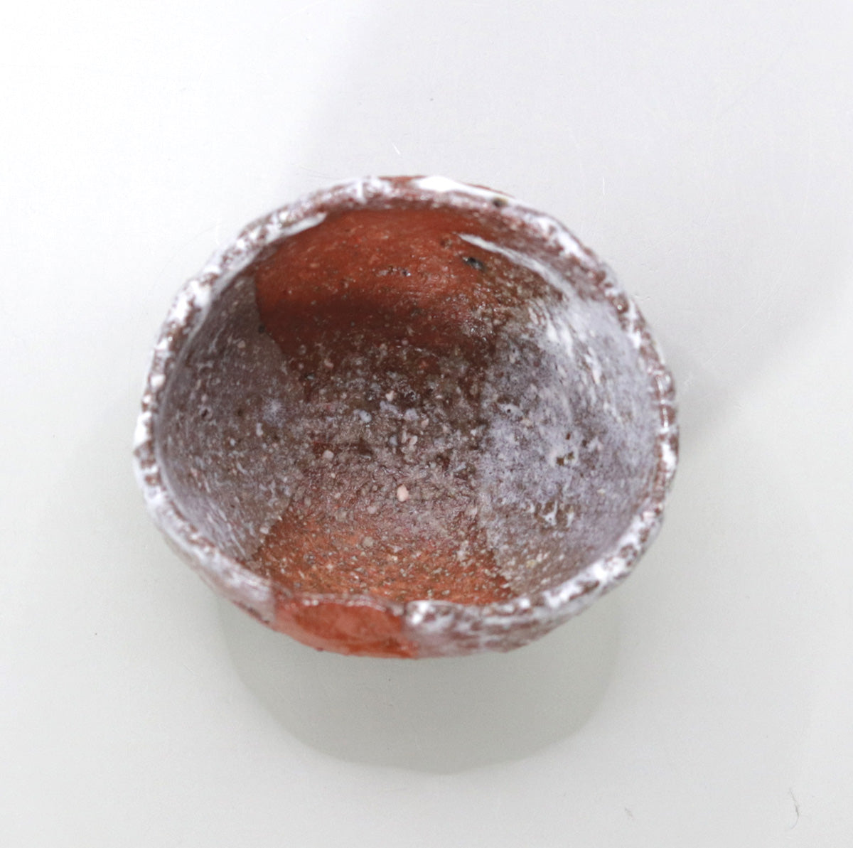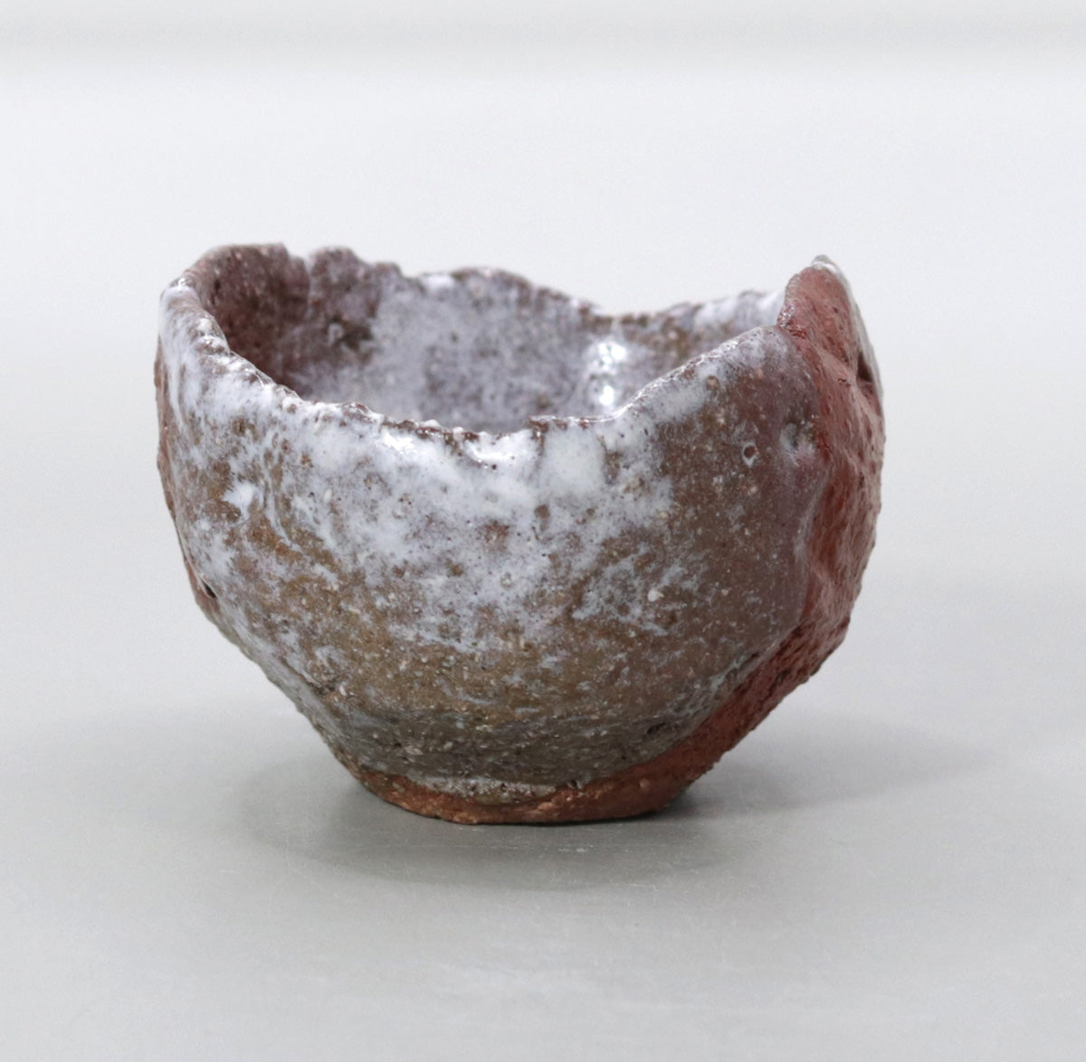 The white glaze applied to the top of the red clay flows naturally, crystallizing as it settles on the surface of the vessel, creating a sense of tranquility as if the peaks were covered in mist or snow. The graininess of the glaze and the sparkle of the surface change subtly depending on the amount of light, revealing a new landscape every time you look at it. The dramatic contrast between red and white creates the feel of a landscape painting in the palm of your hand.