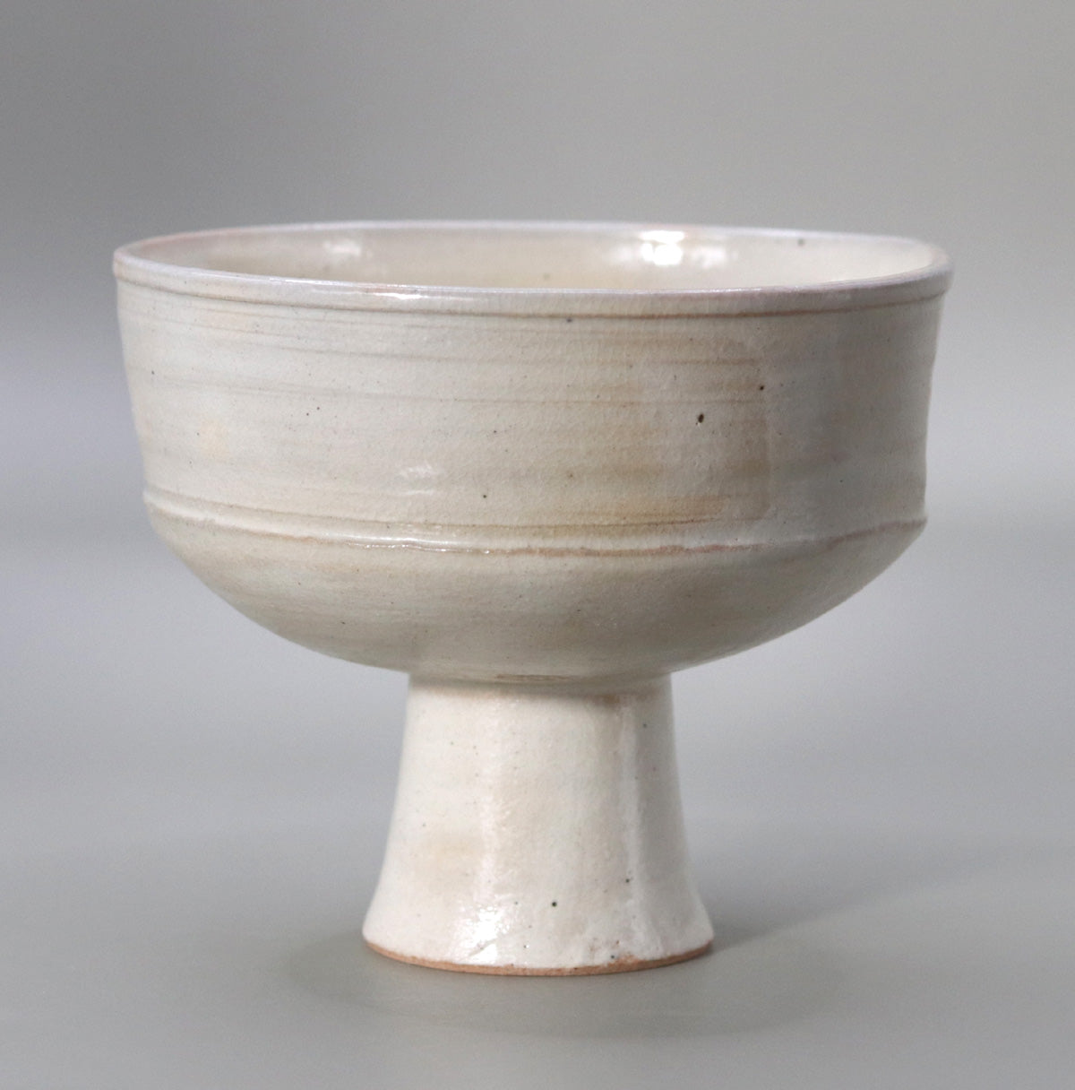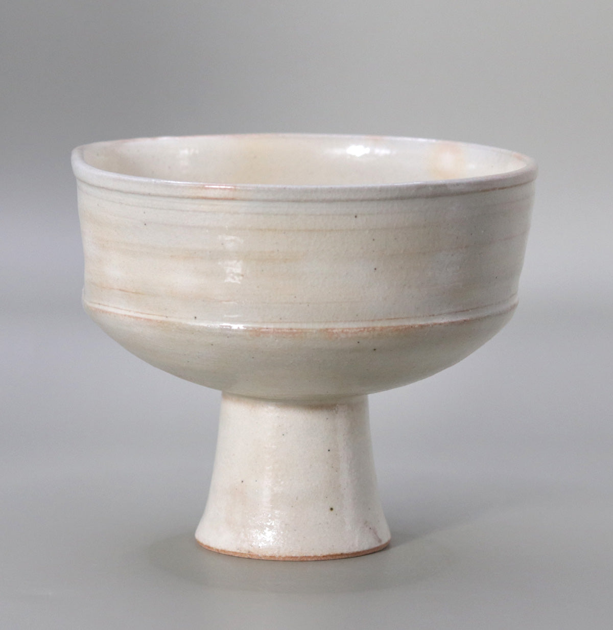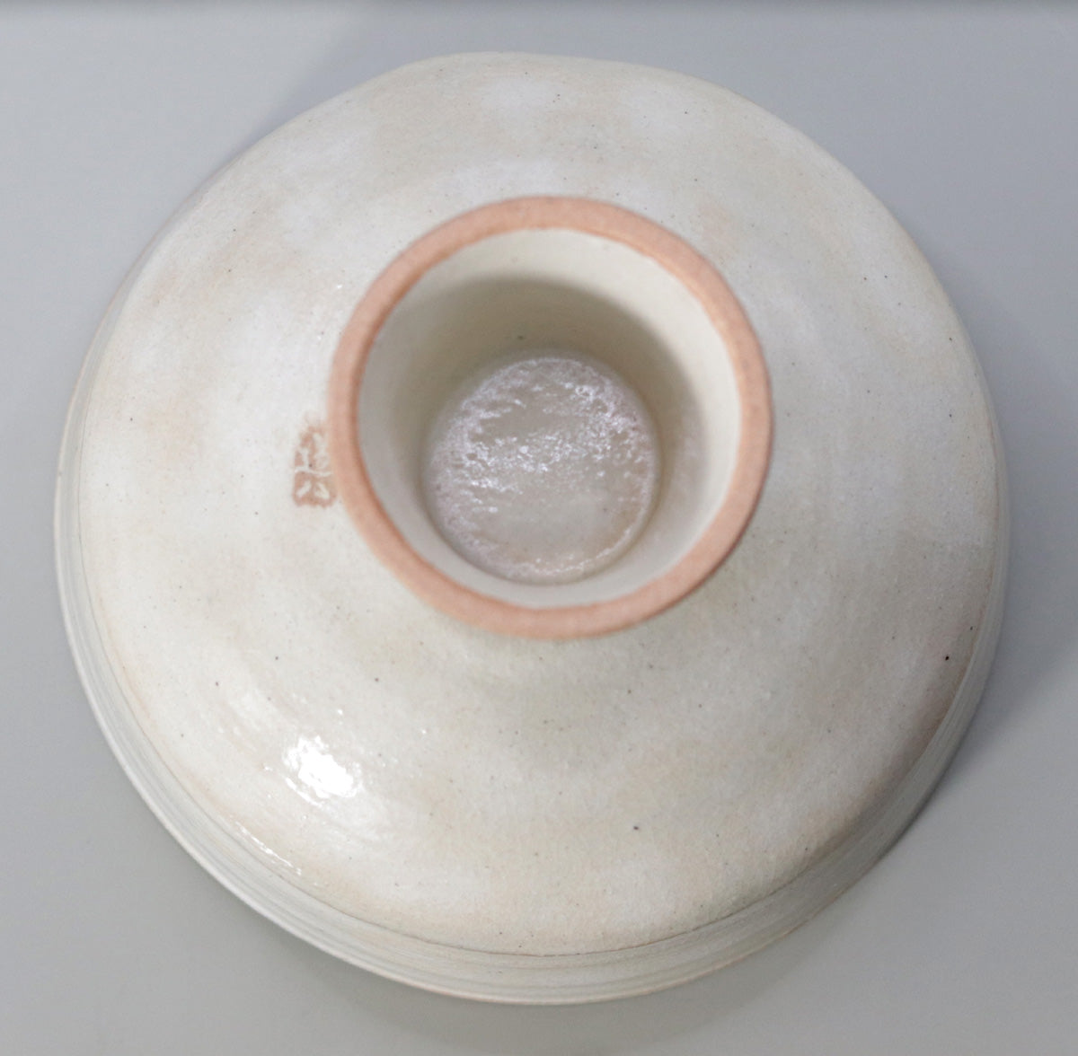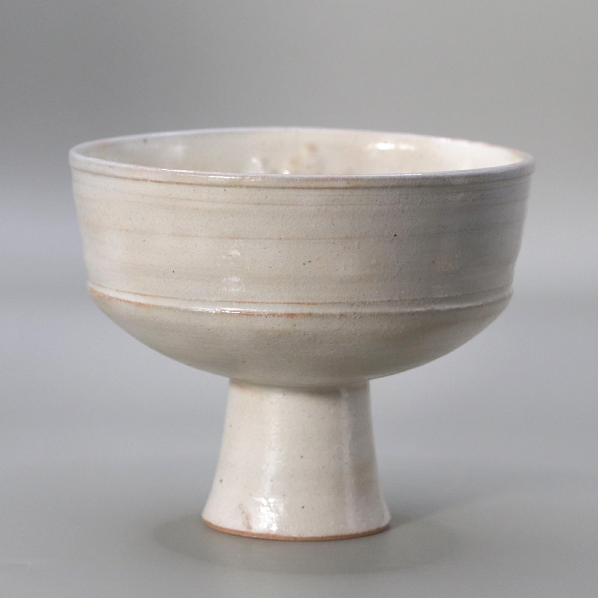 The name "bajohai" (a cup on horseback) originates from a vessel with a high base so that a military commander could easily hold the cup up while on horseback. This piece transfers this design to a tea bowl, with a bulging body and a trumpet-shaped base, creating a light, airy appearance that makes the entire cup appear to float in the air when placed on a table. The rim is slightly curved outwards, providing the functionality to catch the rich foam of matcha tea.