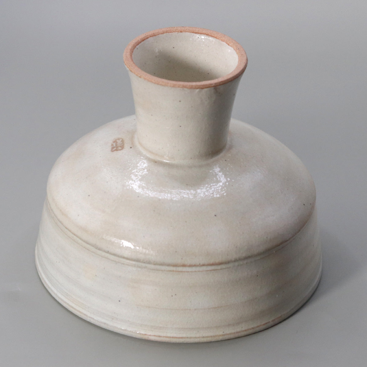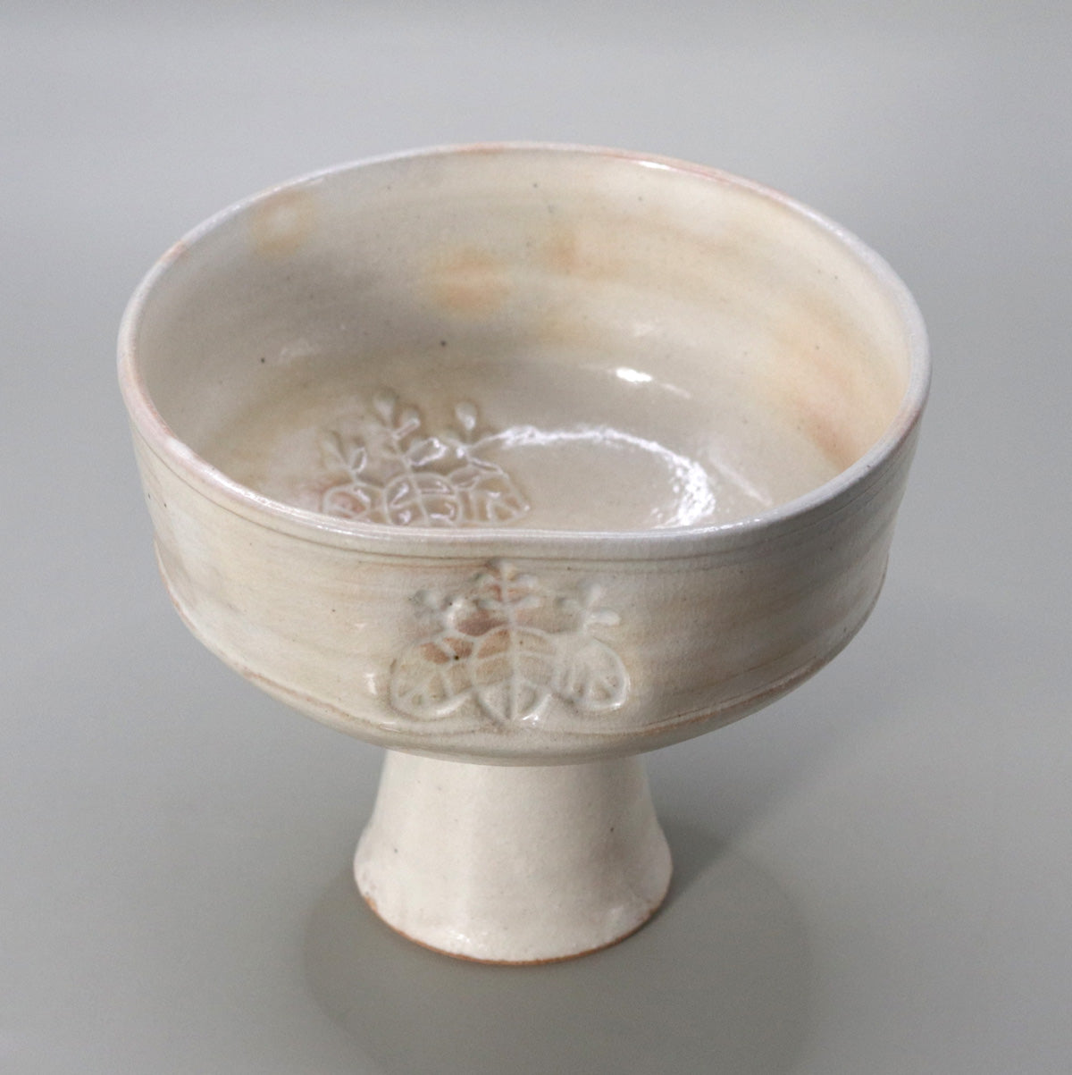 The slightly reddish milky white powdered glaze creates a soft look, and the slender horse-mounted sake cup shape with its high base gives this piece a dignified presence. This is a masterpiece that crystallizes Takahashi Michihachi's unique refinement and eye for antique style. Below, we will explain its appeal from five different perspectives.