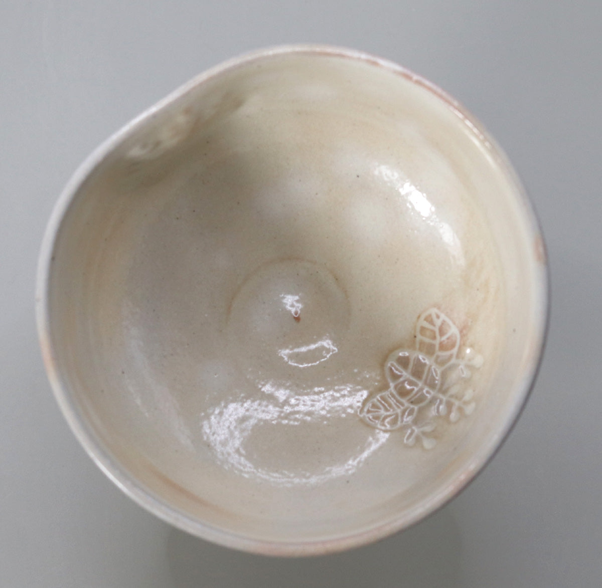 Kohiki, a technique in which a white coating of clay is applied to the clay body and then covered with a transparent glaze, is a technique that originated with the Buncheong ware of the Joseon Dynasty in Korea. In this piece, the iron of the base material is faintly visible from under the white coating, and pale cherry-colored "Gohonde" patterns are scattered throughout. The light brown fire color that appears during firing adds warmth to the scene, and with repeated use, tea stains will seep into the cracks, giving the piece an appearance of pale ivy leaves falling on snowy skin.