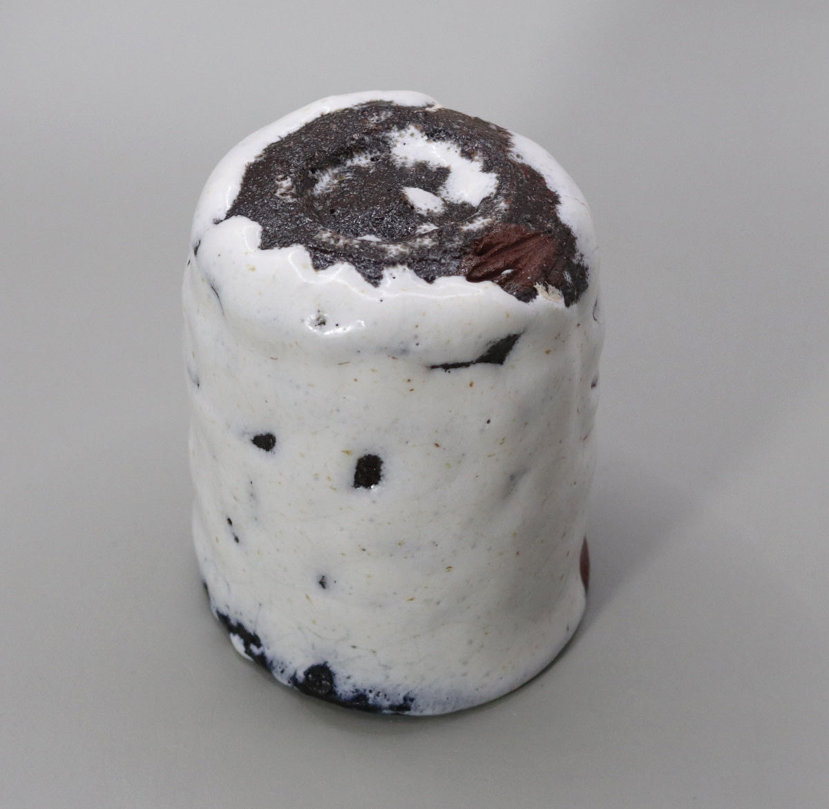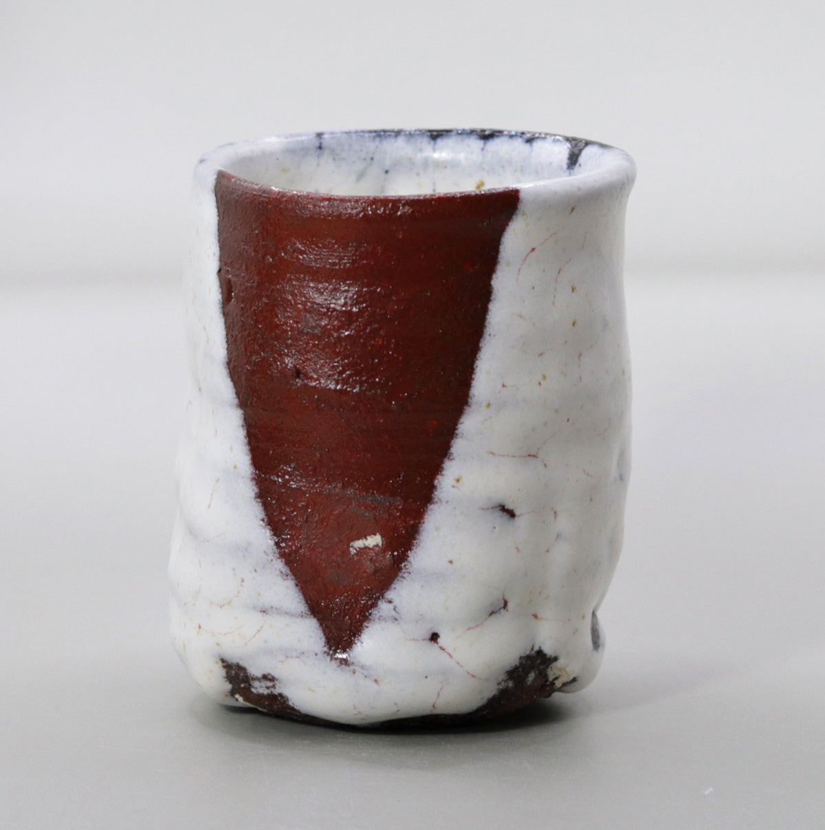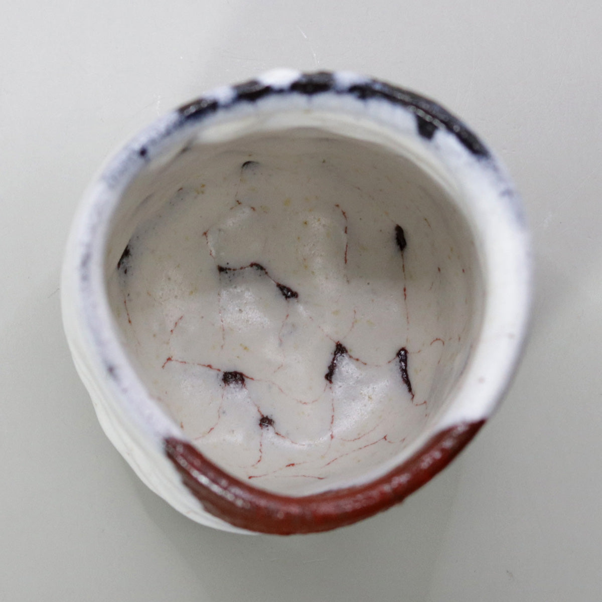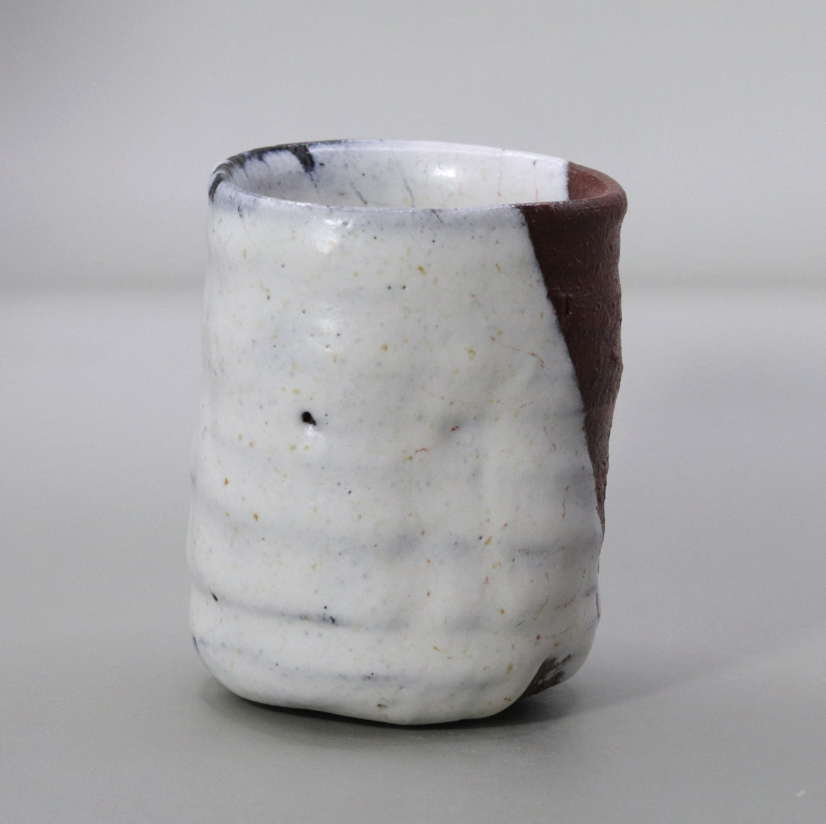 This piece, "Straw White Glazed Teacup," is a striking piece that brings out Nishibata Tadashi's aesthetic sense with its striking contrast between the shape and the glaze. Standing majestically at over 10cm tall, the sharply cut red clay lines create an impressive appearance, making it a teacup that is almost like a sculptural work.