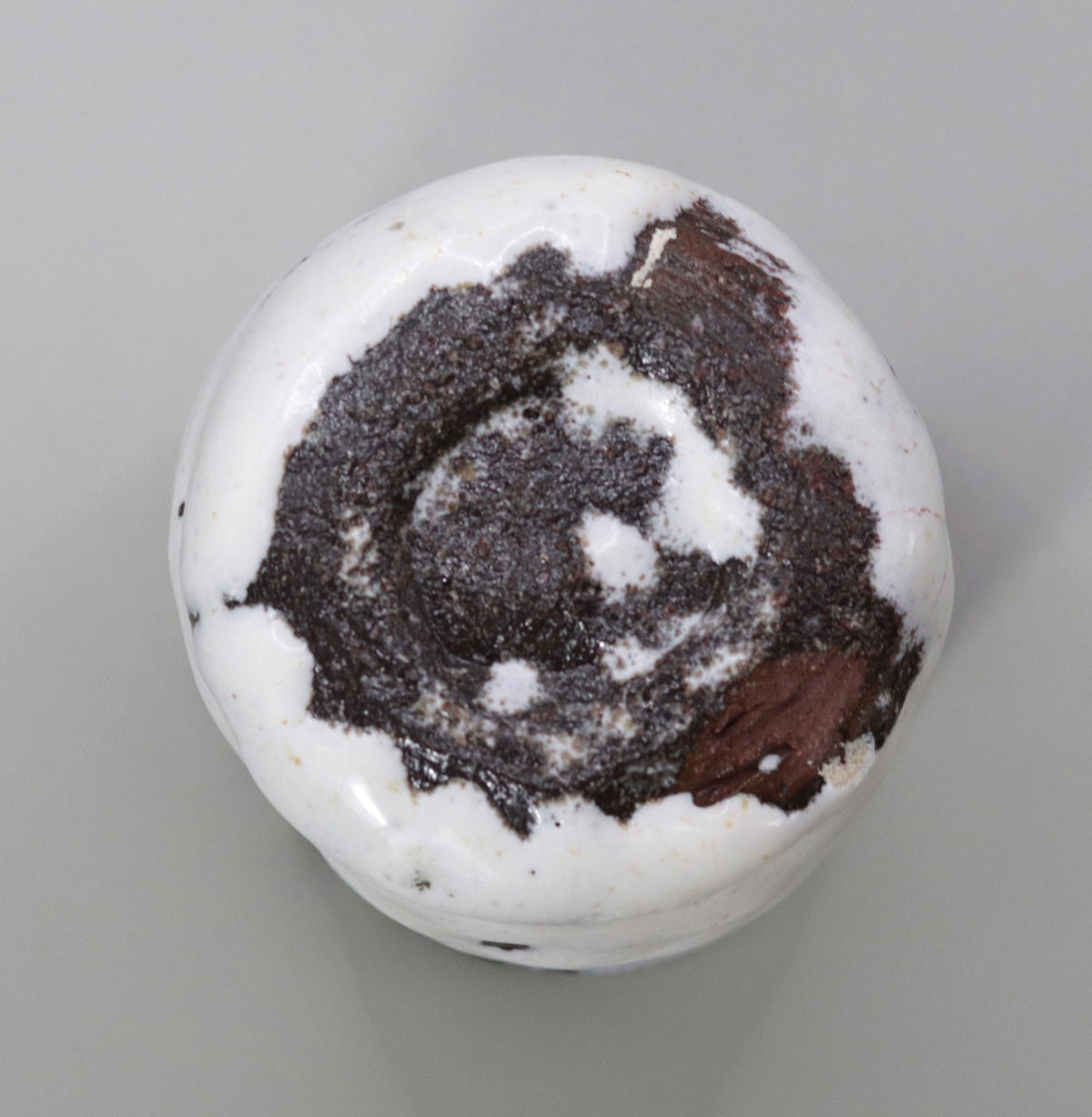 The straw white glaze on the surface of the vessel is rather thick, with tiny black iron powder scattered throughout the matte white. The red clay surface, which appears to pierce the white sharply, has a strength like a layer of earth cracked open, and the quiet white and bold red complement each other. This color composition is not just decorative, but also brings a sense of tension and rhythm to the vessel as a whole.