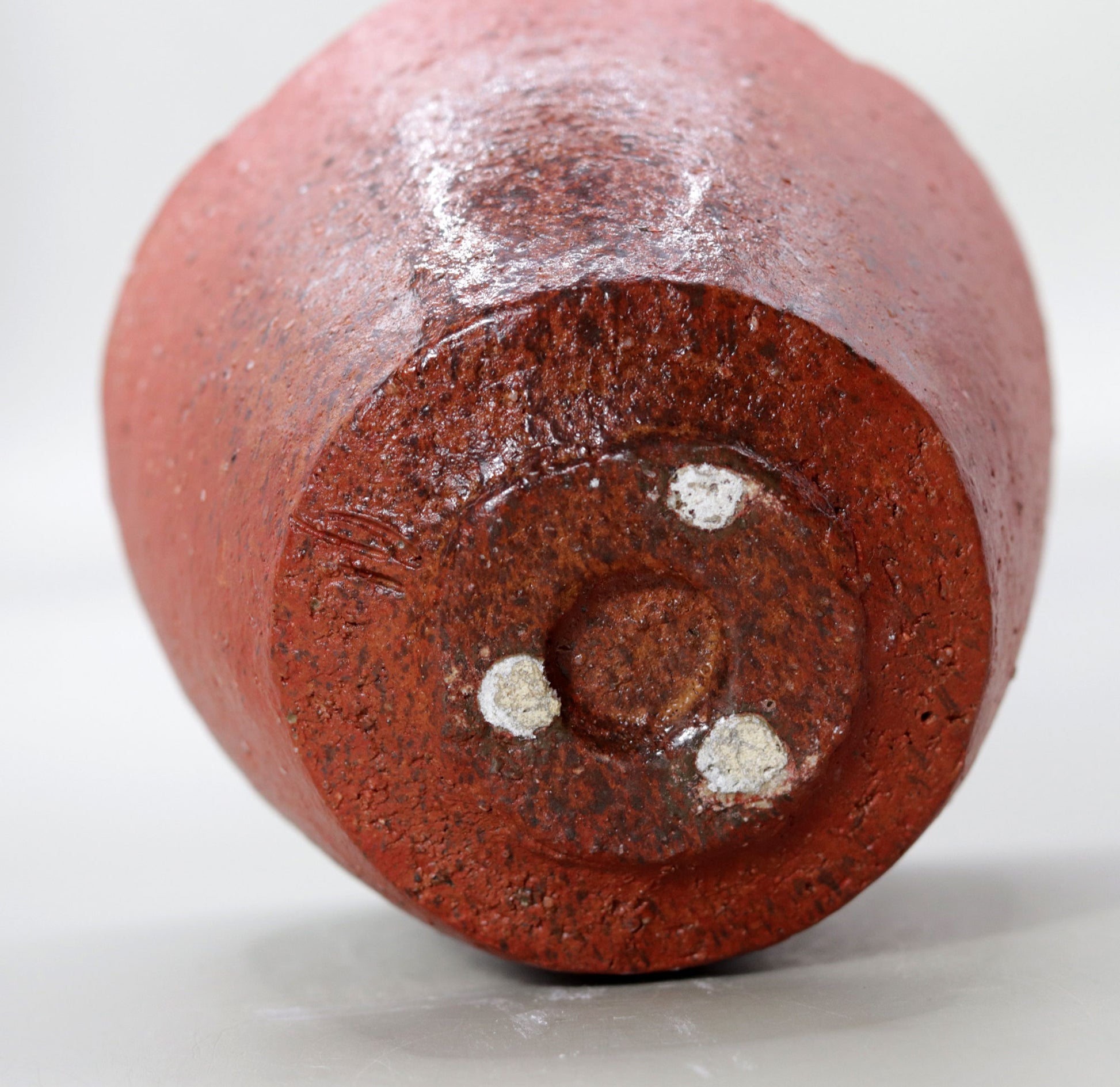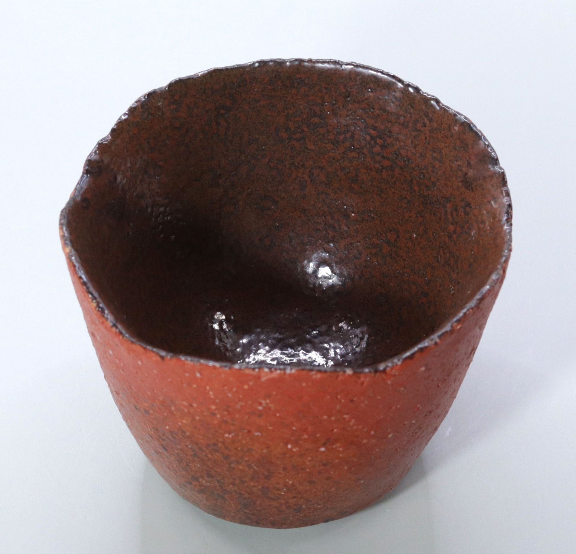 This tea bowl is based on traditional Tamba ware techniques, but also combines innovative beauty of form with that of modern art. The combination of the red glaze and the spherical shape is visually beautiful, and it is a piece that will appeal strongly to those with modern sensibilities. This unique beauty of form allows the tea bowl to be enjoyed as a piece of art, bringing a breath of fresh air to the world of tea ceremony.
