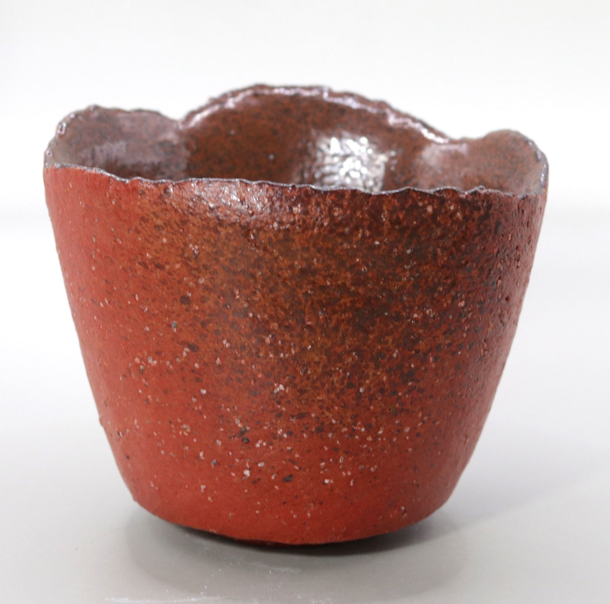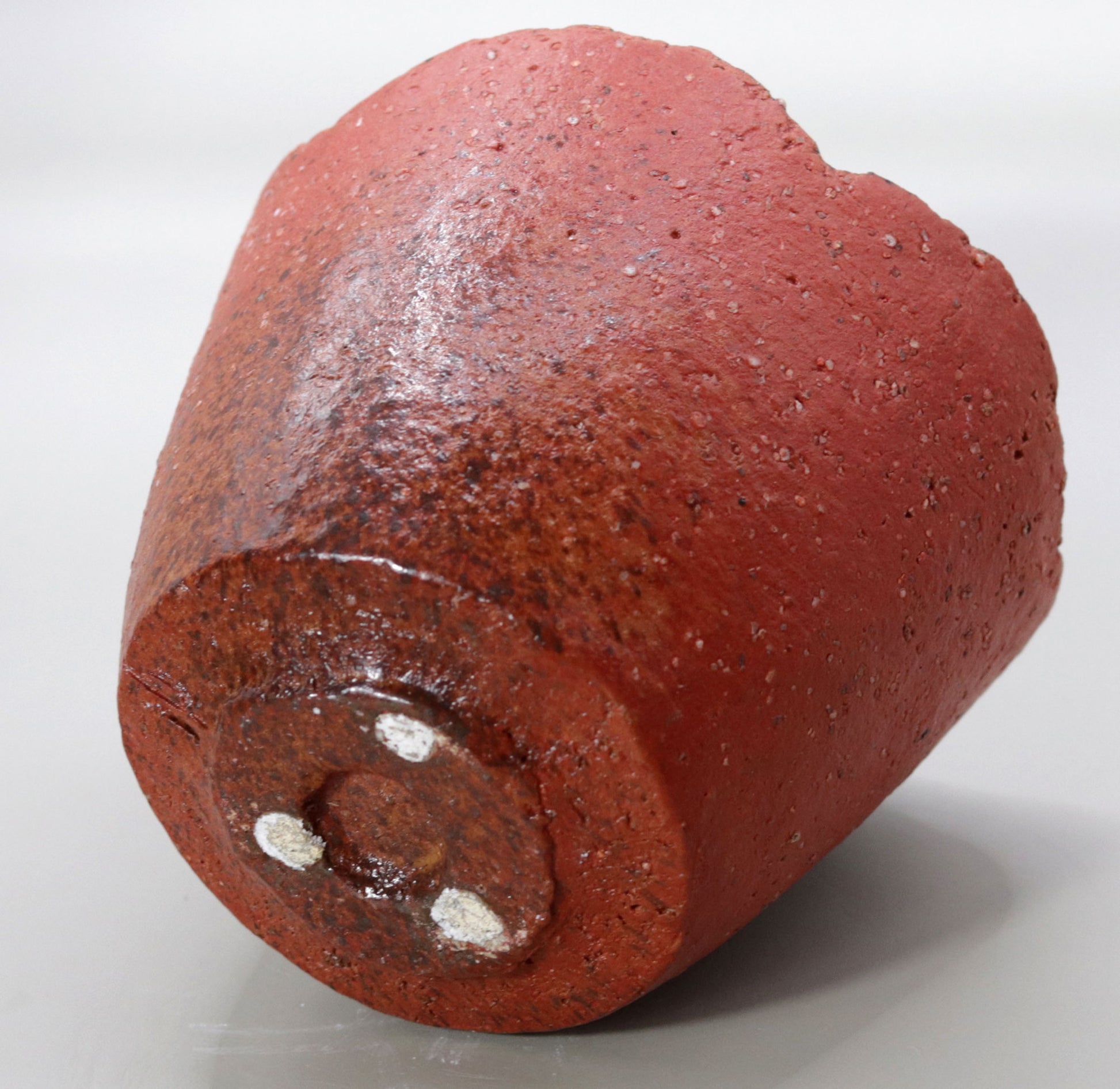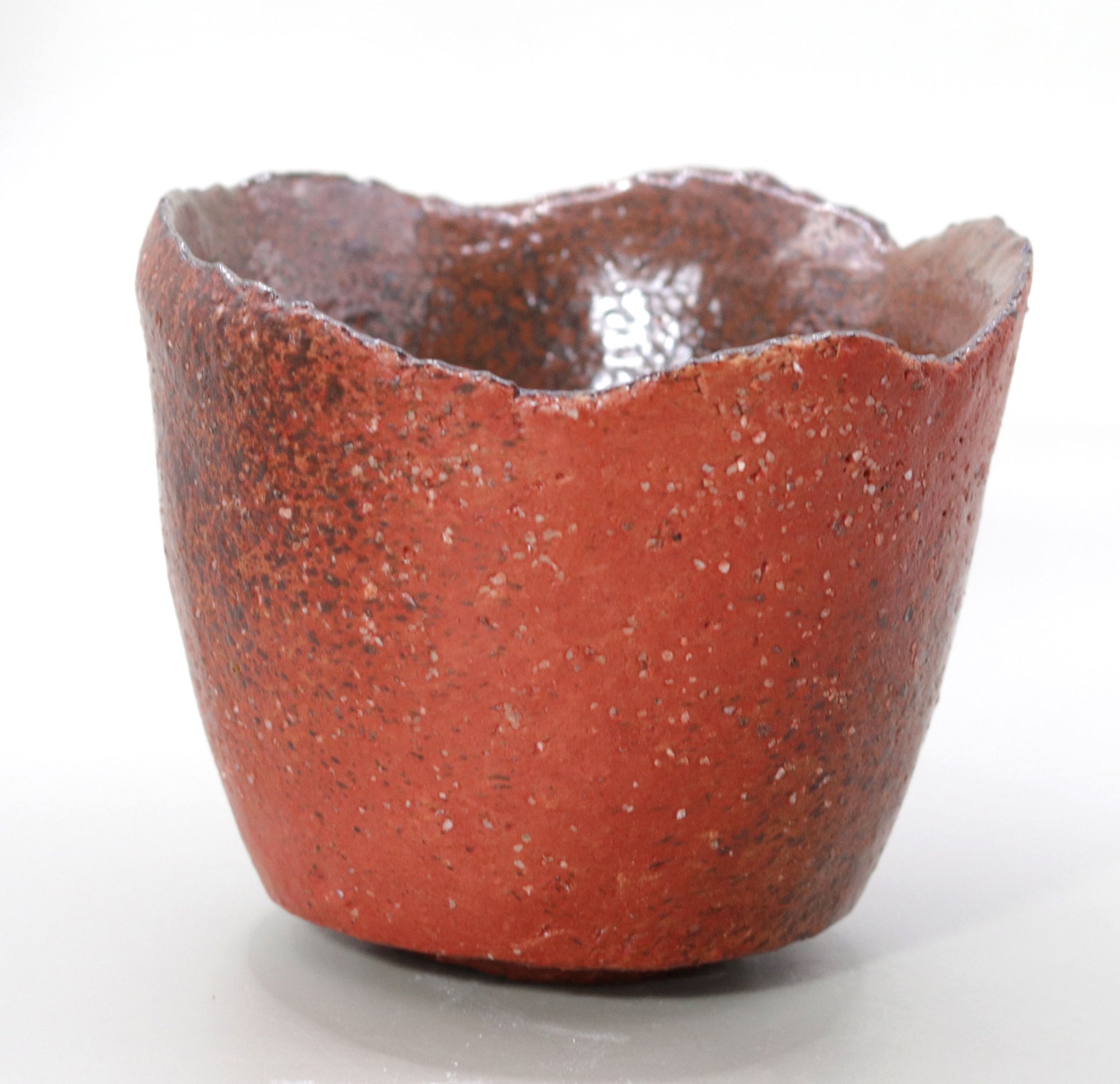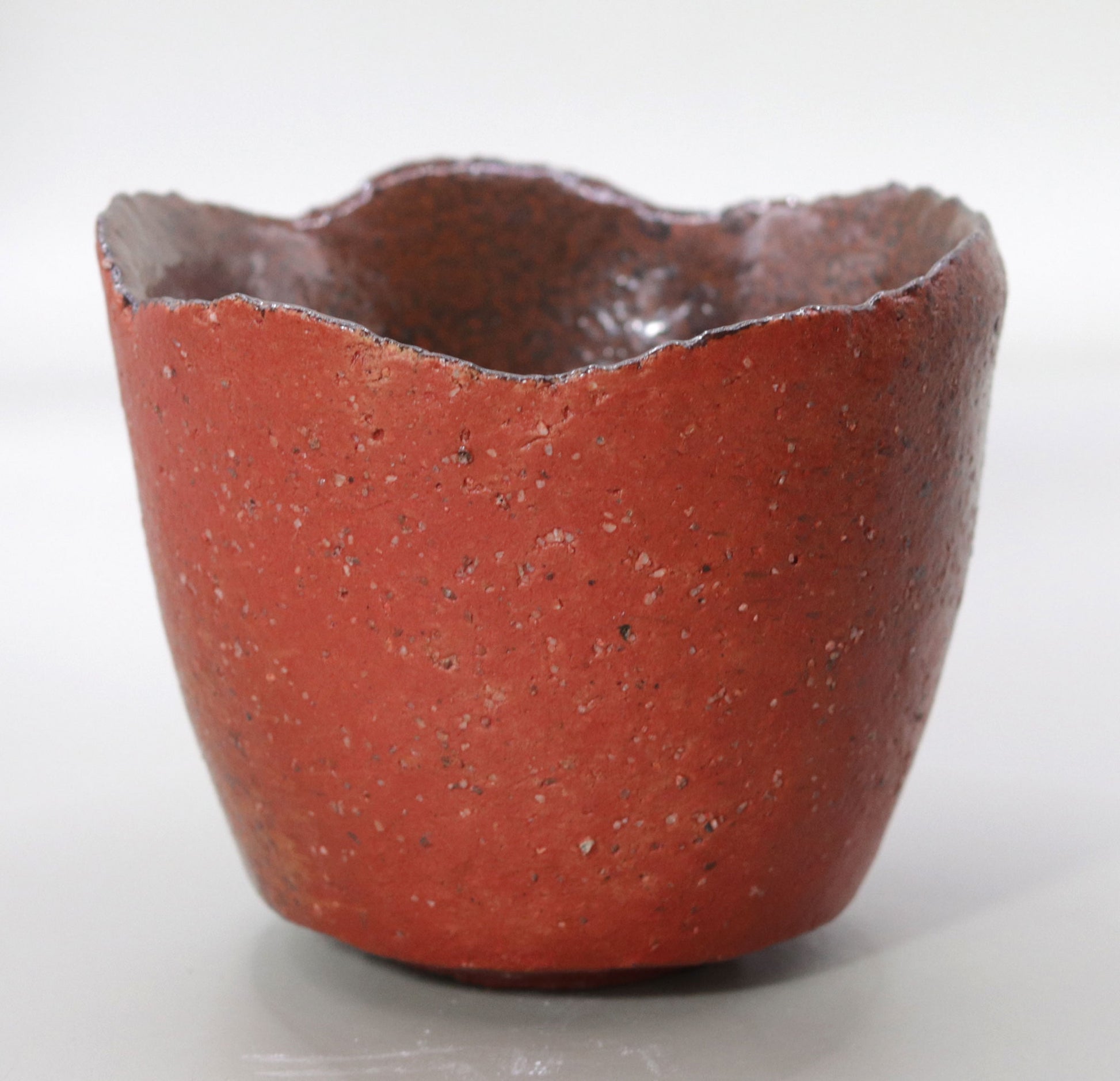 Powerful presence Red Concave Tea Bowl by Nishihata Tadashi