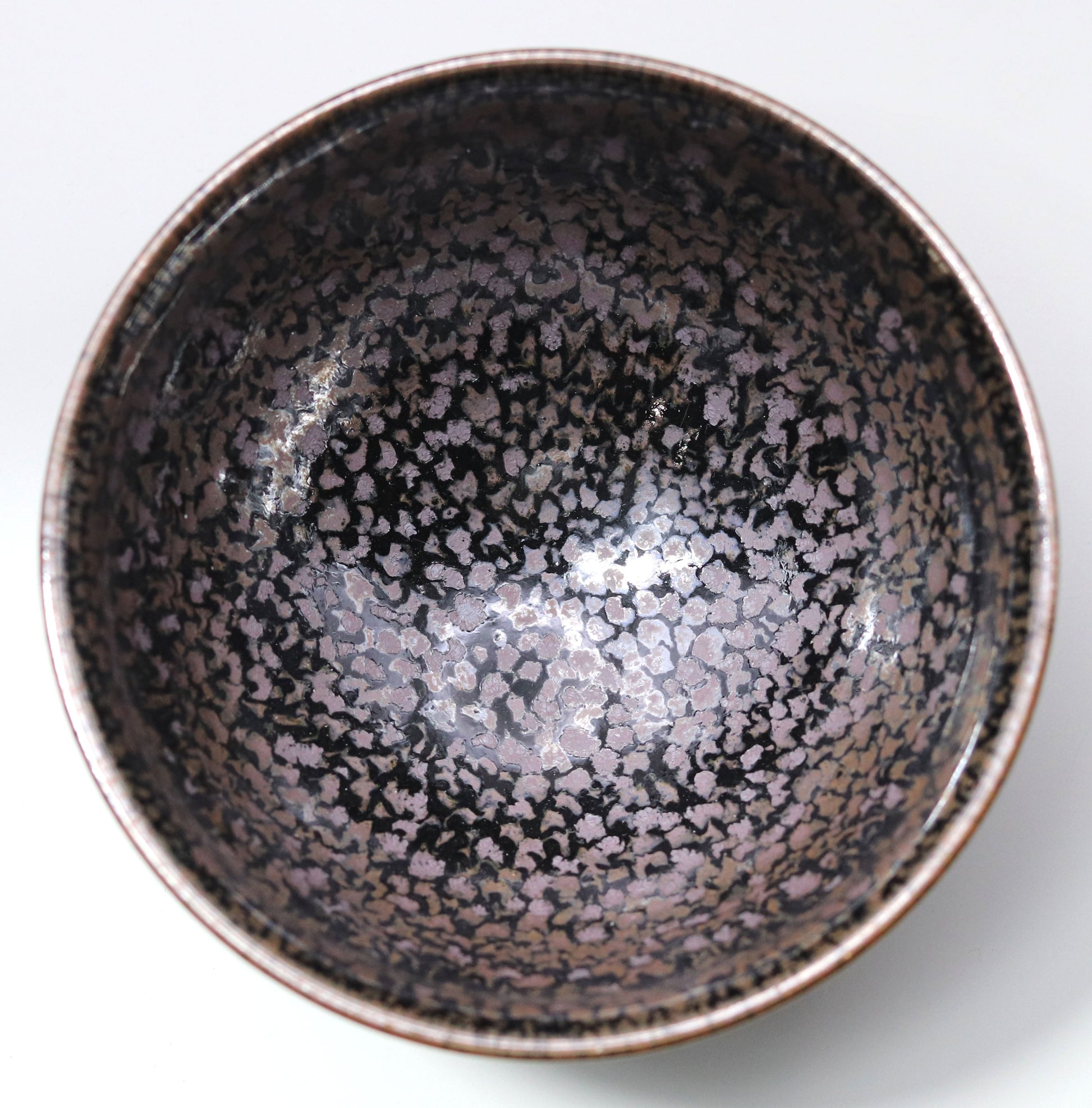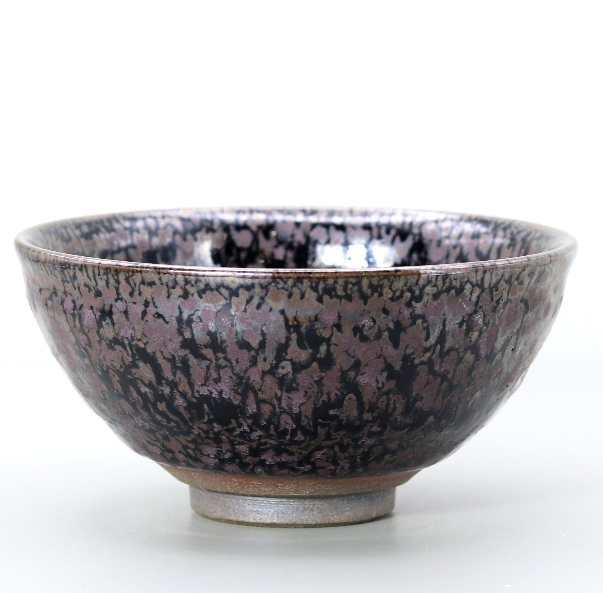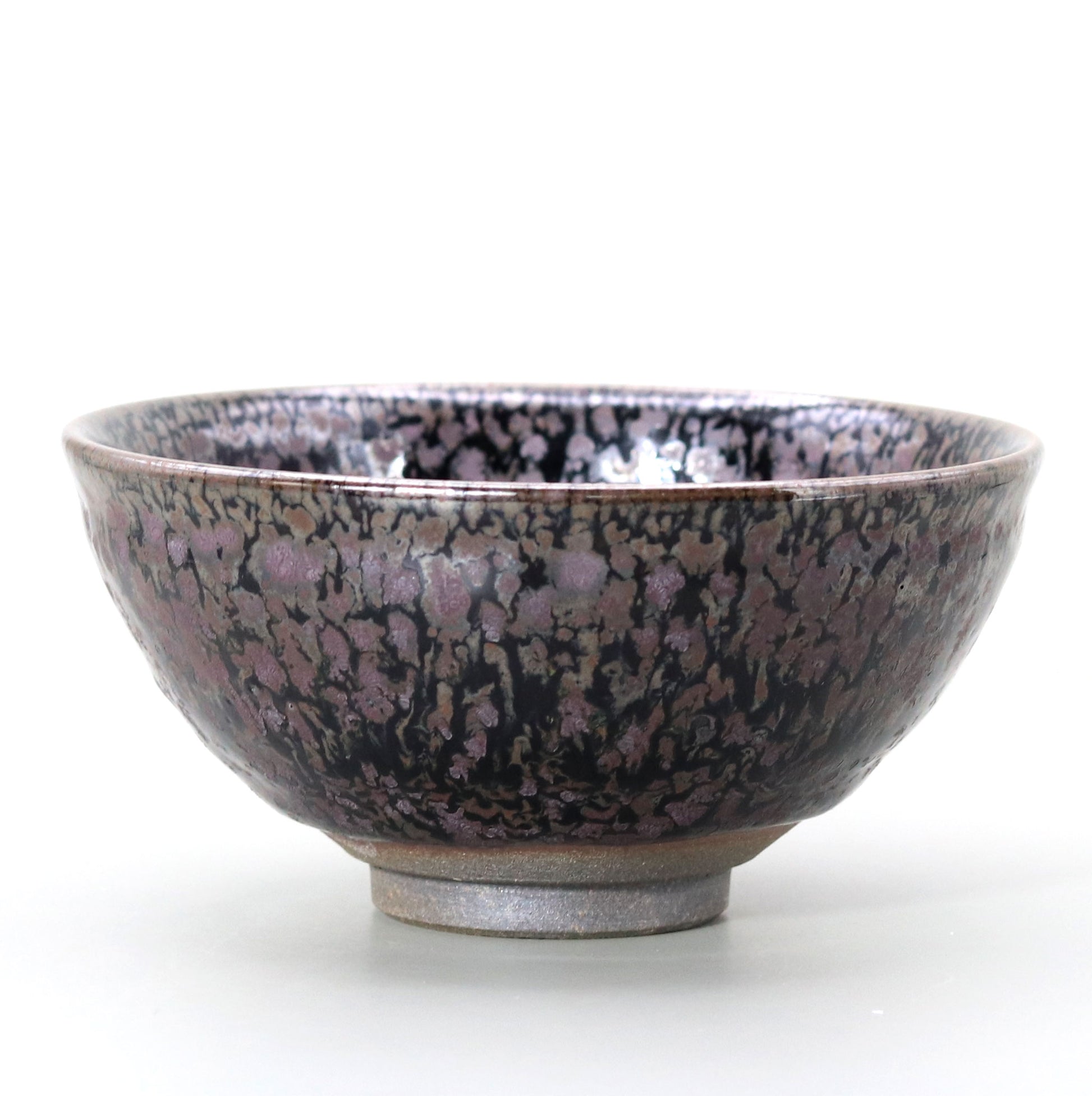 天目茶碗は、10世紀から13世紀にかけて中国宋代の建窯や吉州窯で生まれた鉄釉を使用した茶碗をルーツとしています。最初の記録は北宋時代に遡り、茶文化が隆盛を極める中で、白茶の美しさを引き立てる黒い茶碗として重宝されました。特に建窯で焼かれた「建盞(けんさん)」は、曜変天目や油滴天目といった美しい模様を特徴とし、中国のみならず、日本でも珍重されました。