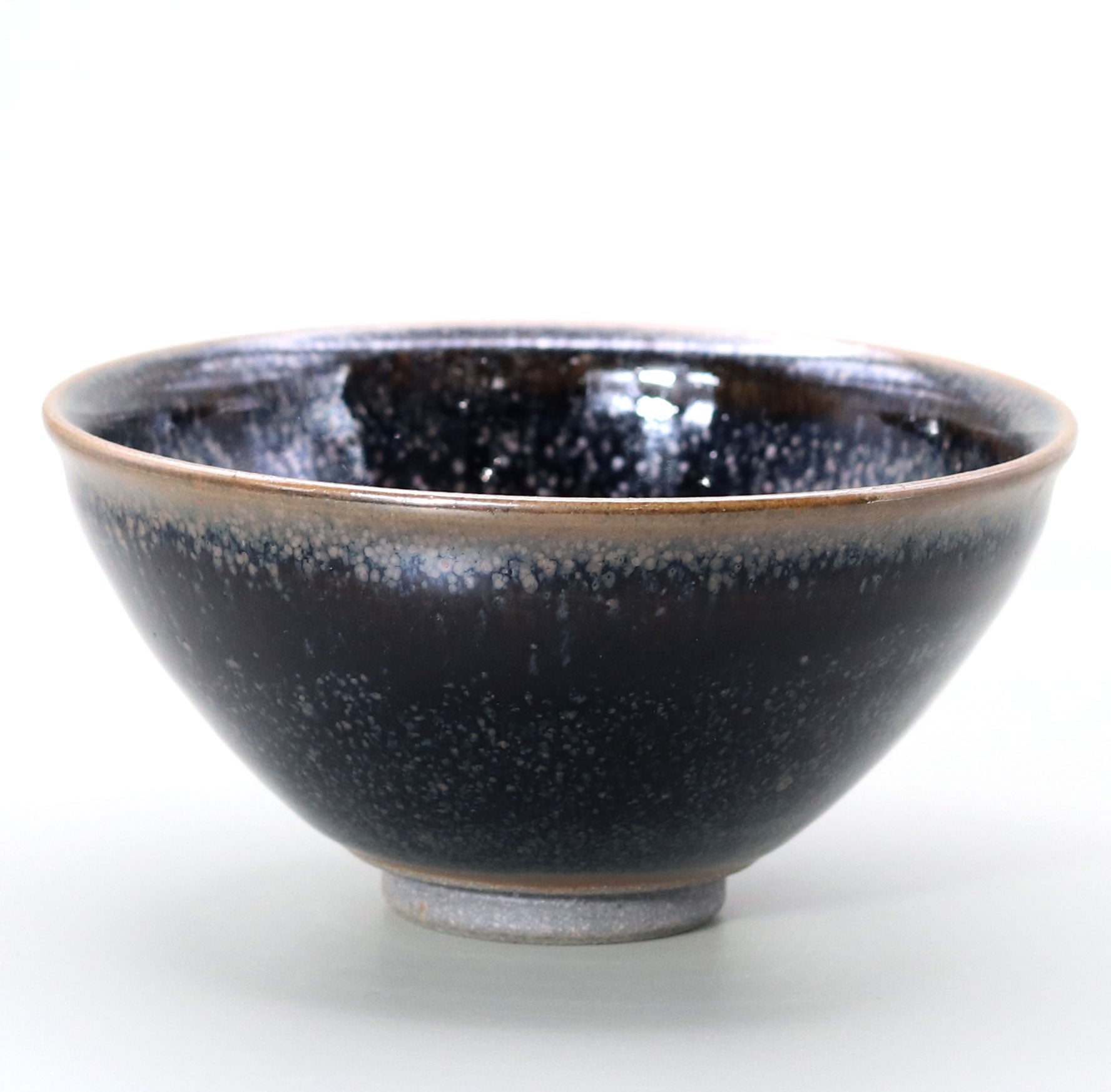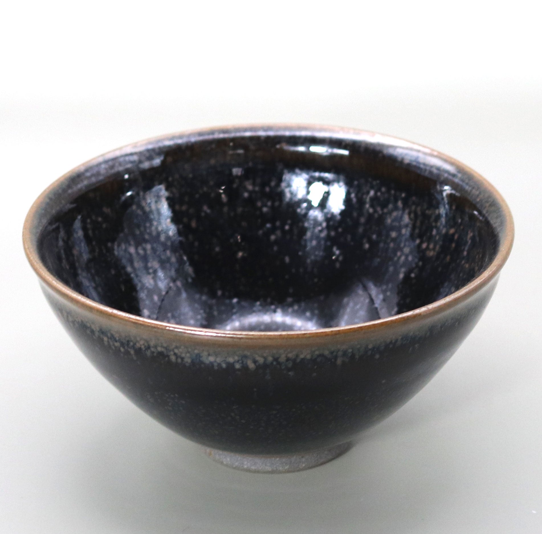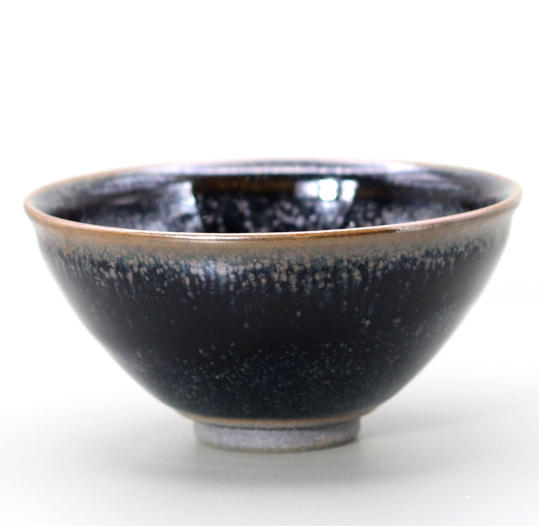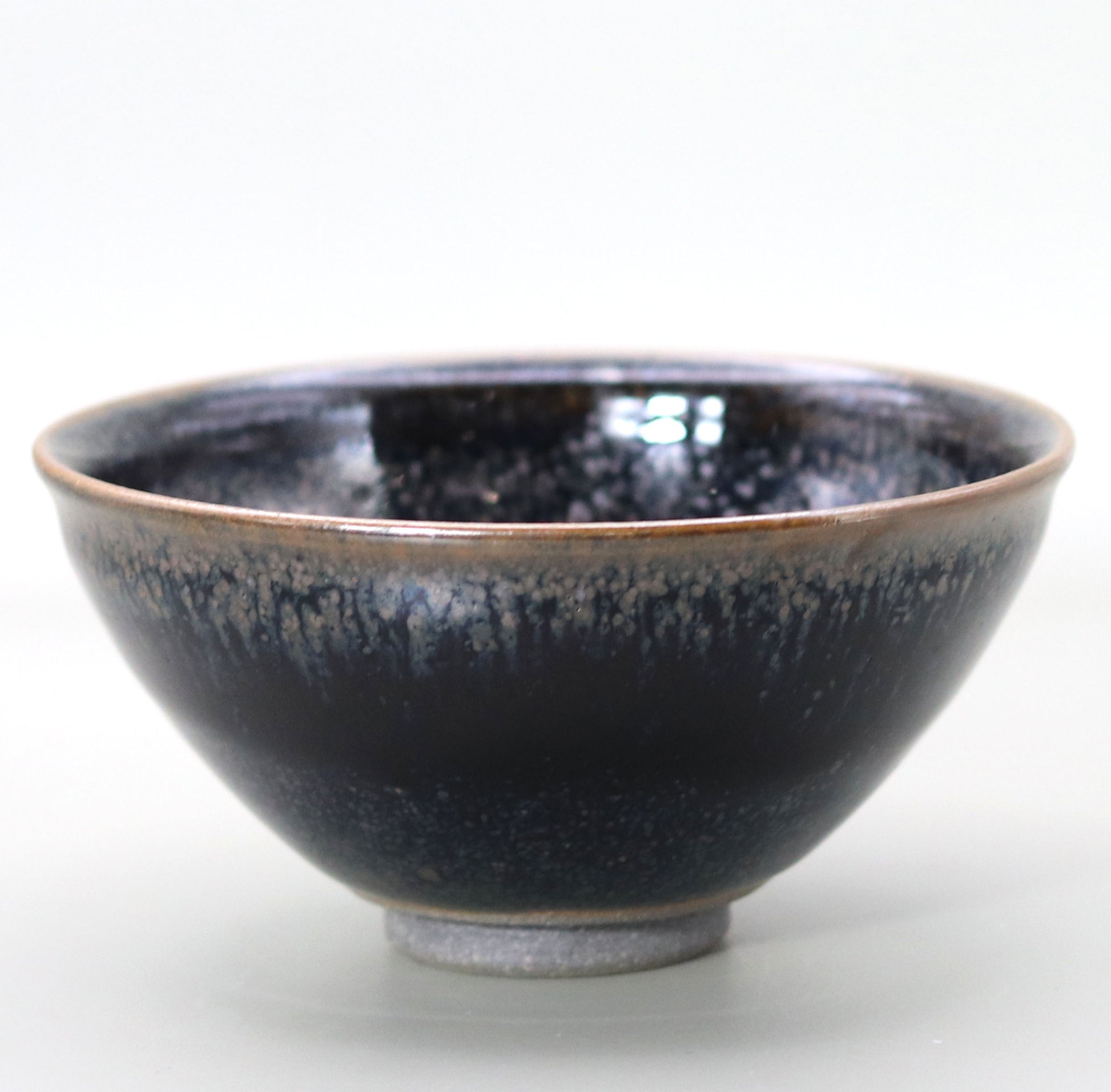 天目茶碗は、10世紀から13世紀にかけて中国宋代の建窯や吉州窯で生まれた鉄釉を使用した茶碗をルーツとしています。最初の記録は北宋時代に遡り、茶文化が隆盛を極める中で、白茶の美しさを引き立てる黒い茶碗として重宝されました。特に建窯で焼かれた「建盞(けんさん)」は、曜変天目や油滴天目といった美しい模様を特徴とし、中国のみならず、日本でも珍重されました。