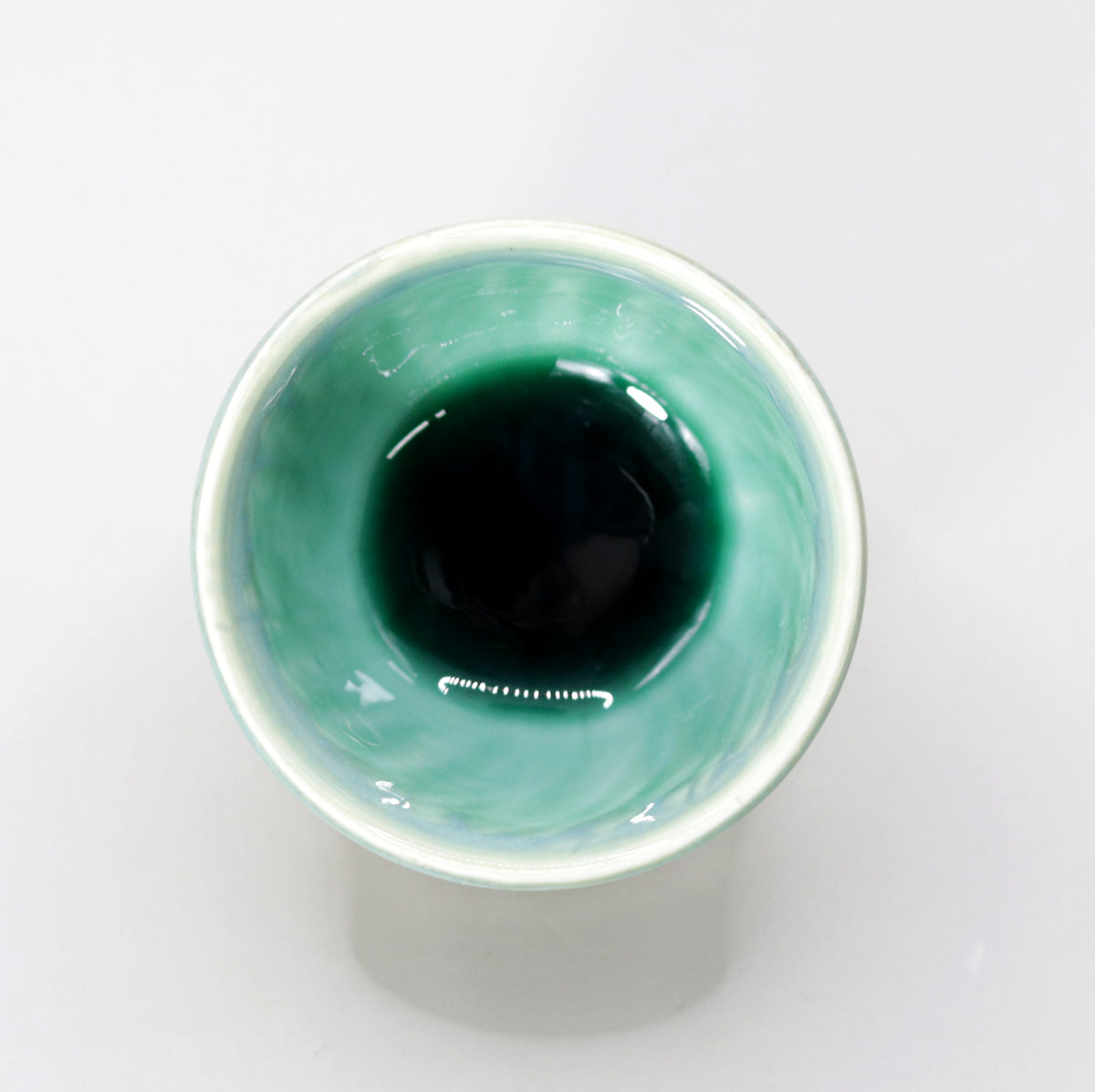 この「翠緑ぐい呑み」は、小川文齋様が長年培ってきた色彩表現と、土への深い敬意、そして人と器との関係性への誠実な眼差しが融合した作品です。どこまでも優しく、けれど深く、使うたびに新しい風景と出会える――そんな豊かな余白を秘めた器です。