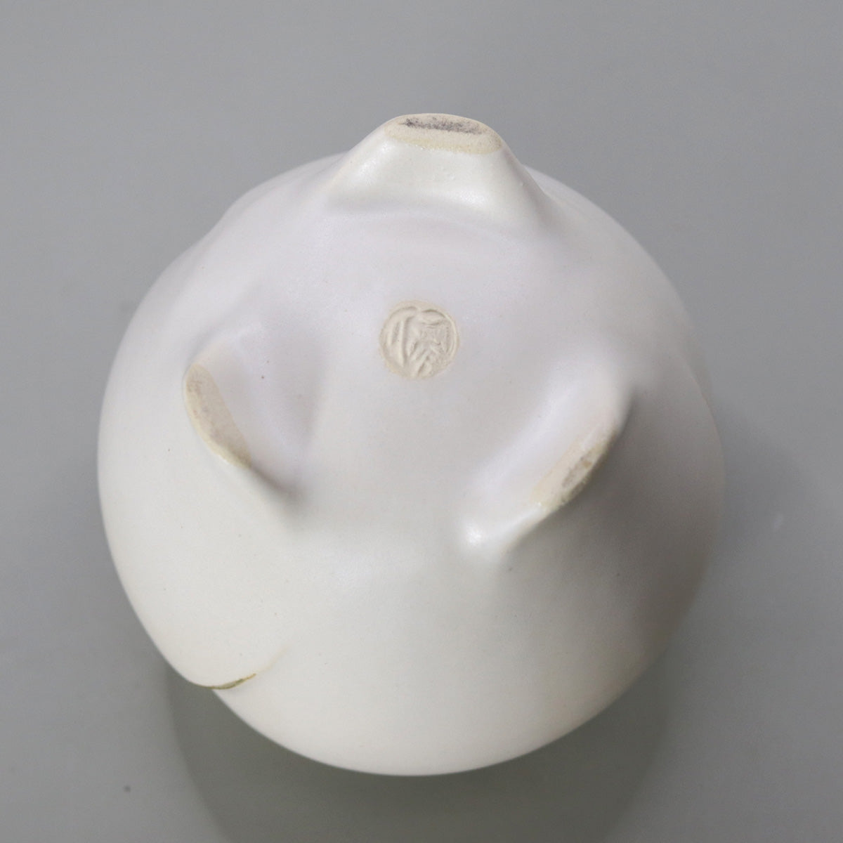 本作の胎土には、磁器土と半磁胎土を岡田優様が独自にブレンドしており、高温焼成で肉薄ながらも十分な強度を確保し、細く伸びる脚部を実現しています。成形段階では、轆轤挽きで基本形を整えた後、四面体を思わせる削りを加えて三脚構造に仕上げ、重心を低く保ちつつも視覚的な浮遊感を演出しています。