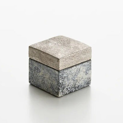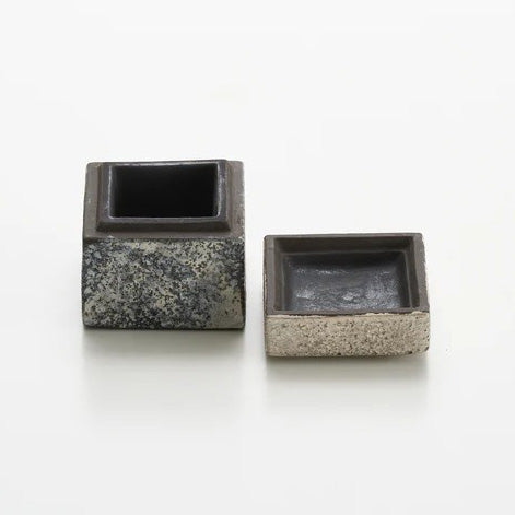 本作の魅力は、幾何学の端正さと、手で作る陶のわずかな“揺れ”が共存していることです。完全な工業製品の立方体ではなく、角にわずかな丸みがあり、面に微細な起伏が残ることで、視覚だけでなく触覚が想像されます。掌に収めたとき、硬質な直線の緊張のなかに、土が焼き締まった温度が確かに伝わる――その「触れて完成する感覚」が、陶筥という器種の美点です。