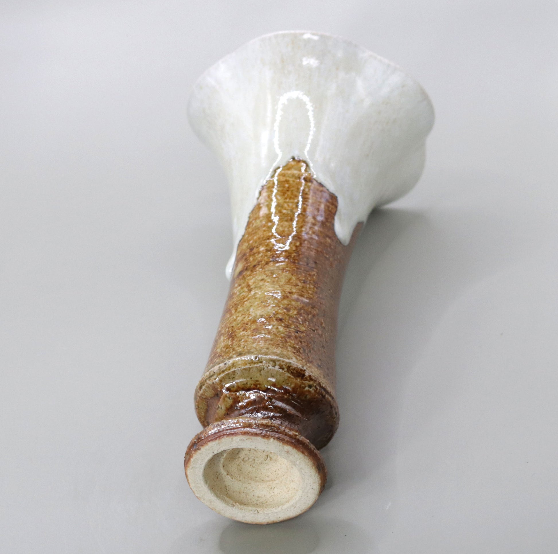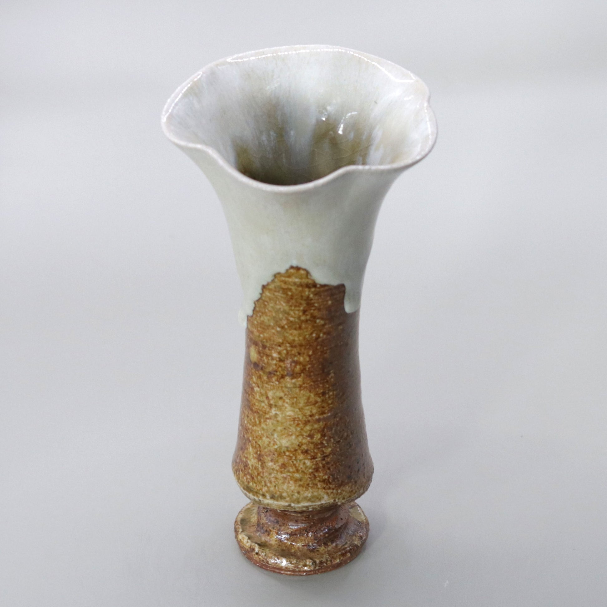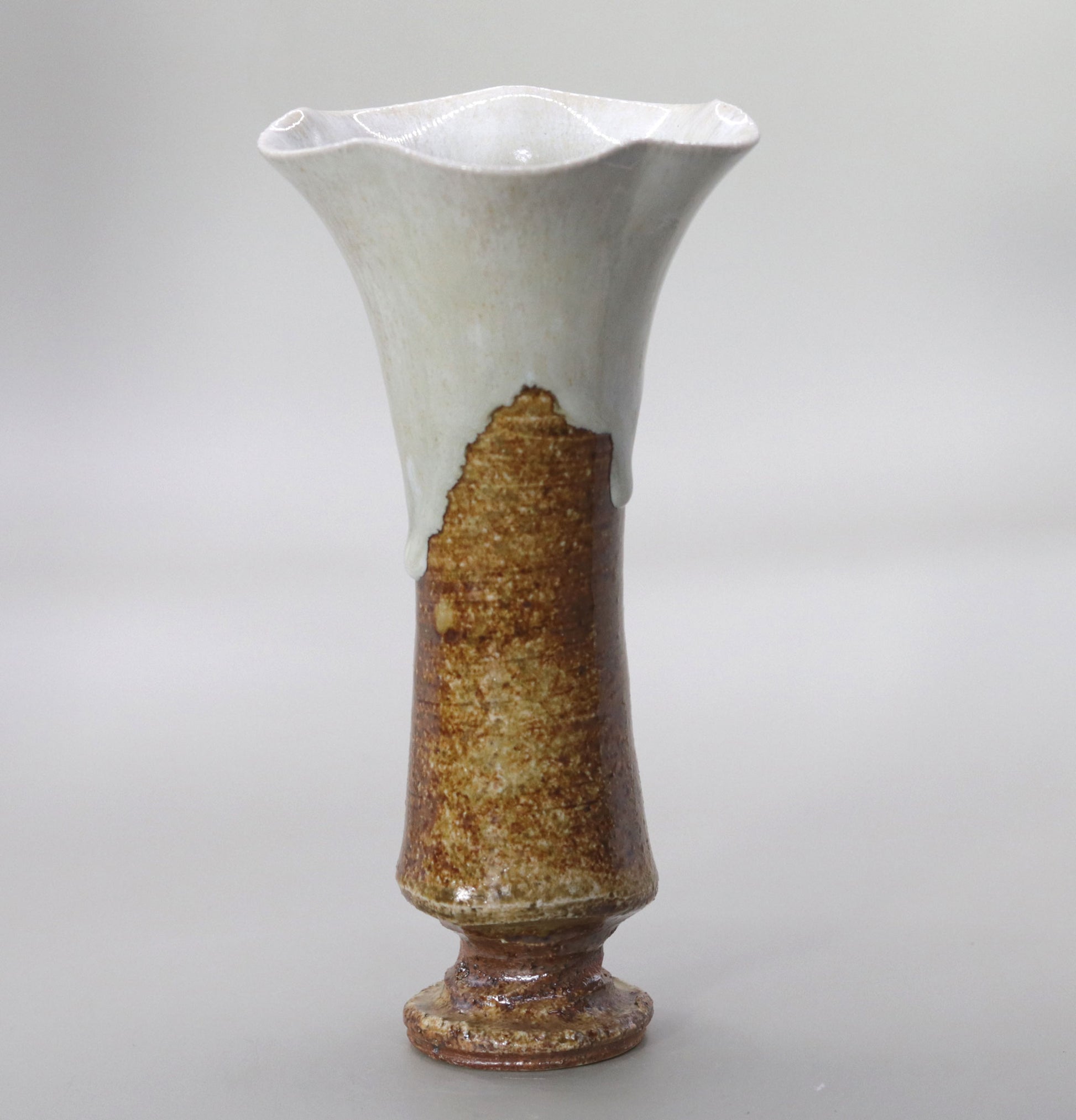 尾西楽斎様が手掛けた「輪花花入」は、古典的な技法と現代的な感性が見事に調和した逸品です。この花入は、面取り技法を駆使して多面体を表現しており、見る角度によって異なる表情を楽しめるのが特徴です。置き方を変えるだけで、色の出具合が変化し、まるで異なる作品のように感じられる点が魅力的です。